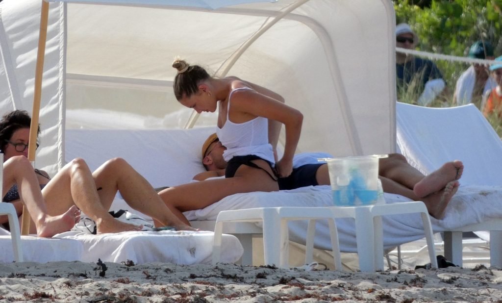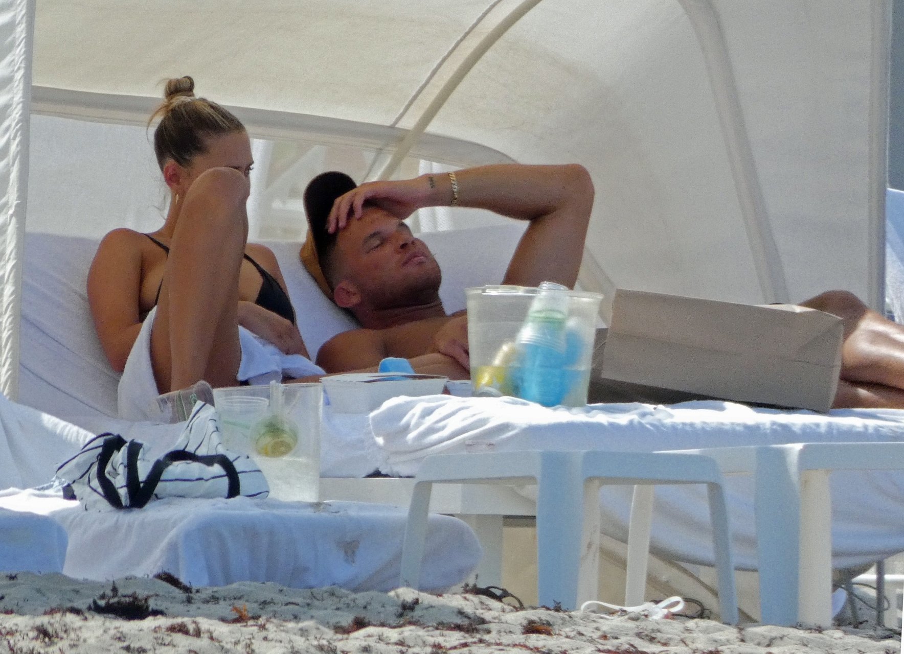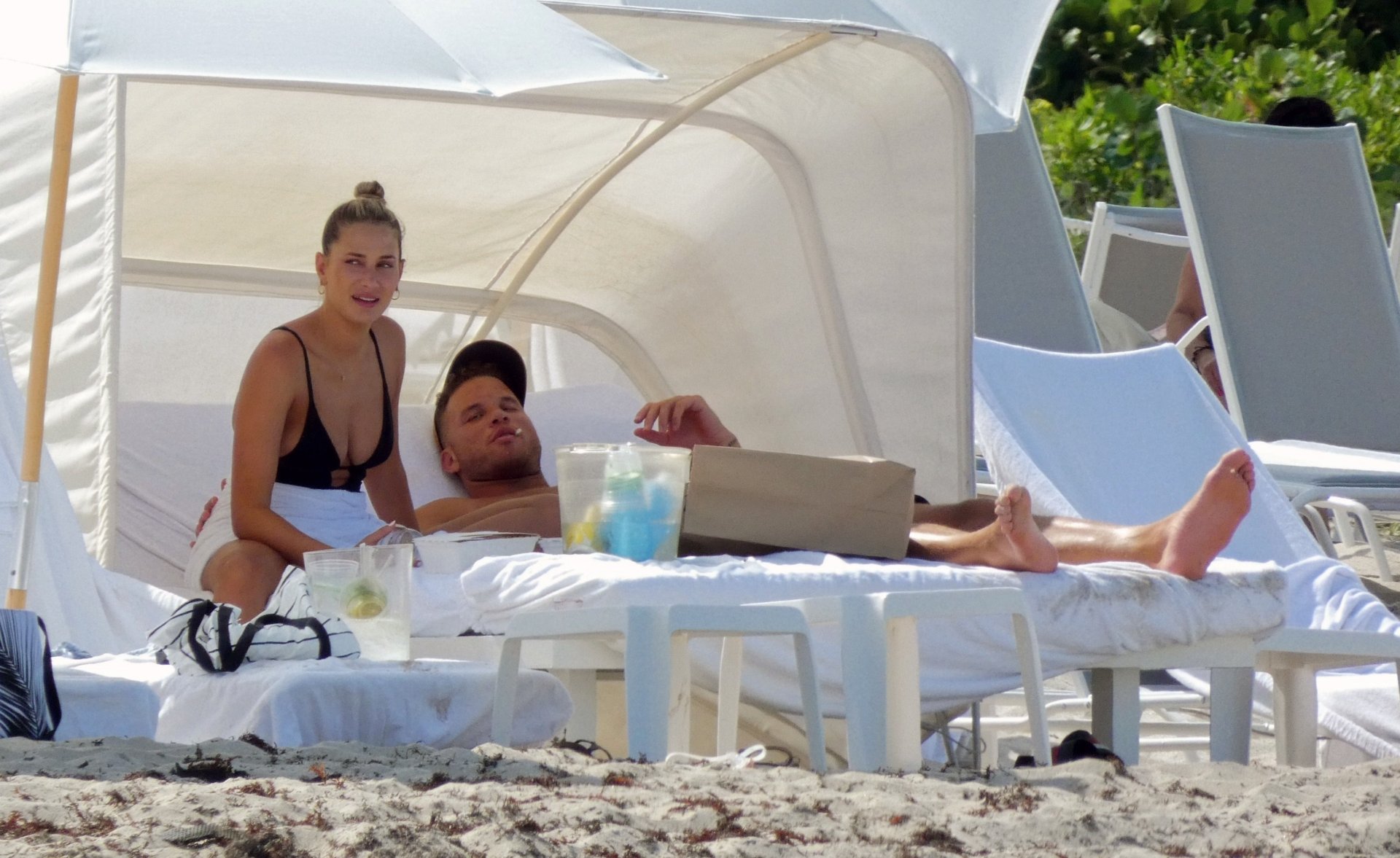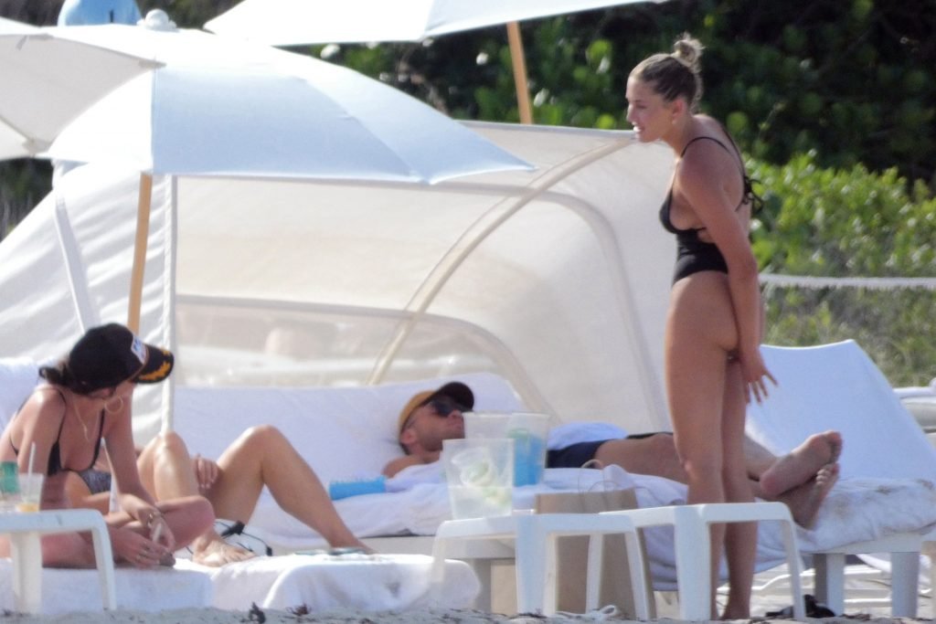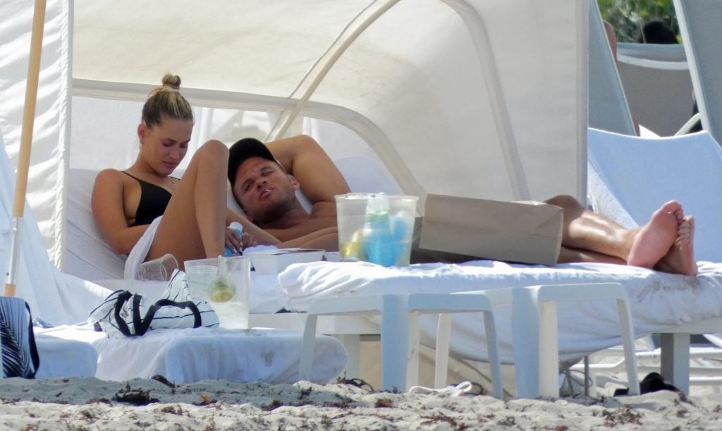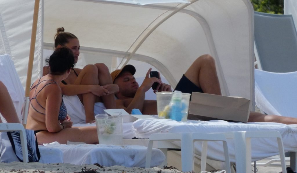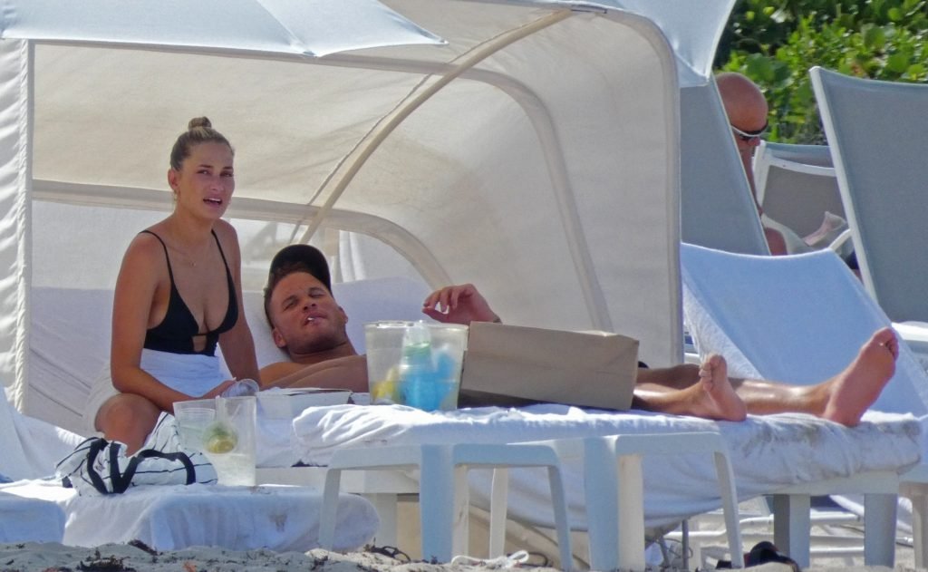L’ex de Kendall Jenner, Blake Griffin, a été photographié alors qu’il profitait d’une belle journée à la plage à Miami Beach avec sa nouvelle petite amie de 23 ans, Francesca Aiello, le 15/07/2018. Elle a eu un petit accident de vêtement en dévoilant son sein et son mamelon en se changeant sur la plage tandis qu’elle et Blake profitaient d’un après-midi allongés ensemble dans une cabane VIP de luxe et sur des transats avec des amis.