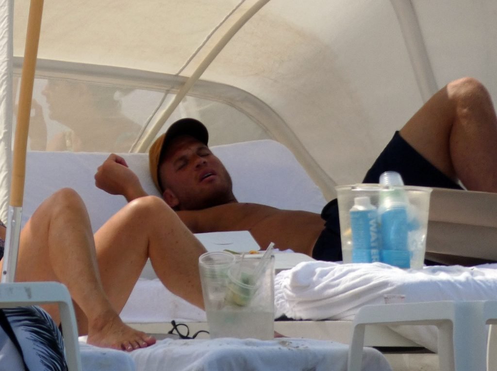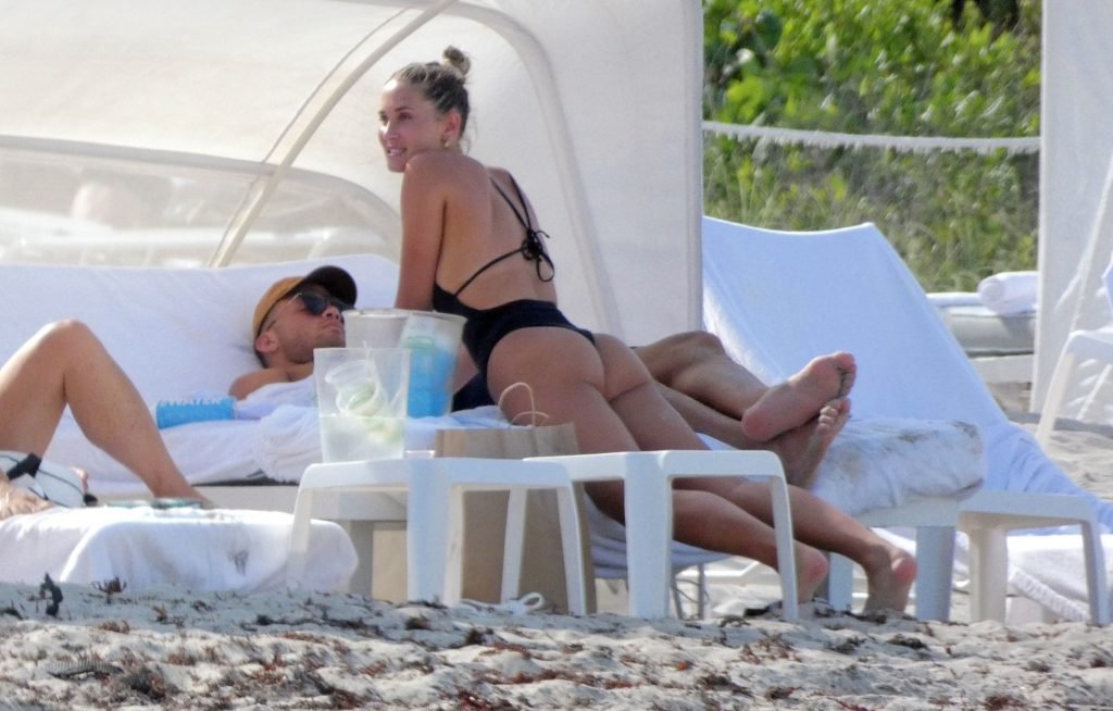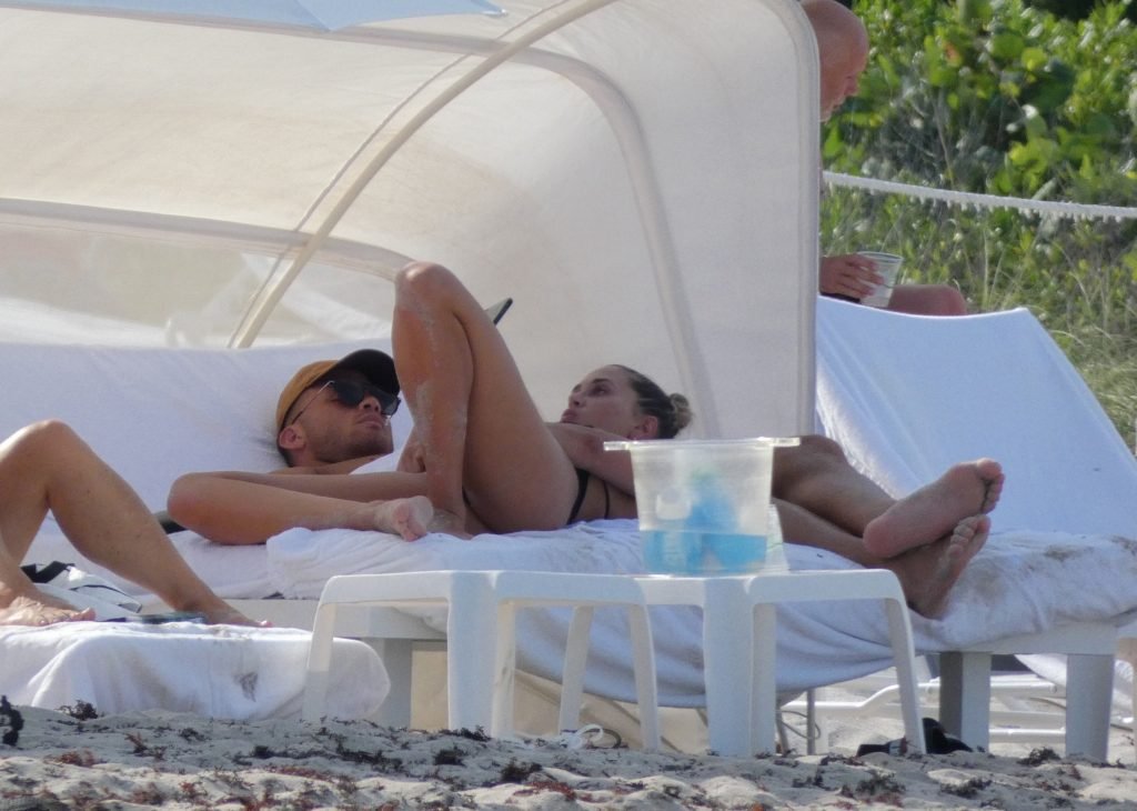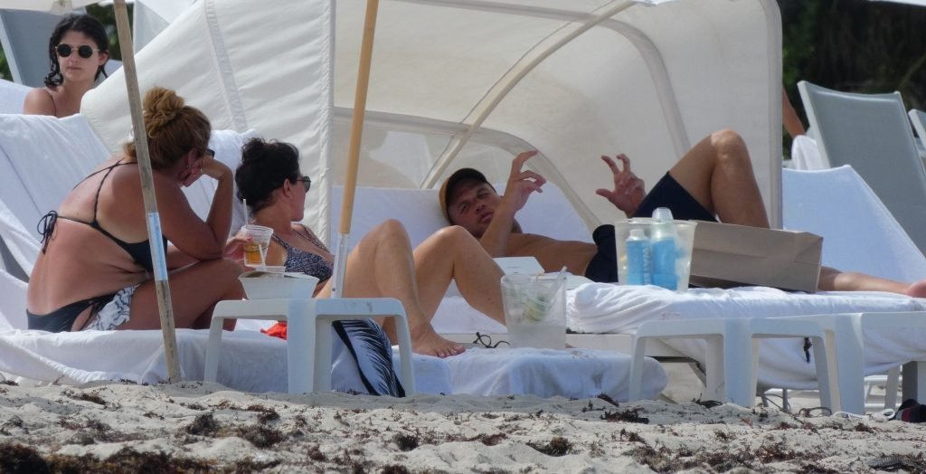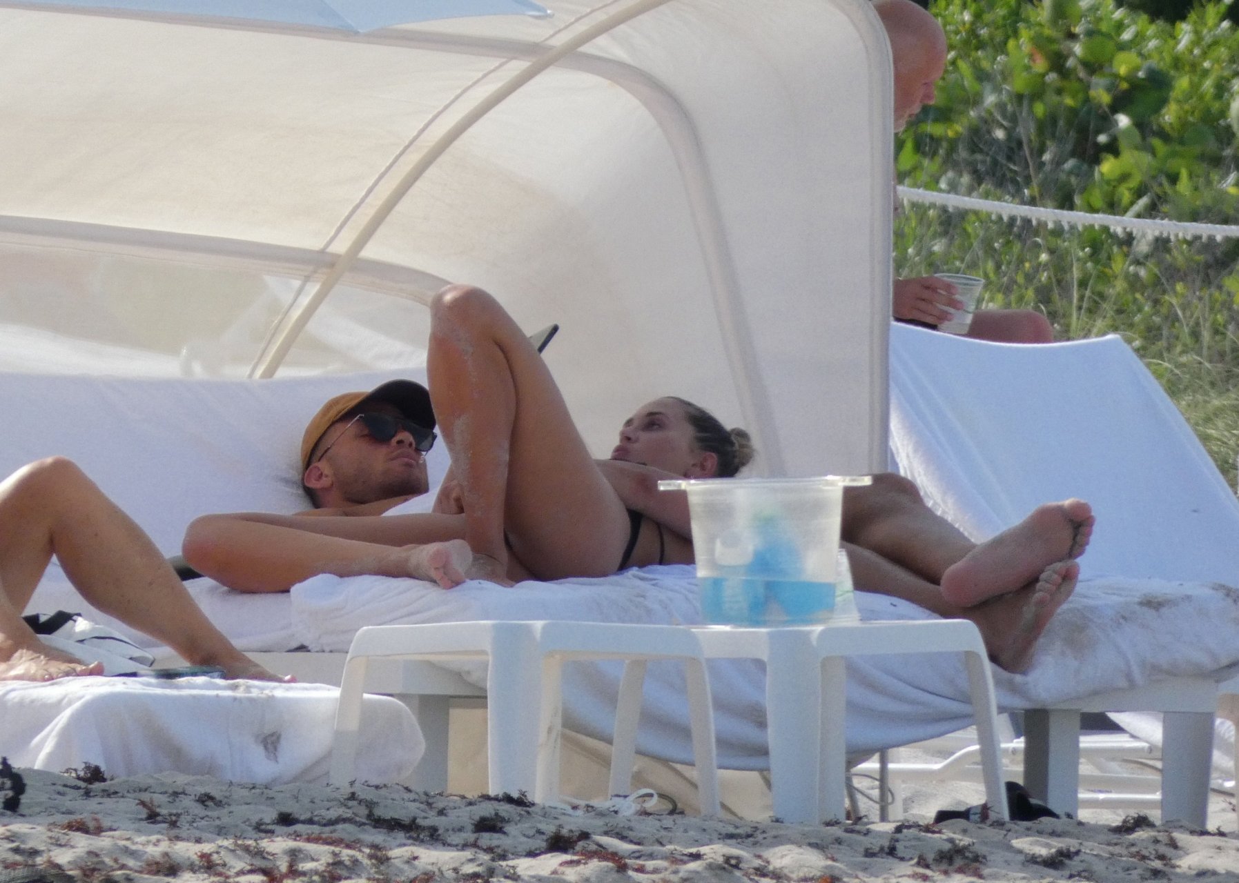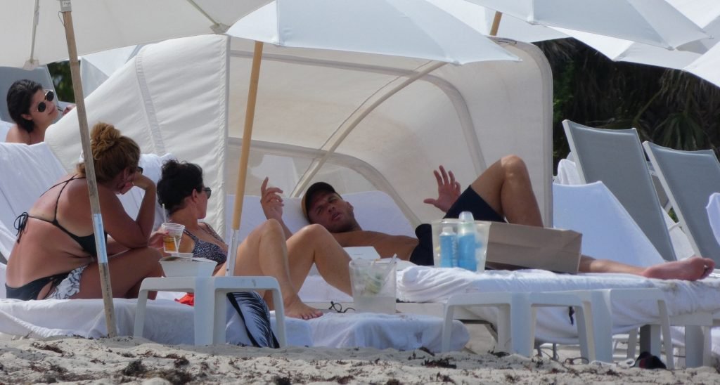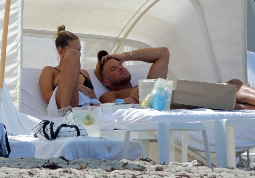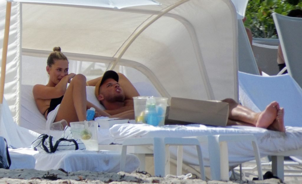 L’ex de Kendall Jenner, Blake Griffin, a été photographié alors qu’il profitait d’une belle journée à la plage à Miami Beach avec sa nouvelle petite amie de 23 ans, Francesca Aiello, le 15/07/2018. Elle a eu un petit accident de vêtement en dévoilant son sein et son mamelon en se changeant sur la plage tandis qu’elle et Blake profitaient d’un après-midi allongés ensemble dans une cabane VIP de luxe et sur des transats avec des amis.