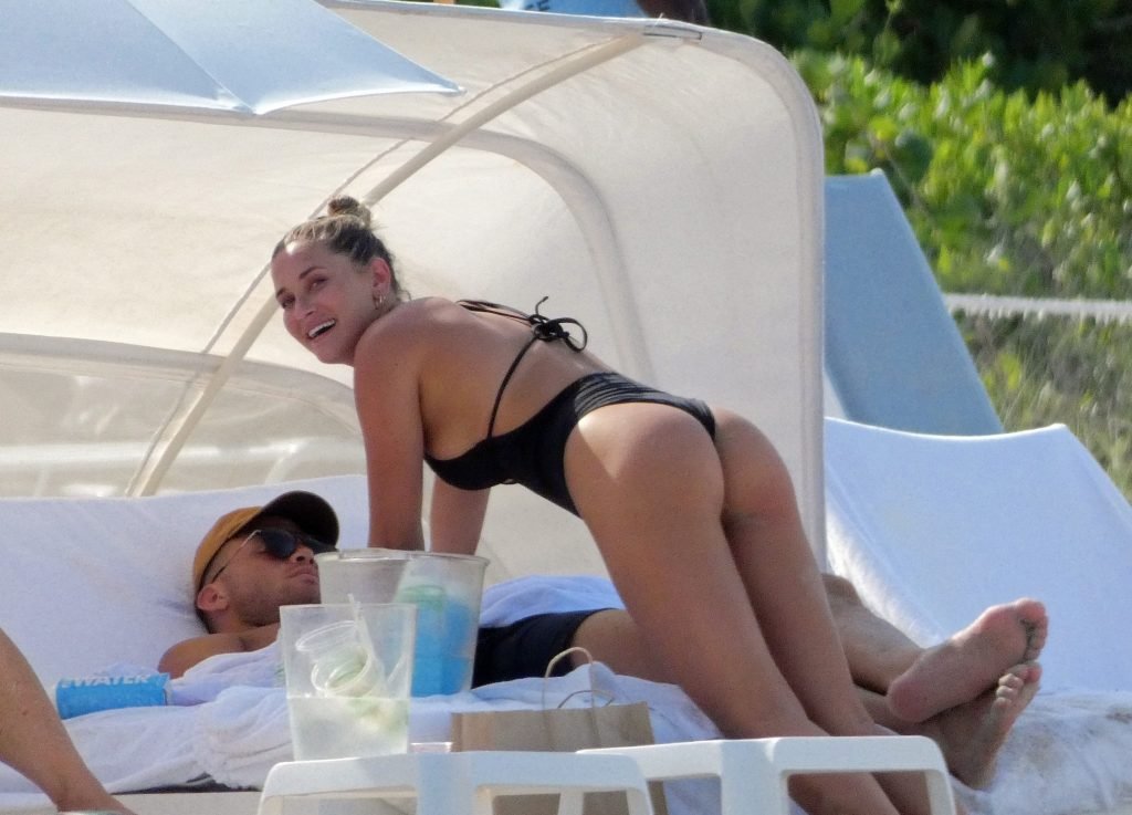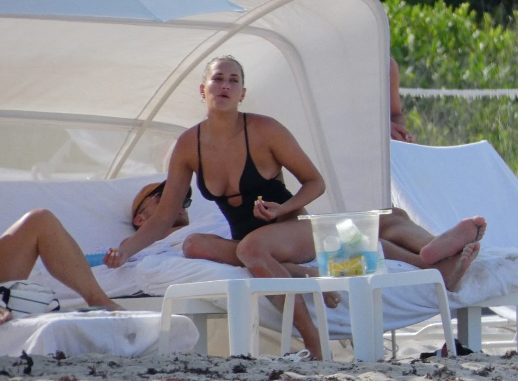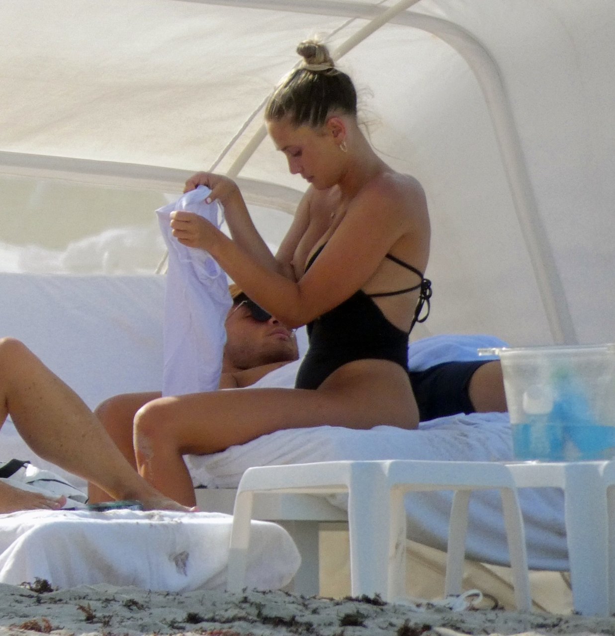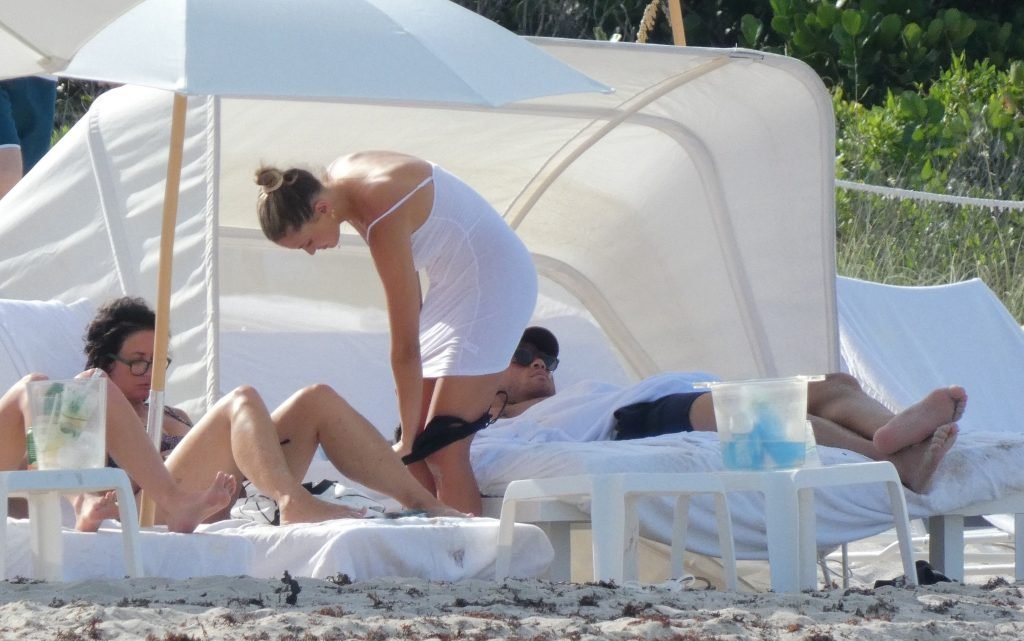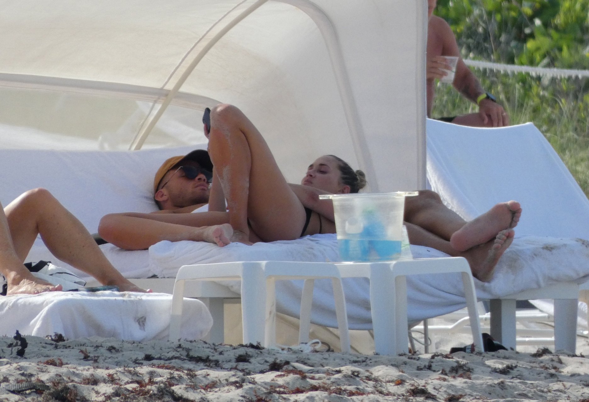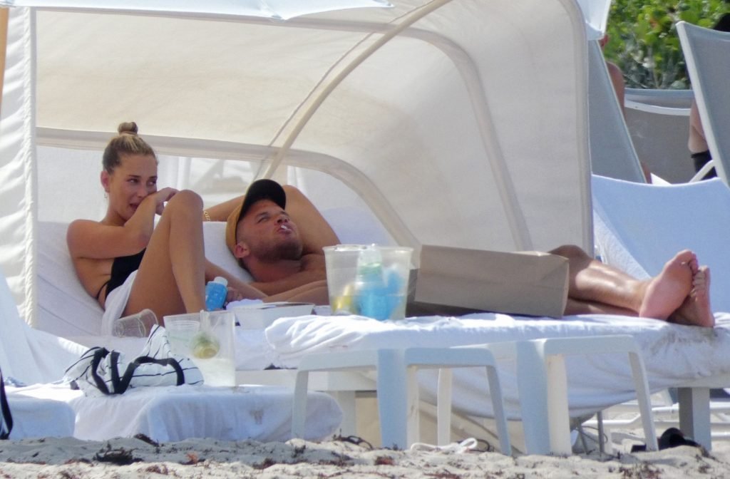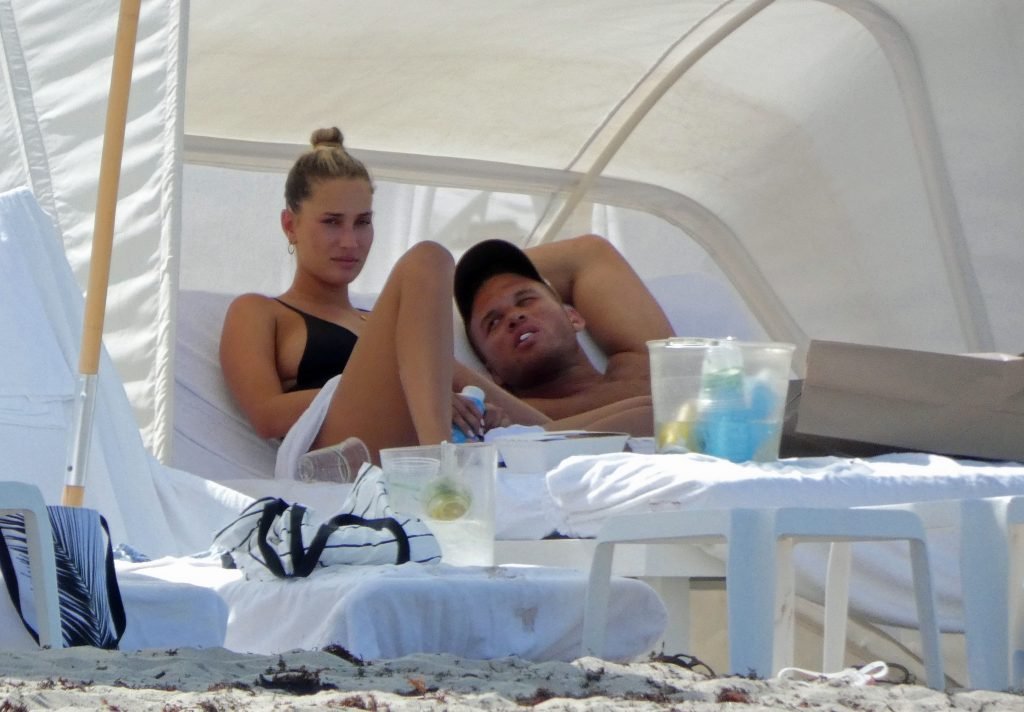 L’ex de Kendall Jenner, Blake Griffin, a été photographié alors qu’il profitait d’une belle journée à la plage à Miami Beach avec sa nouvelle petite amie de 23 ans, Francesca Aiello, le 15/07/2018. Elle a eu un petit accident de vêtement en dévoilant son sein et son mamelon en se changeant sur la plage tandis qu’elle et Blake profitaient d’un après-midi allongés ensemble dans une cabane VIP de luxe et sur des transats avec des amis.