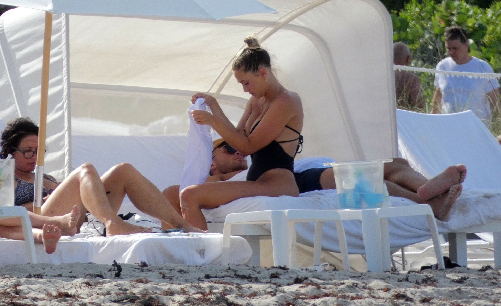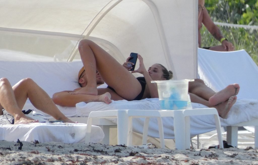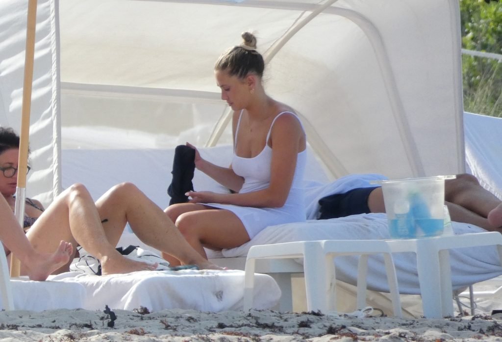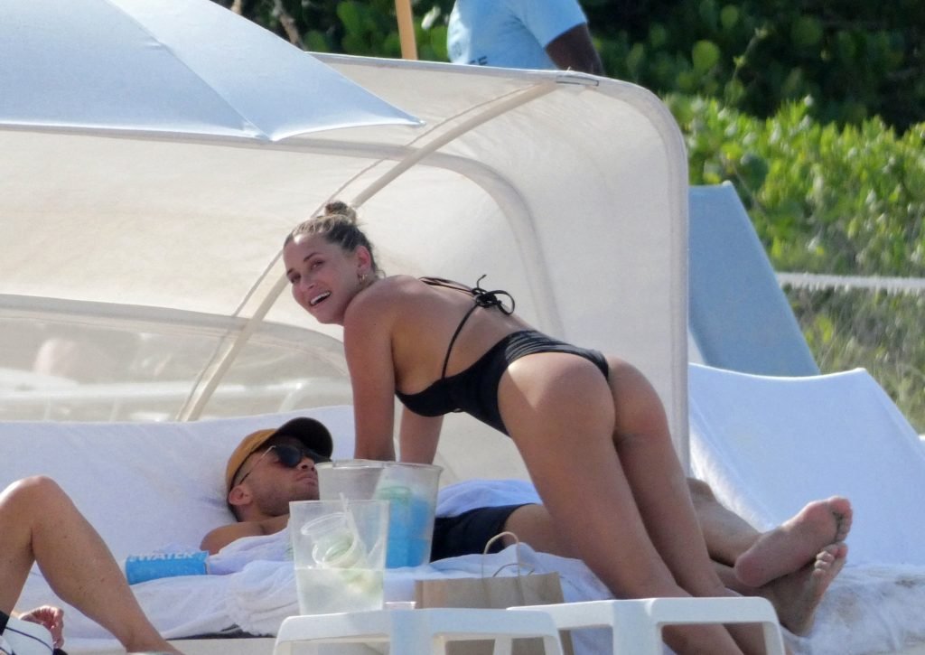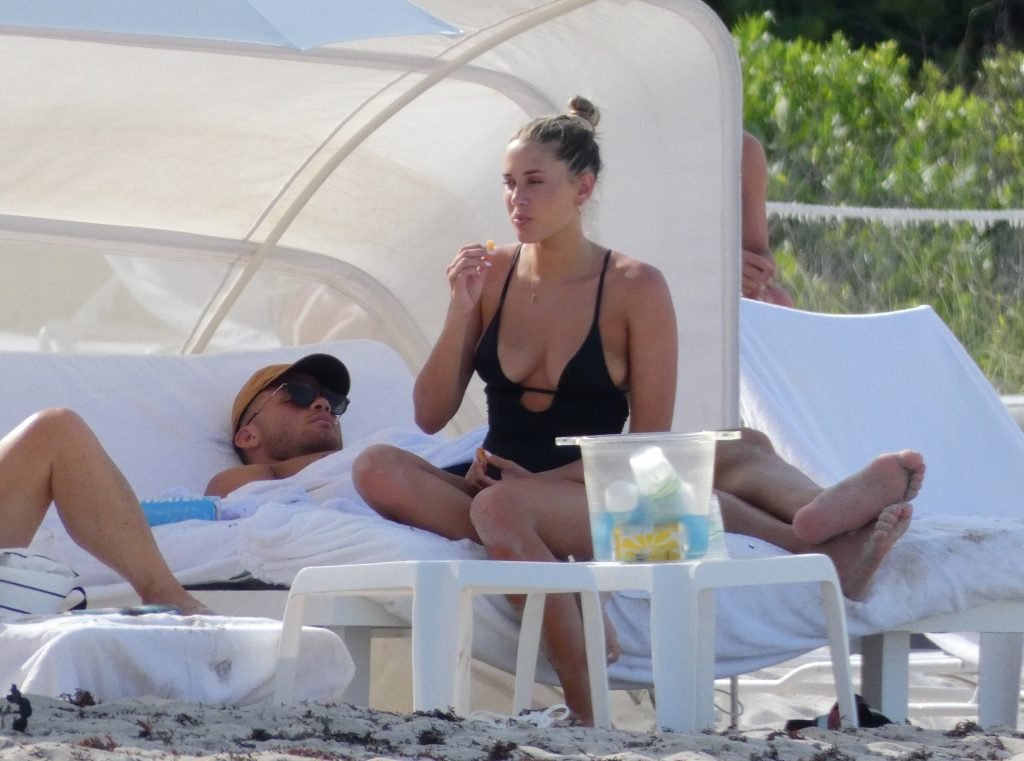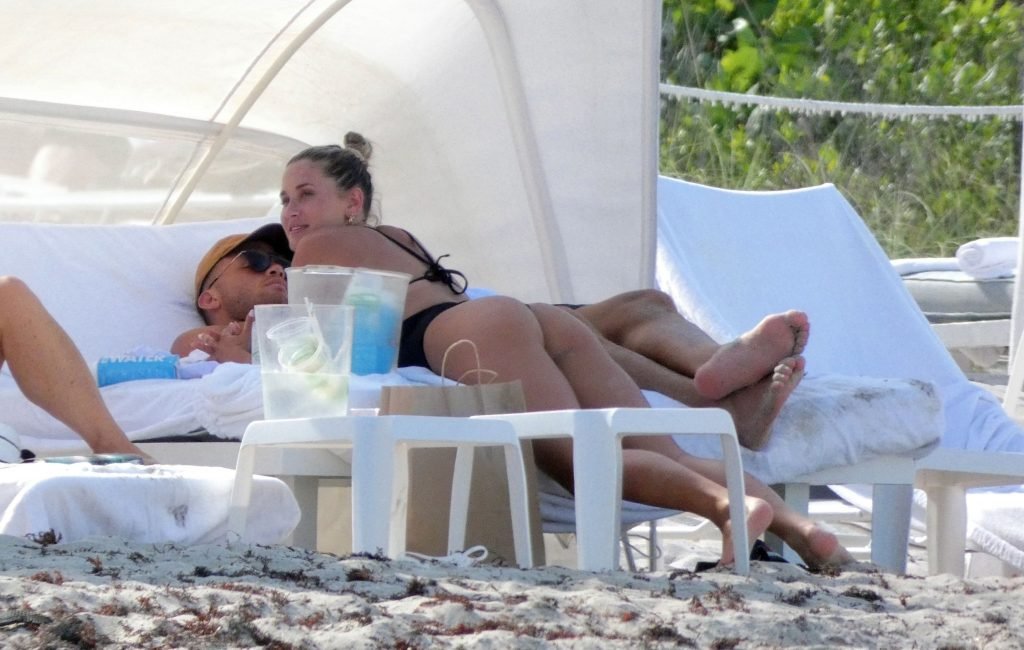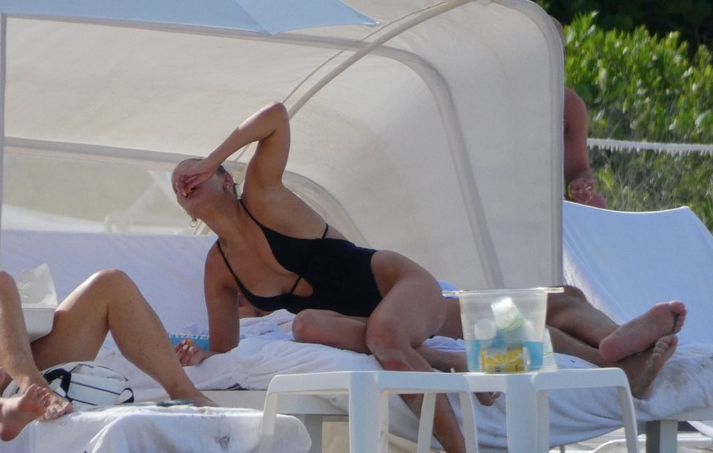 L’ex de Kendall Jenner, Blake Griffin, a été photographié alors qu’il profitait d’une belle journée à la plage à Miami Beach avec sa nouvelle petite amie de 23 ans, Francesca Aiello, le 15/07/2018. Elle a eu un petit accident de vêtement en dévoilant son sein et son mamelon en se changeant sur la plage tandis qu’elle et Blake profitaient d’un après-midi allongés ensemble dans une cabane VIP de luxe et sur des transats avec des amis.