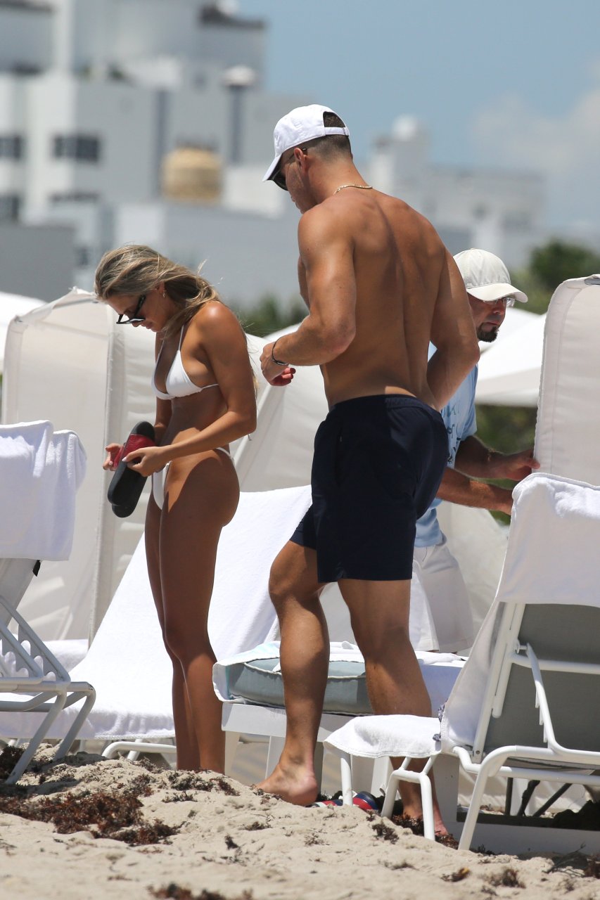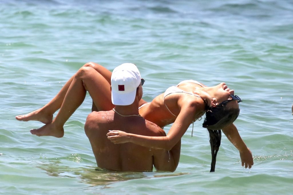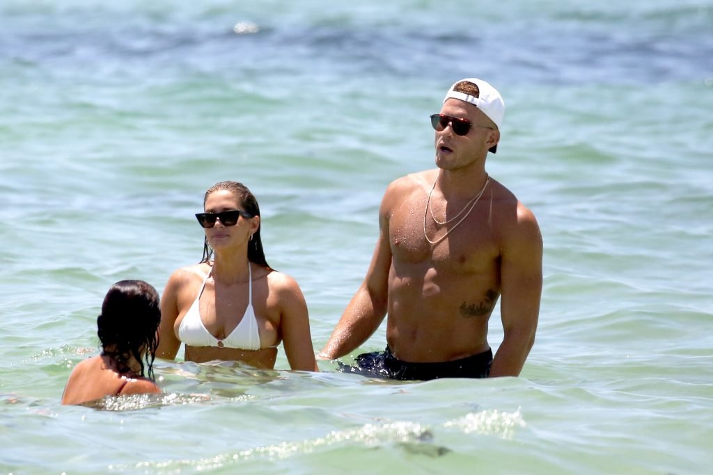 La star des Detroit Pistons Blake Griffin profite de la plage de Miami avec la créatrice de vêtements américaine de 23 ans, fondatrice de Frankies Bikinis, Francesca Aiello.