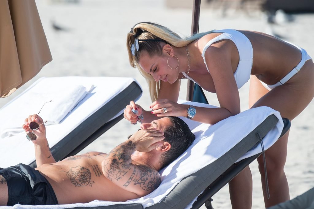 Le mannequin italien Francesca Brambilla (27 ans) exhibe son corps en bikini alors qu’elle profite d’une journée à Miami Beach, 12/03/2018.