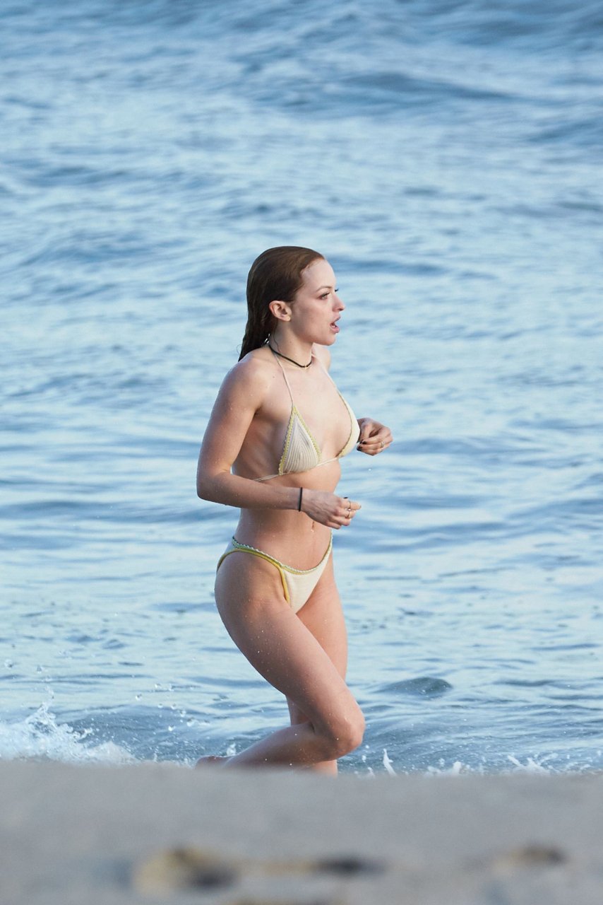 Francesca Eastwood porte un tout petit bikini blanc et se dénude sur la plage de Malibu, 30/03/2017. Francesca Ruth Fisher-Eastwood est une actrice américaine, mannequin, personnalité de la télévision et mondaine. Âge : 23 ans (née le 7 août 1993).