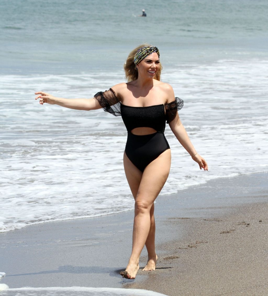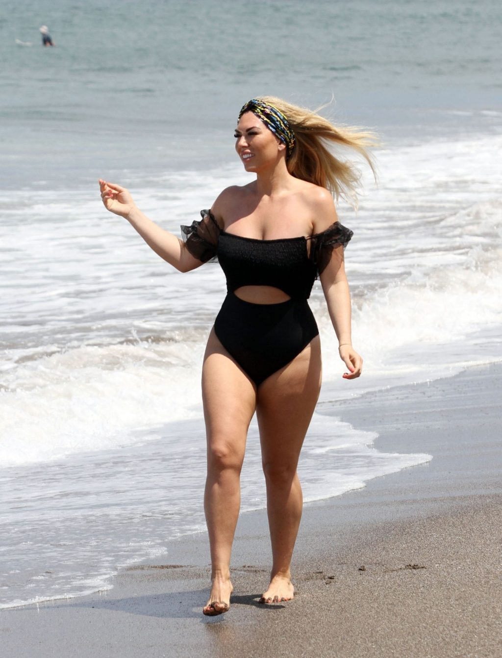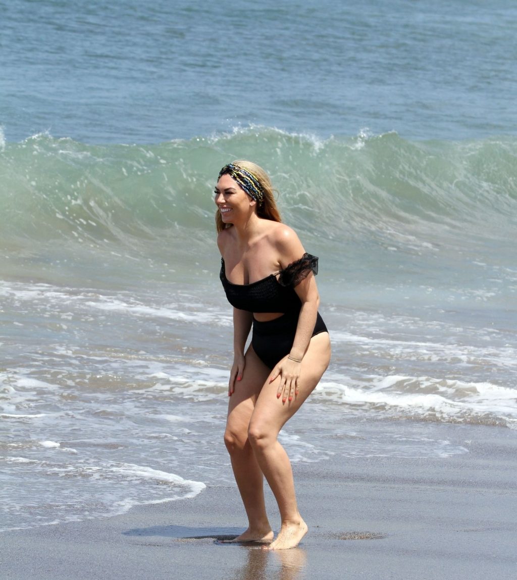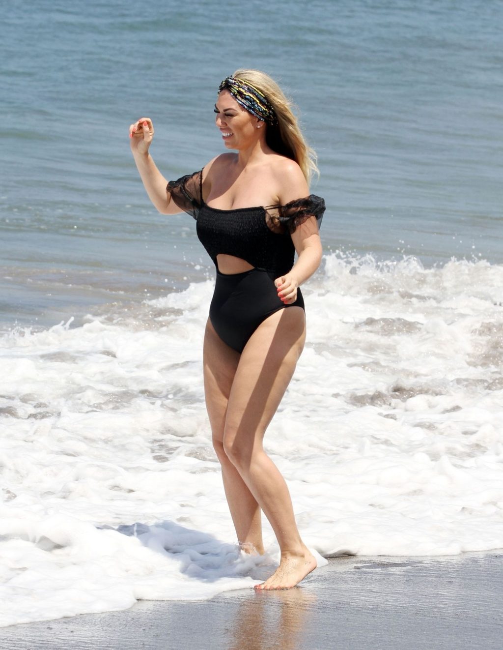 La star de la télé-réalité Frankie Essex affiche sa récente perte de poids en vacances à Tenerife, 01/03/2020. Frankie est vue en maillot de bain noir alors qu’elle saute hors de la mer sur l’île espagnole.