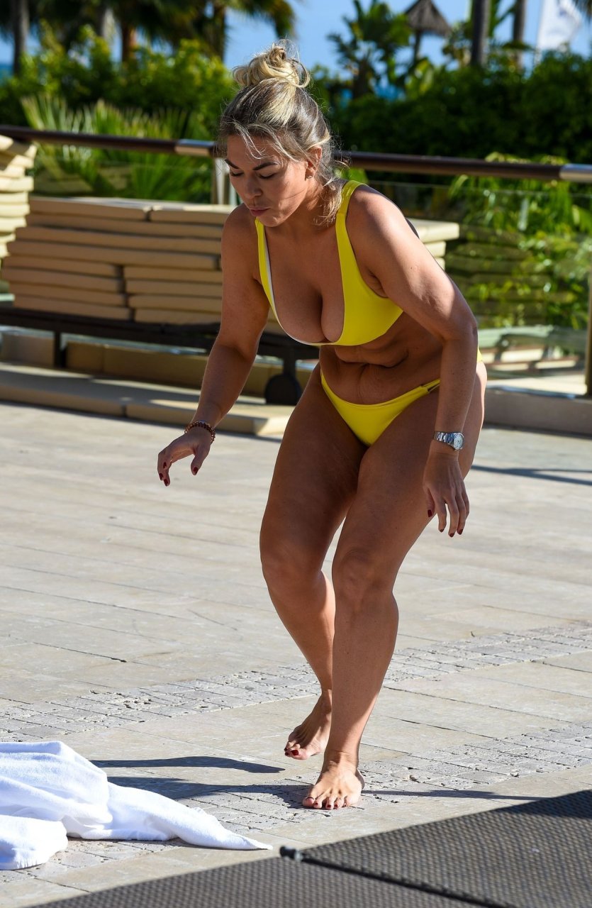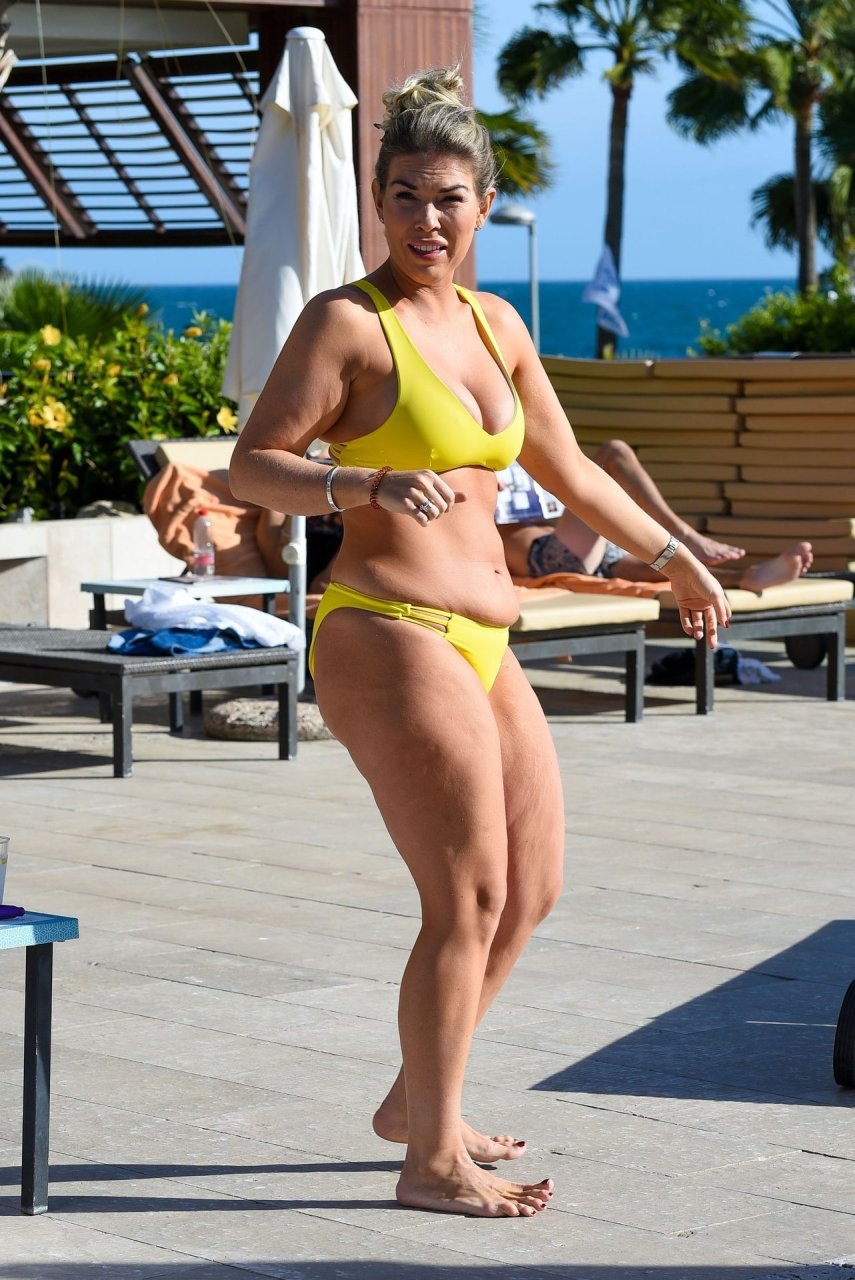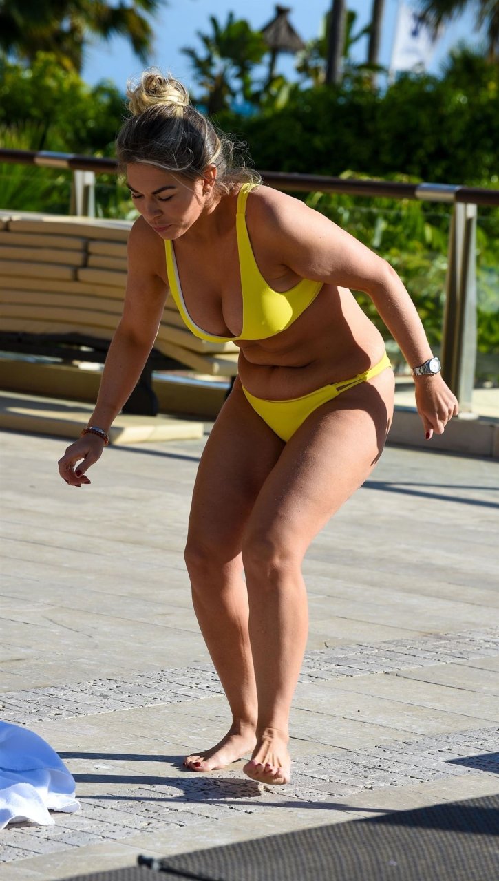 La star de TOWIE Frankie Essex a été aperçue en vacances à Tenerife, le 03/02/2019. Il a été révélé hier que Frankie a été ciblée par des hackers en ligne, ainsi que d’autres célébrités Katie Price et Chloe Sims, qui prétendent avoir des photos Fappening de son augmentation mammaire. Frankie a été vue en bikini jaune montrant son corps aux courbes autour de la piscine.
