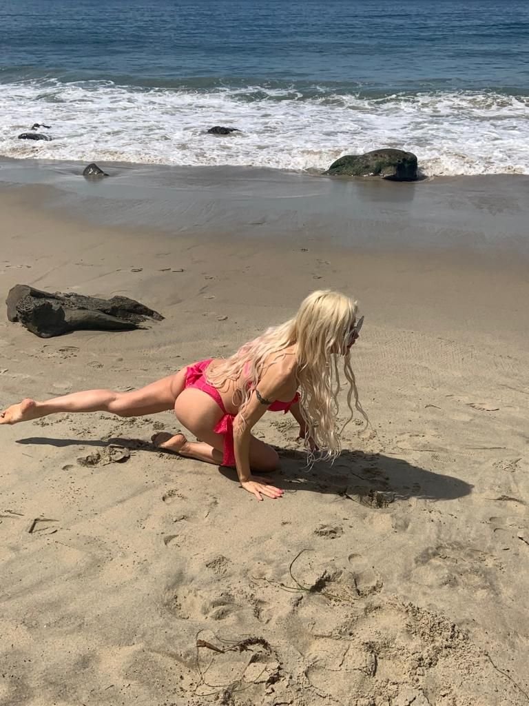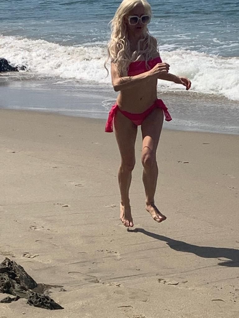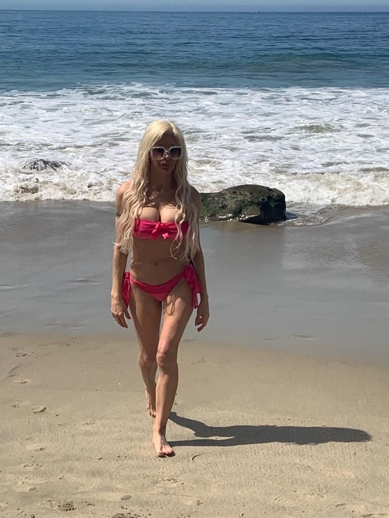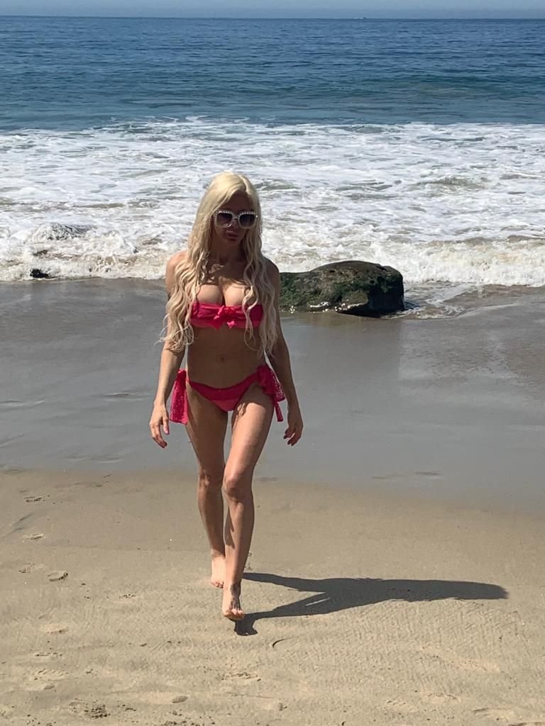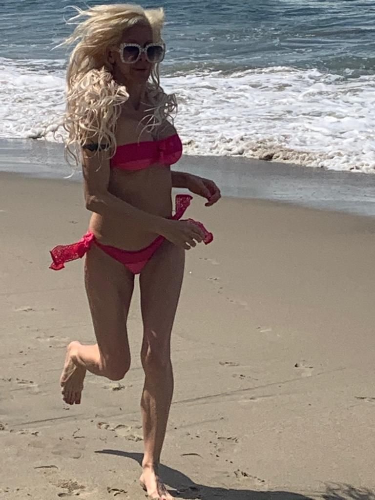 Ancienne mannequin, actrice et star de la télé-réalité, Frenchy Morgan a été aperçue en tout petit bikini sur la plage de Laguna Beach, le 19/04/2019.