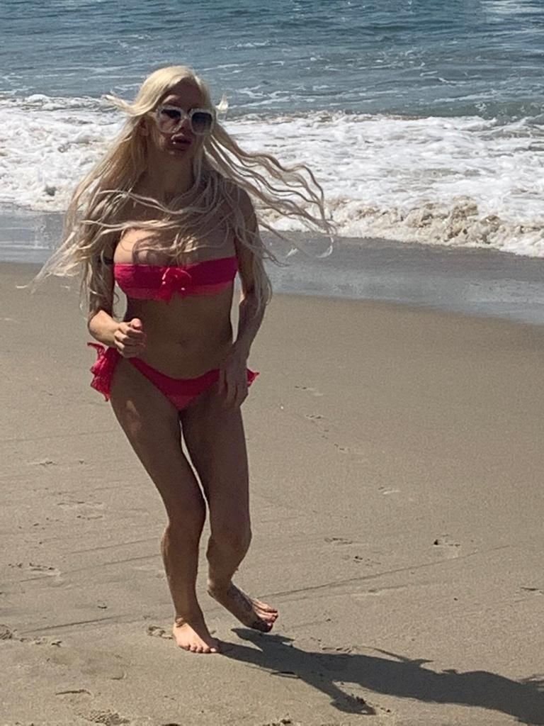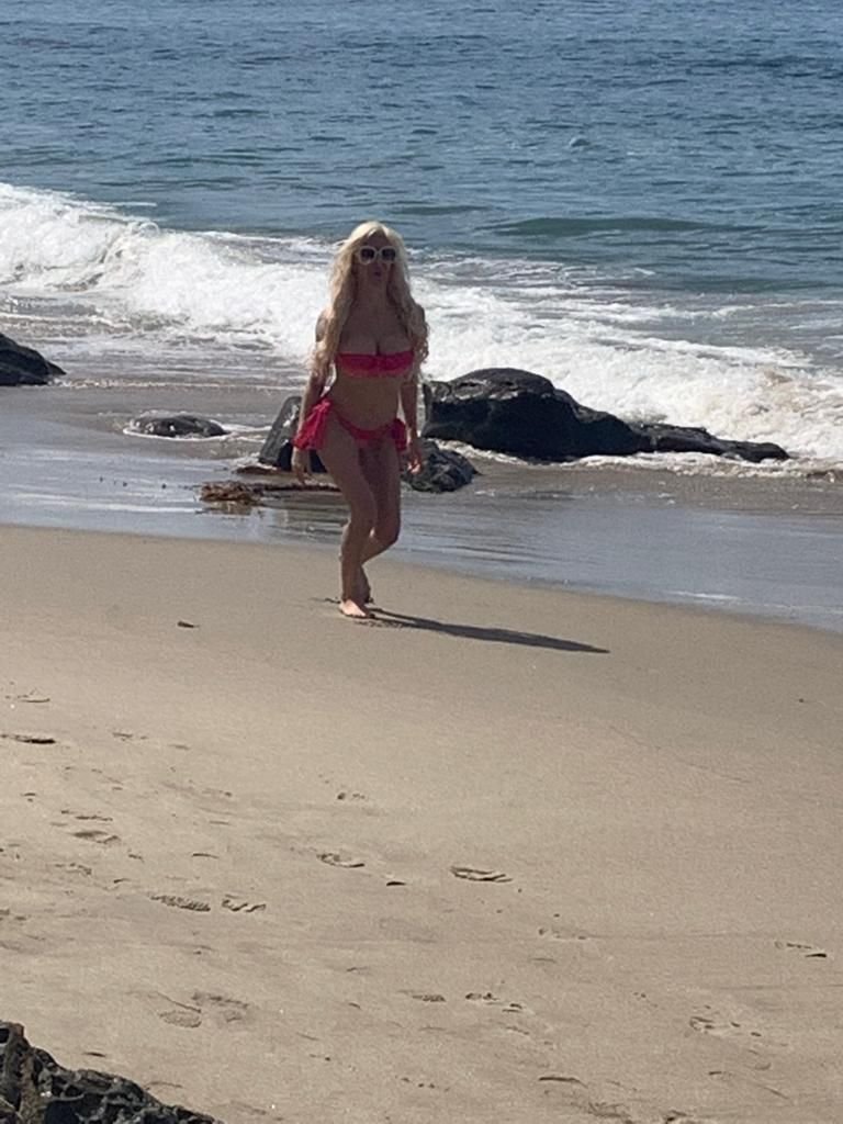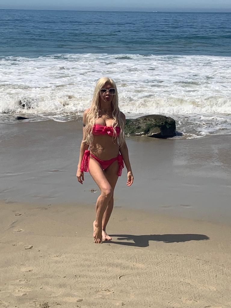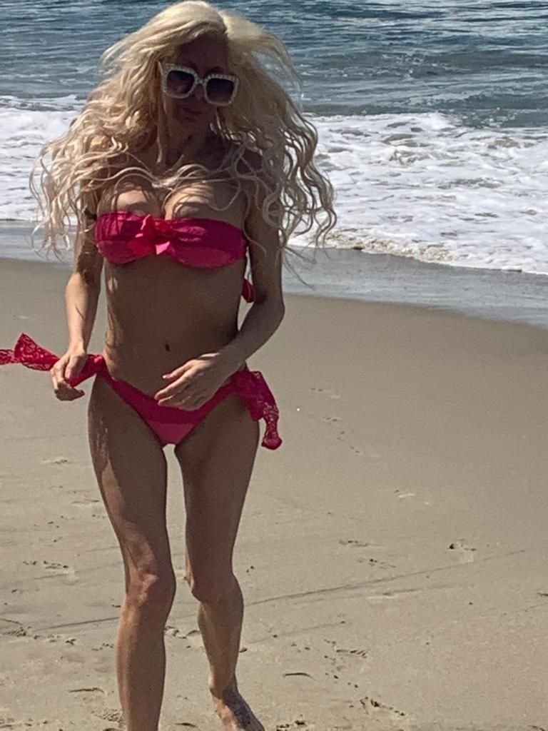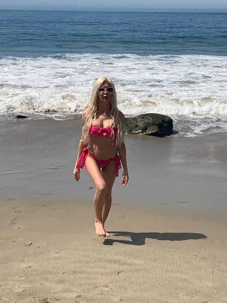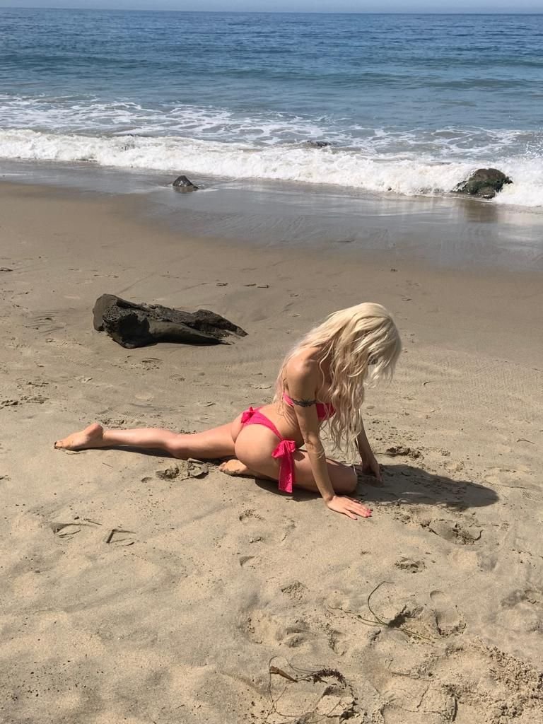Ancienne mannequin, actrice et star de la télé-réalité, Frenchy Morgan a été aperçue en tout petit bikini sur la plage de Laguna Beach, le 19/04/2019.