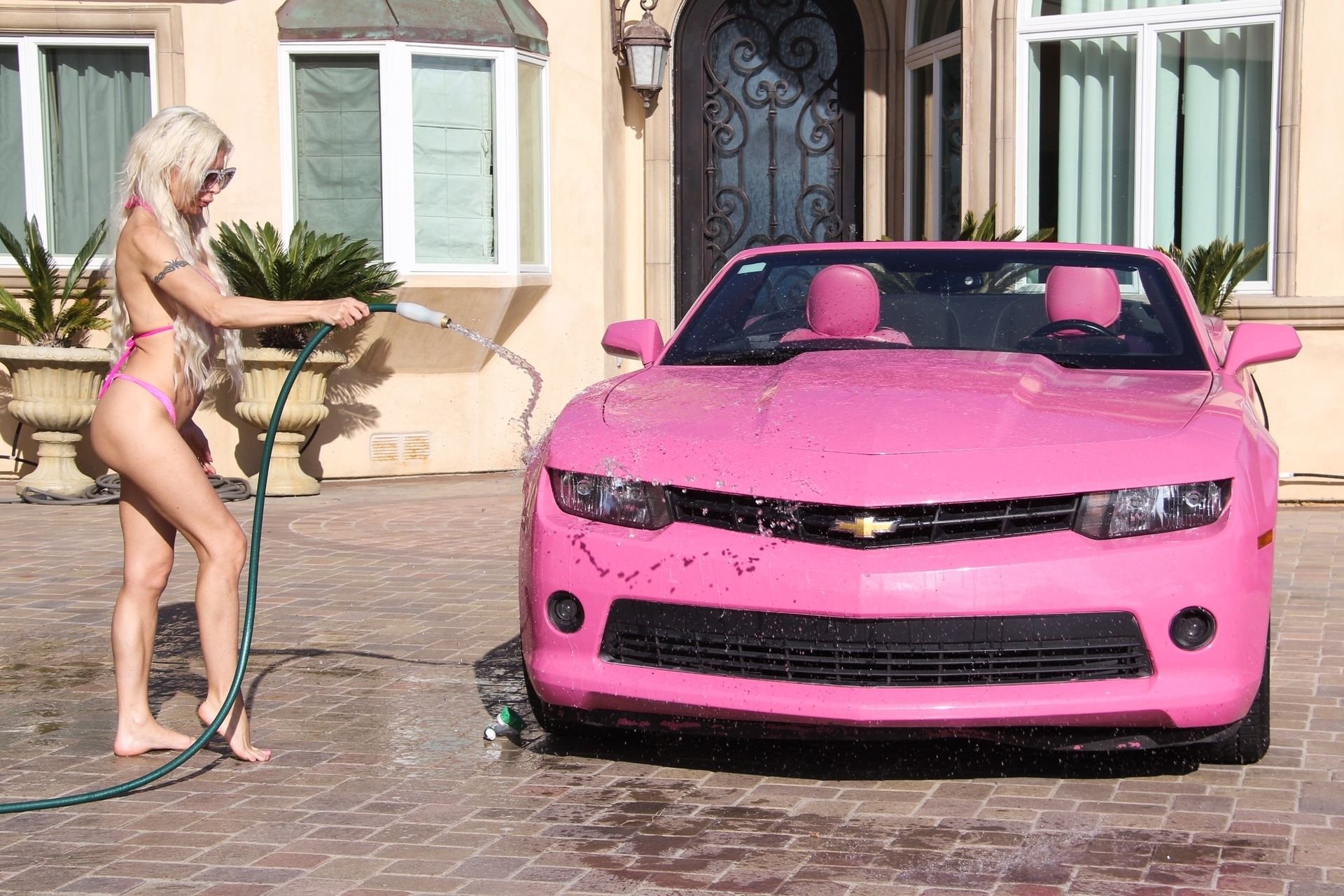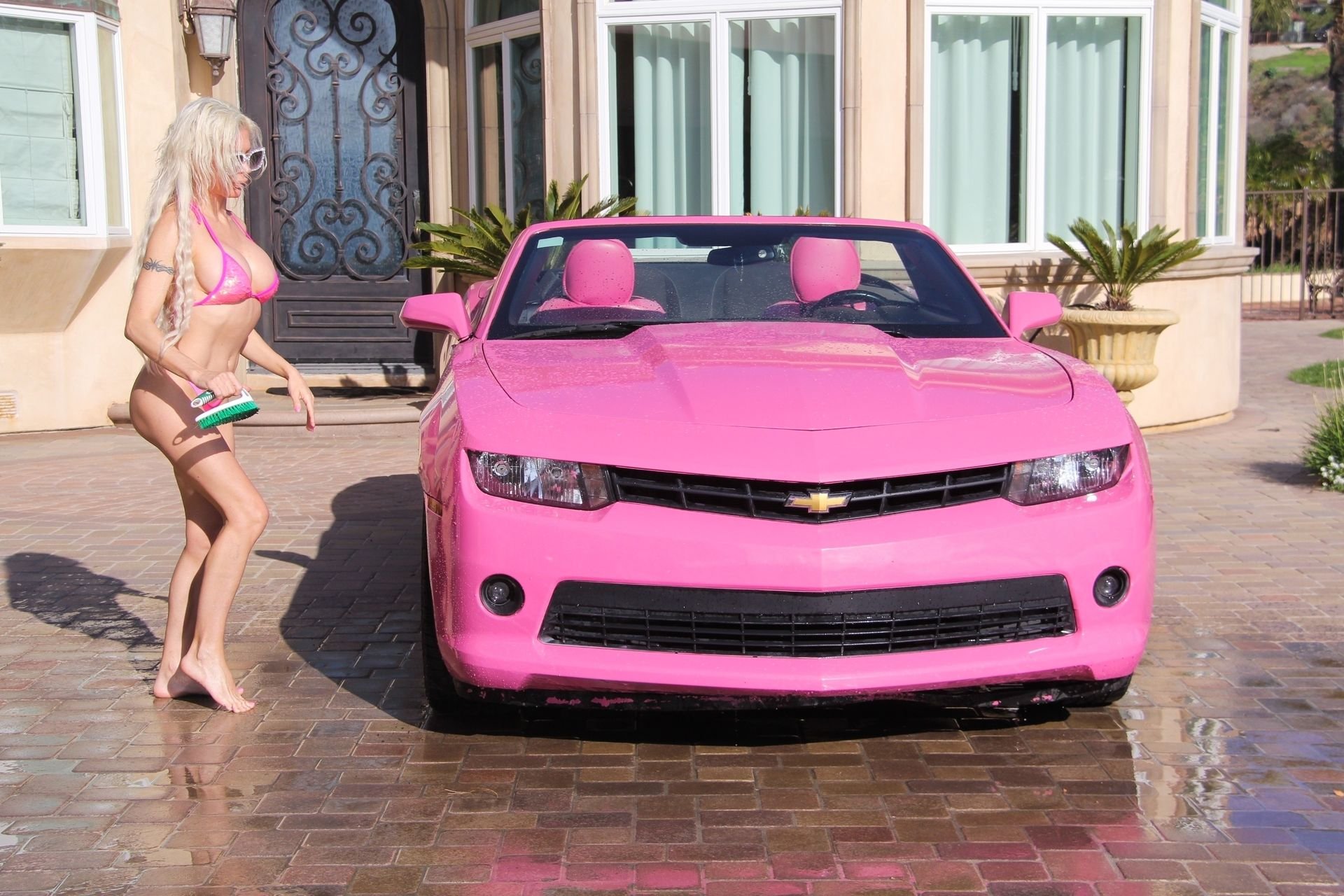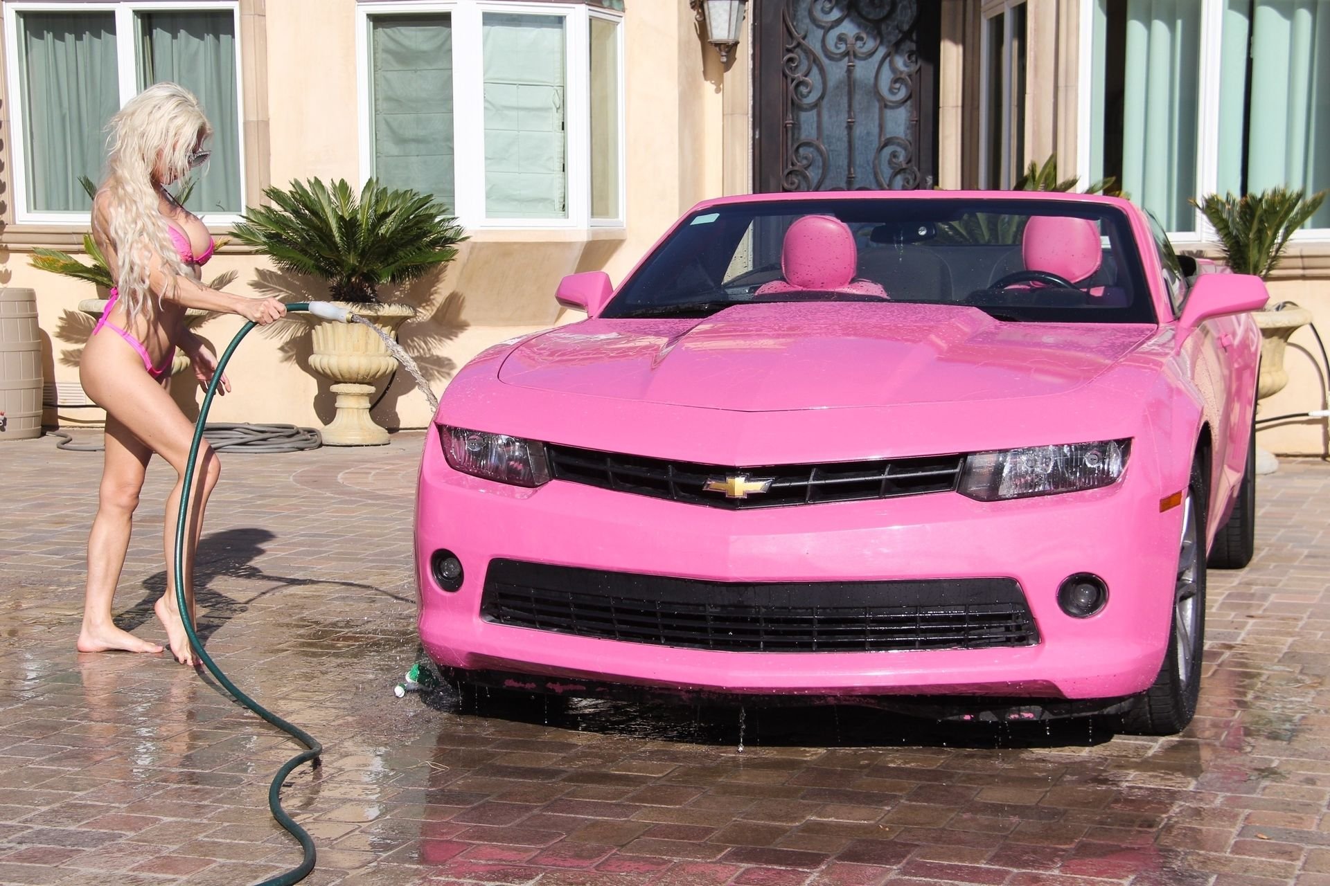 Frenchy (Angelique) Morgan devient mouillée et sauvage alors qu’elle met son talent au service du lavage de voitures le jour de Noël, le 25/12/2018. La star française de la télé-réalité portait un bikini string rose assorti à sa décapotable rose personnalisée.