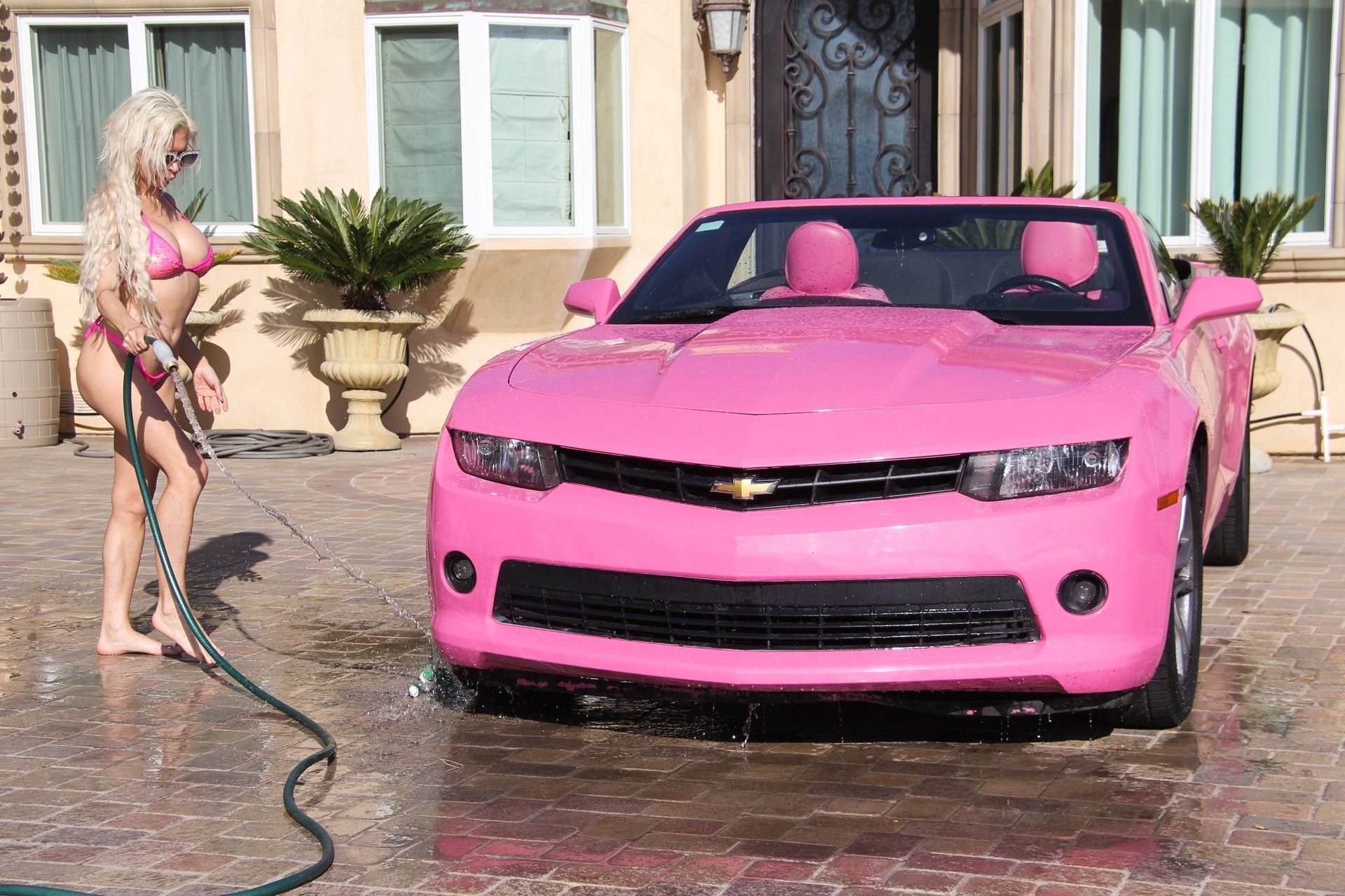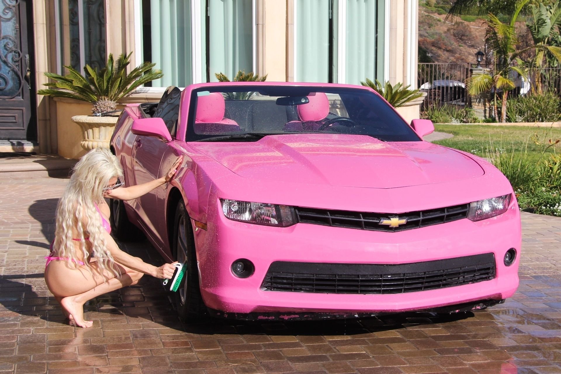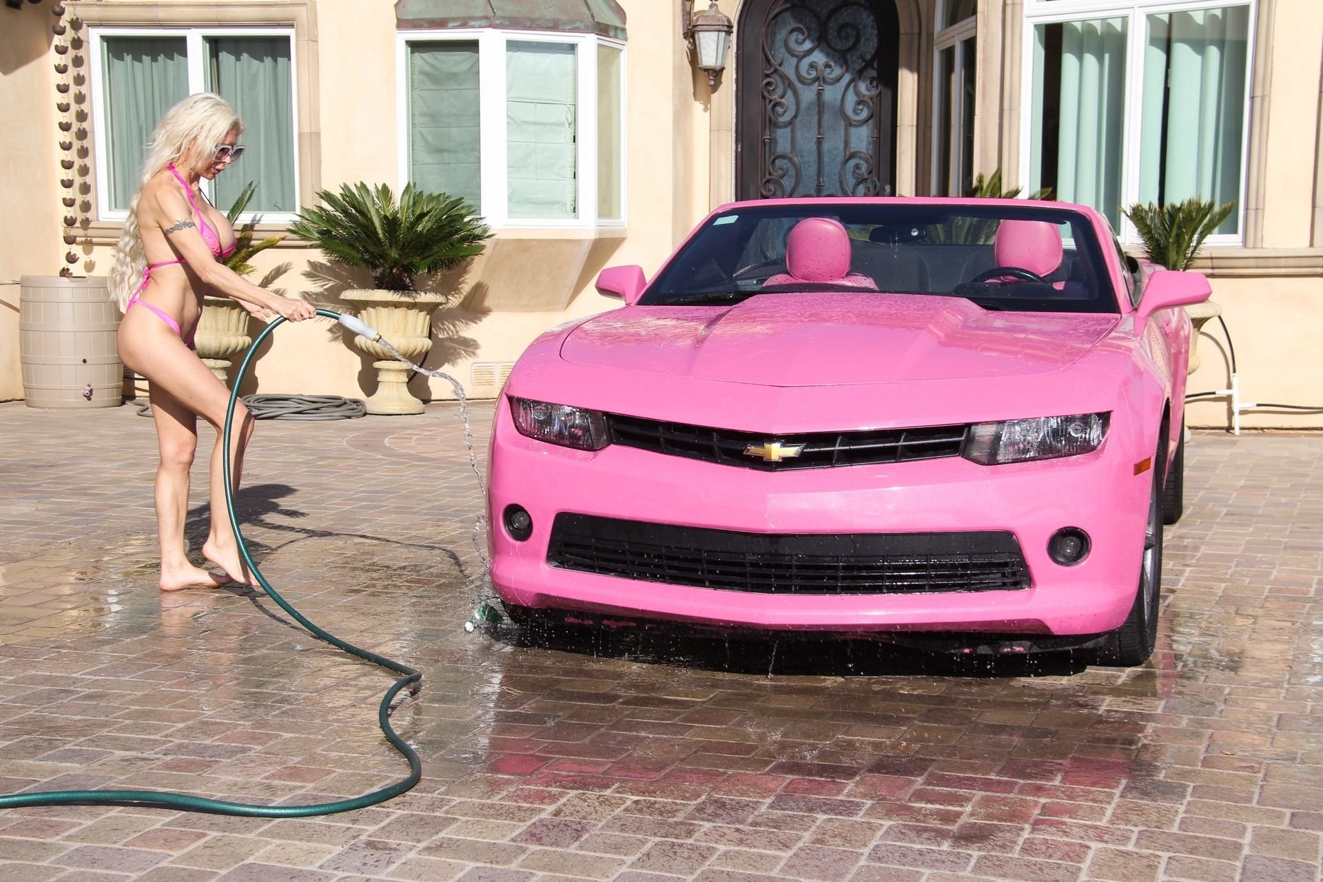 Frenchy (Angelique) Morgan devient mouillée et sauvage alors qu’elle met son talent au service du lavage de voitures le jour de Noël, le 25/12/2018. La star française de la télé-réalité portait un bikini string rose assorti à sa décapotable rose personnalisée.