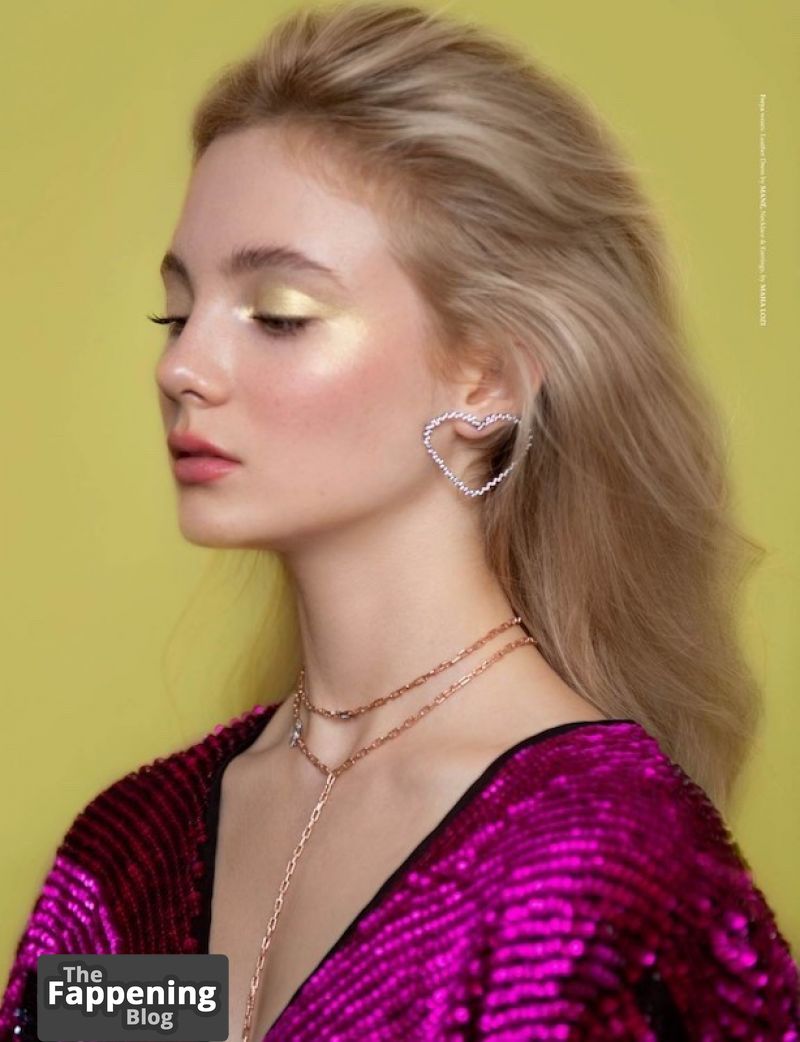 La collection de photos de Freya Allan présente un contenu légèrement nu et provocant, mettant en valeur ses seins sans soutien-gorge avec un joli décolleté, ses fesses exposées, ses jambes attrayantes, des cas de dysfonctionnements vestimentaires en jupe relevée, et d’autres images provocantes.