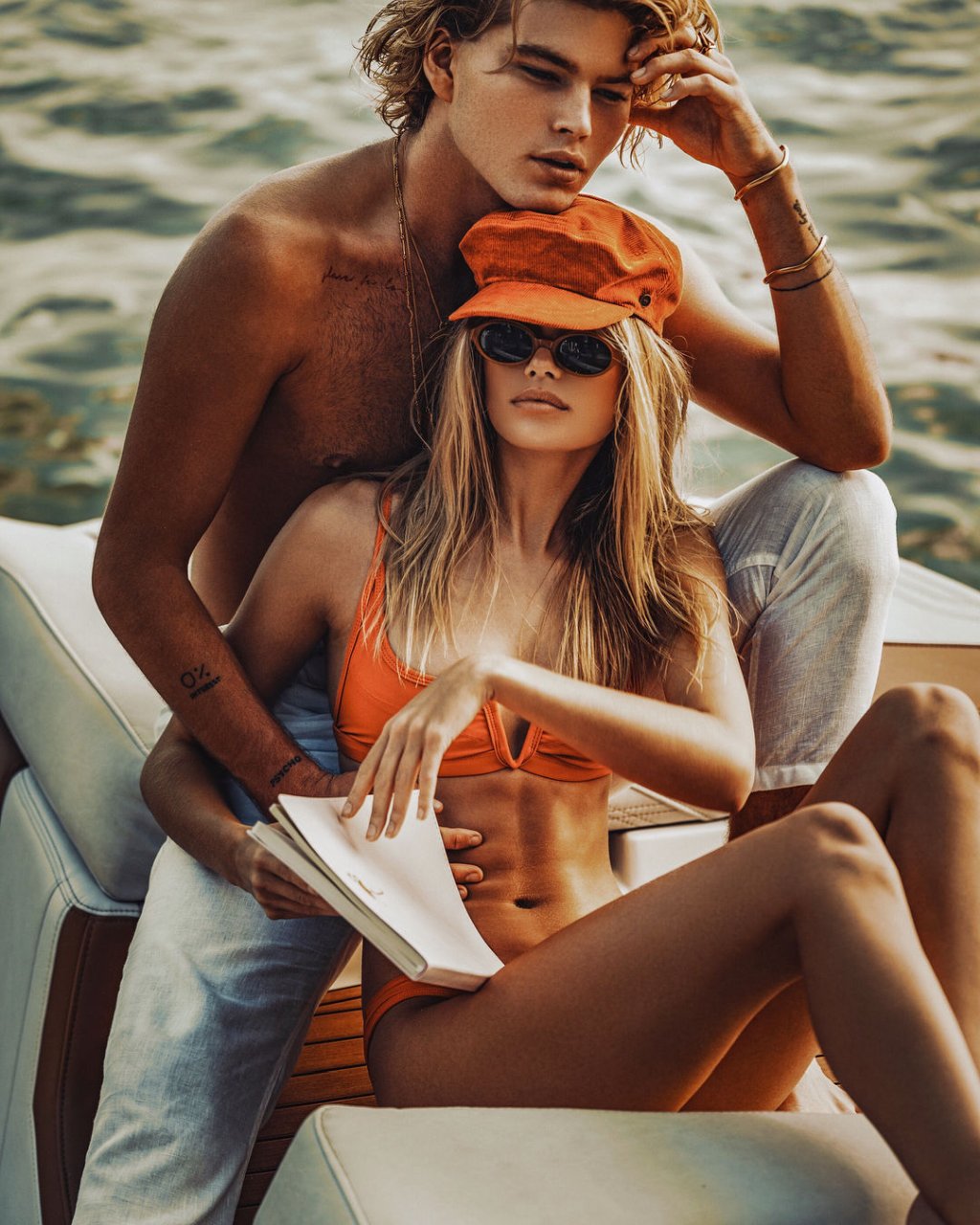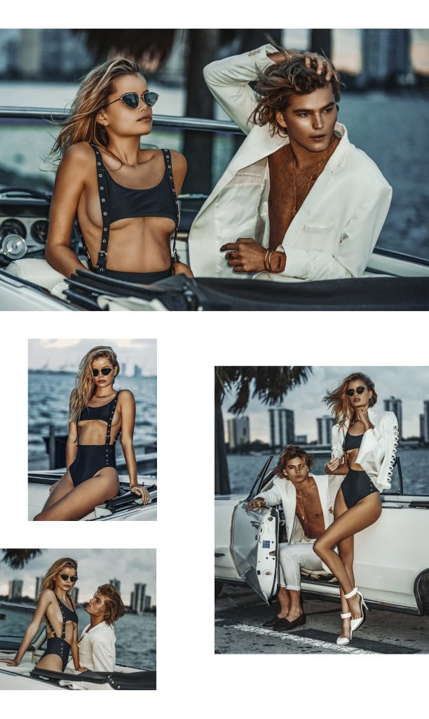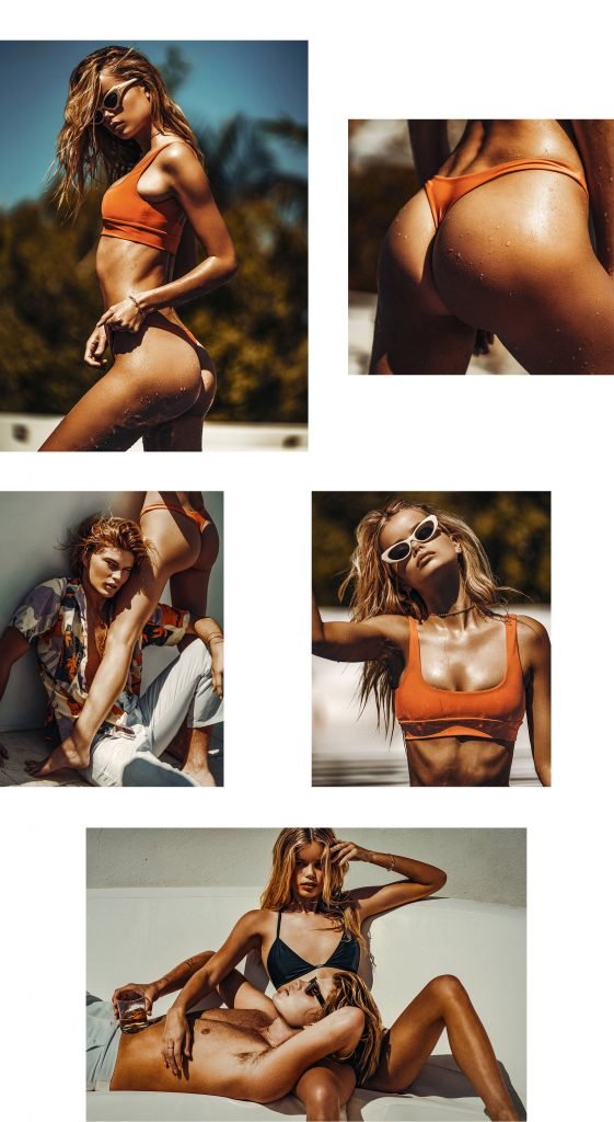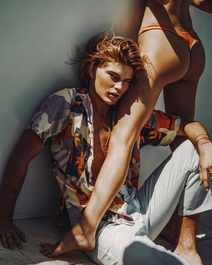 Models Frida Aasen et Jordan Barrett photographiés par Kesler Tran pour la campagne Fristelser de Fae Swim (Printemps/Été 2018). Frida Aasen est un top model de 23 ans originaire de Kristiansand, Norvège.
