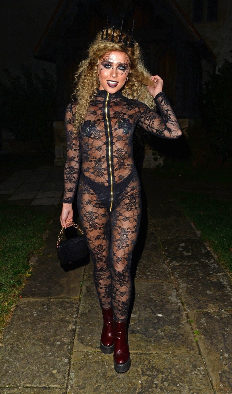 “Love Island” star Gabby Allen est un régal pour les yeux alors qu’elle traverse un cimetière pour se rendre à Sheesh à Chigwell, 30/10/2019.