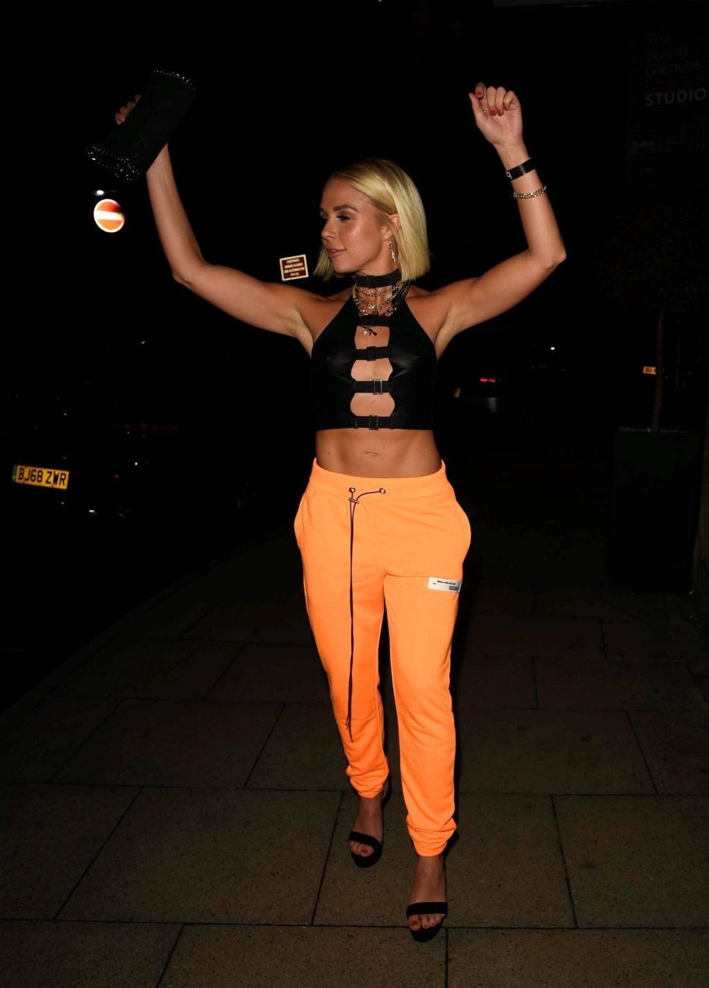 La star de “Love Island” Gabby Allen a été vue à la fête The Boo Hoo Man Tracksuit Party au restaurant Rosso à Manchester, le 21/08/2019. Ses tétons racontaient une soirée intéressante !