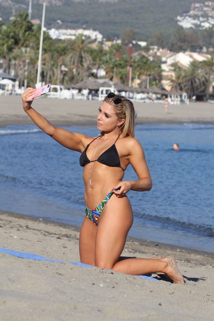 ‘Love Island’ star Gabby Allen est vue en train de montrer son corps enviable lors de ses vacances à Marbella, le 23/11/2017.