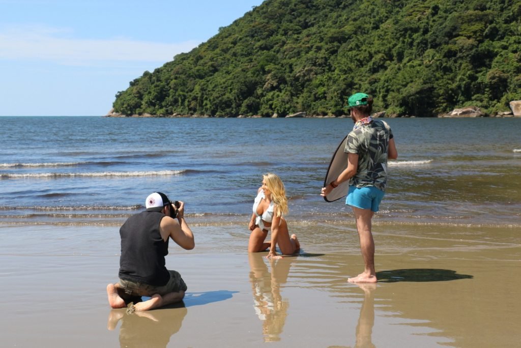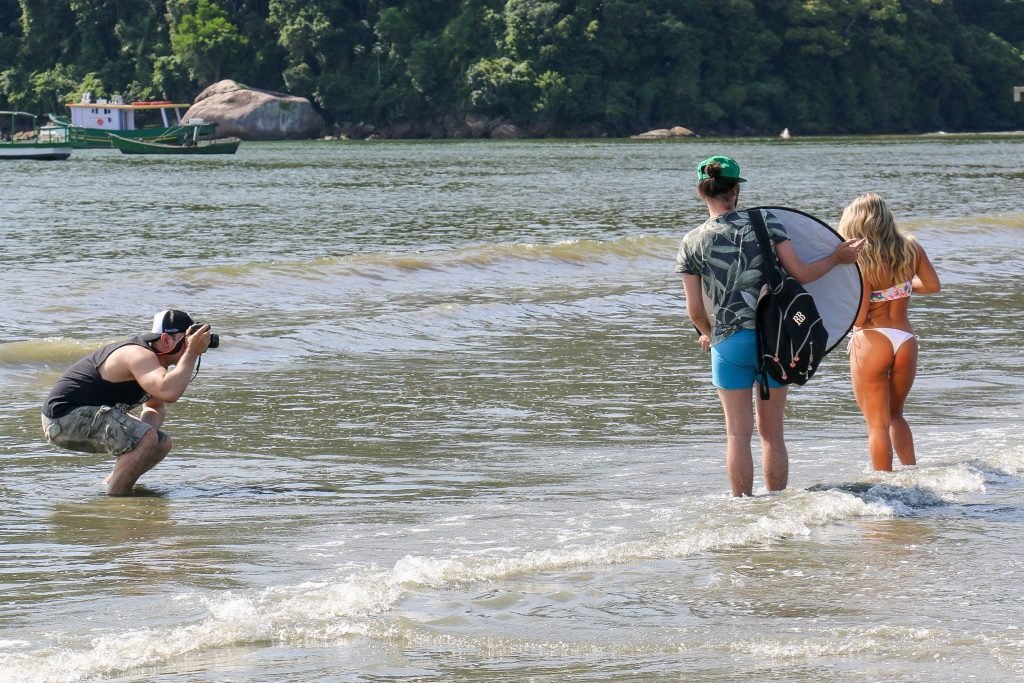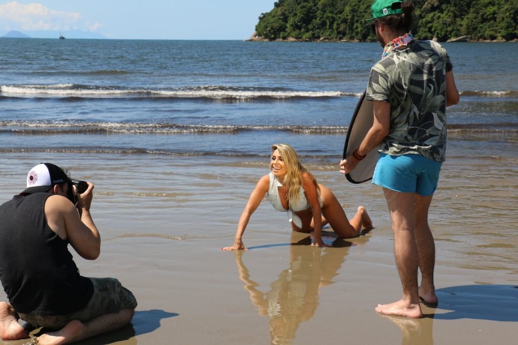 Le mannequin fitness Gabriela Bayerlein pose lors d’une séance photo nue sur la plage de Bertioga et Perequê pour la couverture du magazine Eros, numéro de mai 2018, 04/10/2018.