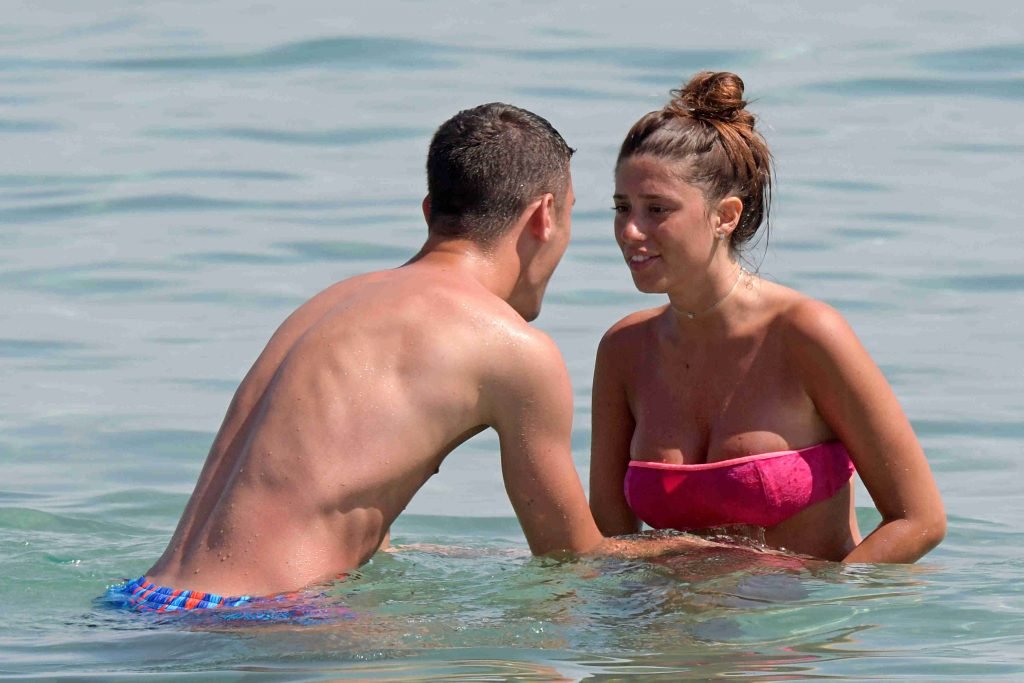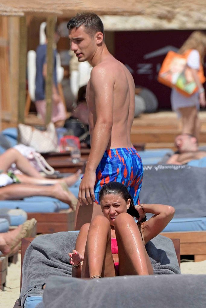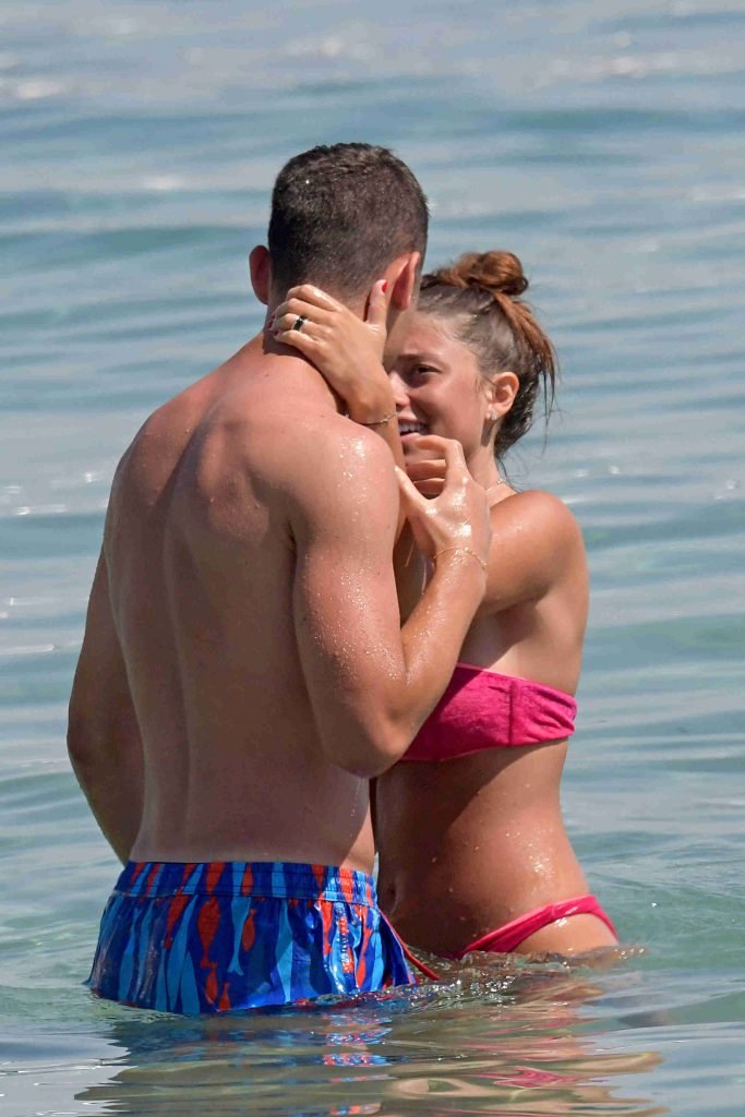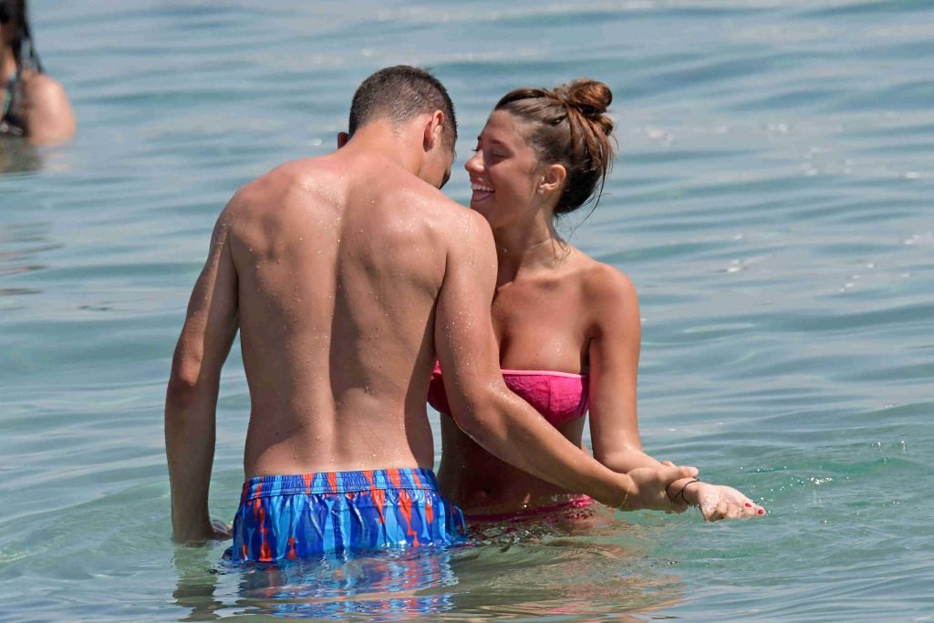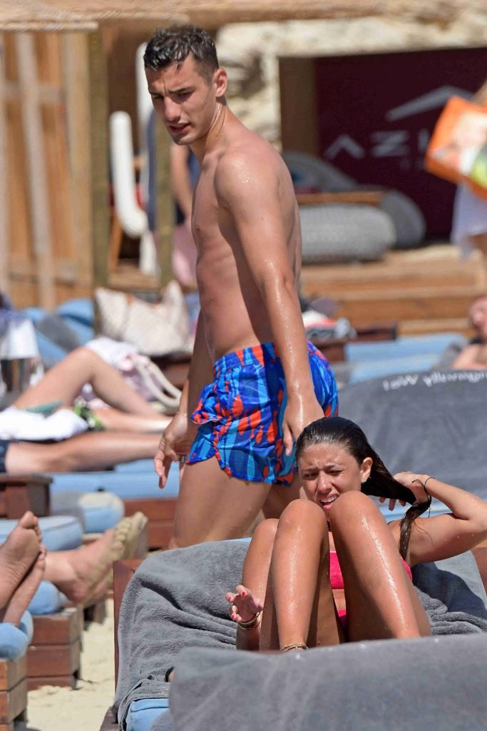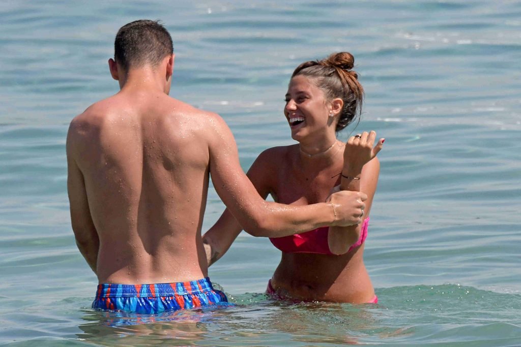 Le joueur de football de la Sampdoria Federico Bonazzoli et la blogueuse de mode italienne de 20 ans Angela Nasti profitent d’une journée à la plage au restaurant Solymar sur la plage de Kalo Livadi à Mykonos, Grèce, 14/06/2018.