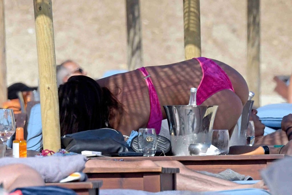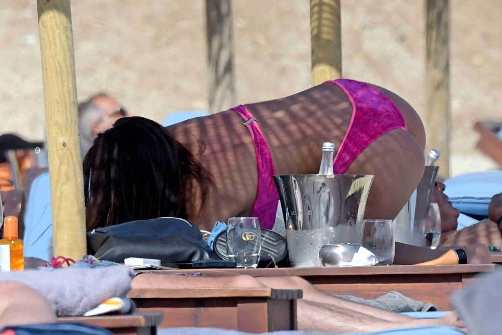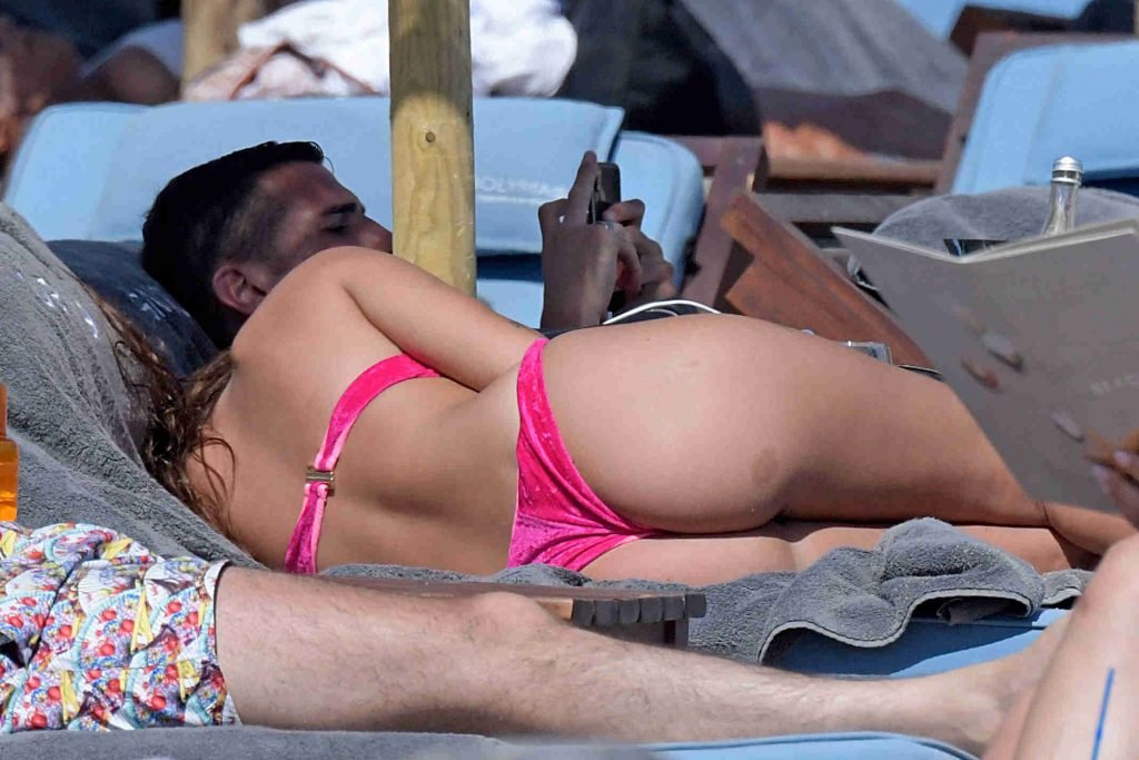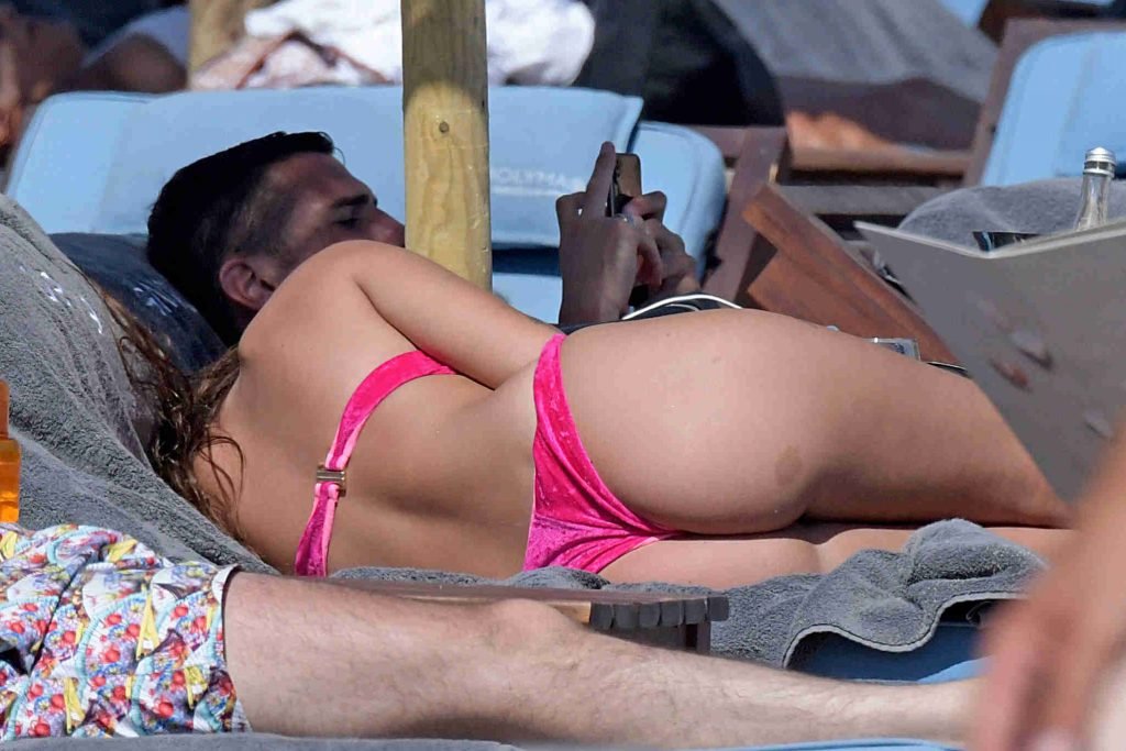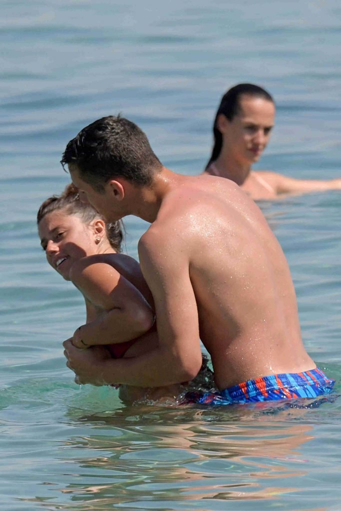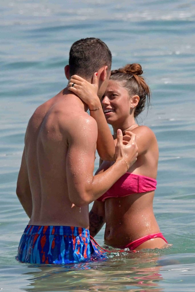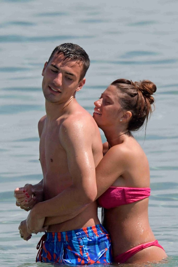 Le joueur de football de la Sampdoria Federico Bonazzoli et la blogueuse de mode italienne de 20 ans Angela Nasti profitent d’une journée à la plage au restaurant Solymar sur la plage de Kalo Livadi à Mykonos, Grèce, 14/06/2018.
