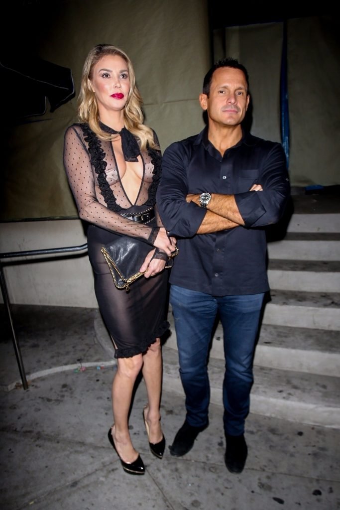 Brandi Glanville montre ses atouts après un dîner au Catch LA à West Hollywood, le 14/11/2017. La star de la télé-réalité de 44 ans exhibe son corps dans une robe transparente et des talons alors qu’elle salue ses fans en sortant avec son charmant cavalier.