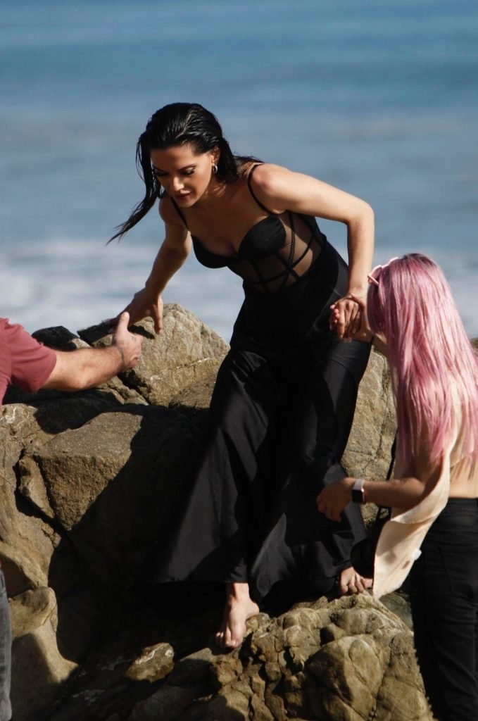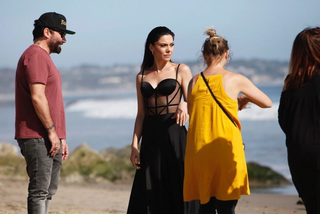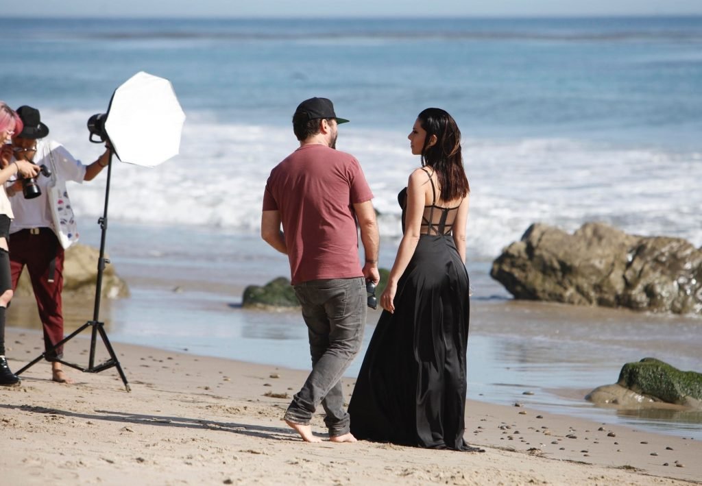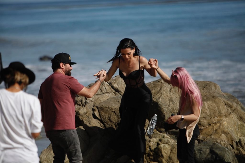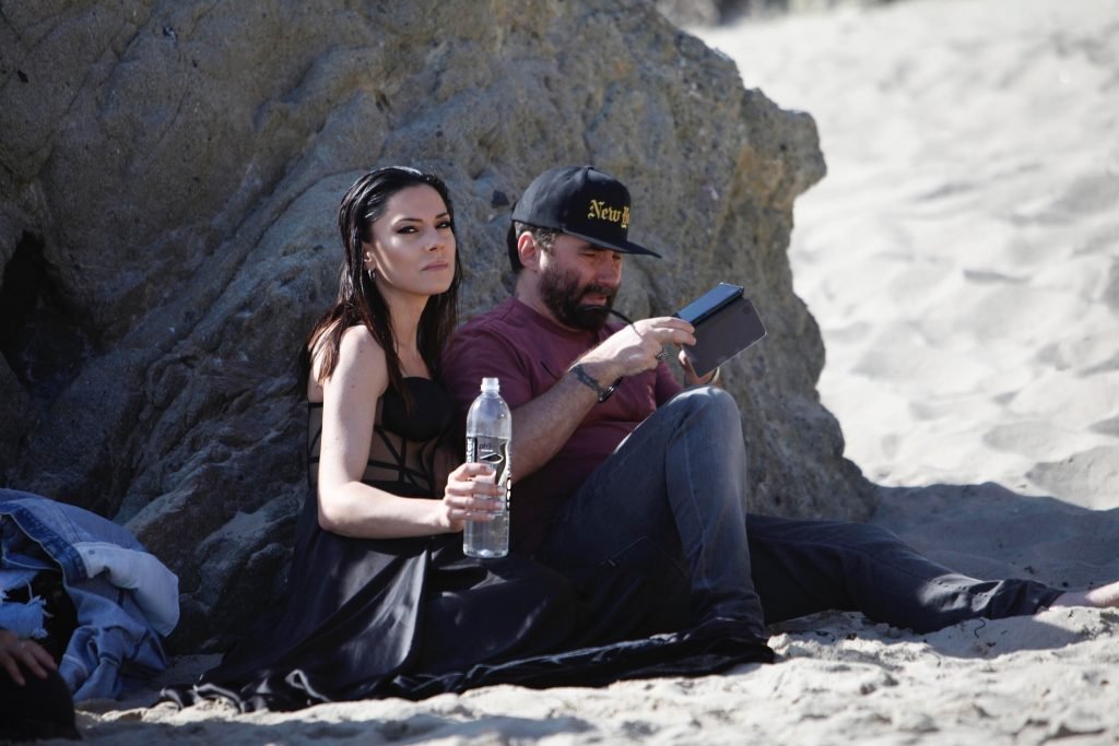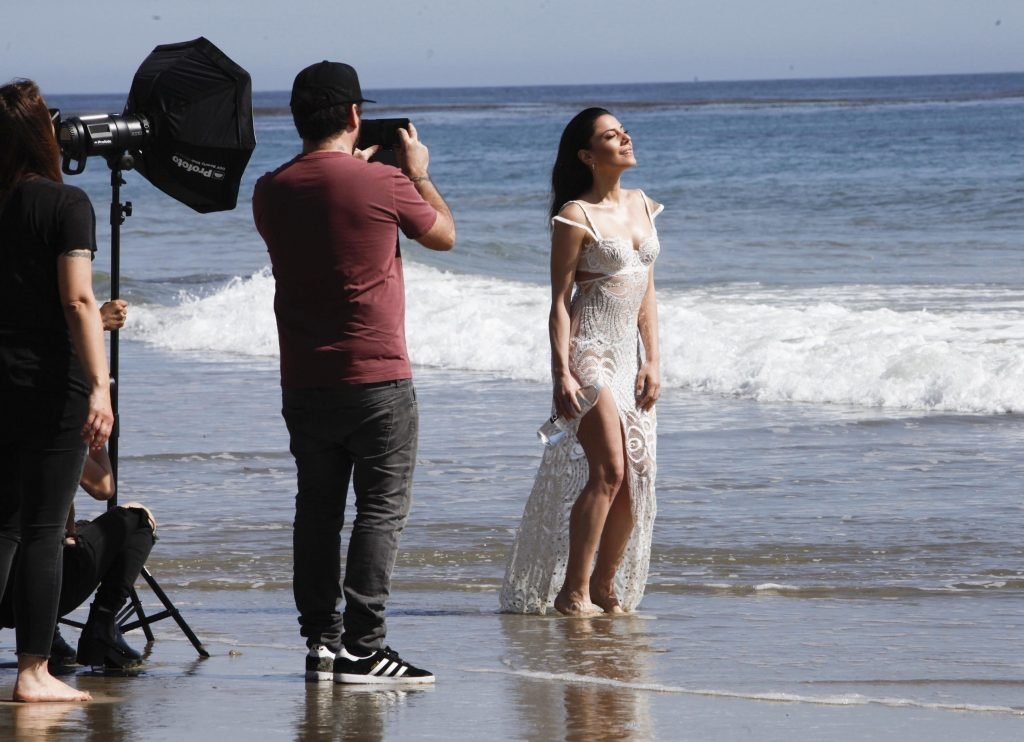 L’actrice italienne de télévision Giglia Marra tourne une nouvelle campagne 138 Water sur la plage de Malibu sous le regard de son petit ami, le célèbre réalisateur Federico Zampaglione, 19/05/2018.