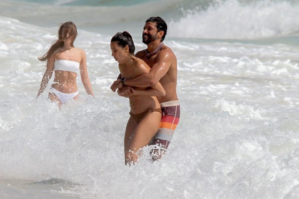 Nouveau couple Farhan Akhtar (45) et Shibani Dandekar (38) affichent leur affection en public alors qu’ils jouent sur les rives du Mexique pendant leurs vacances, 22/02/2019. Le réalisateur indien et la chanteuse indienne se rafraîchissent ensemble tout en travaillant leur bronzage à Tulum.