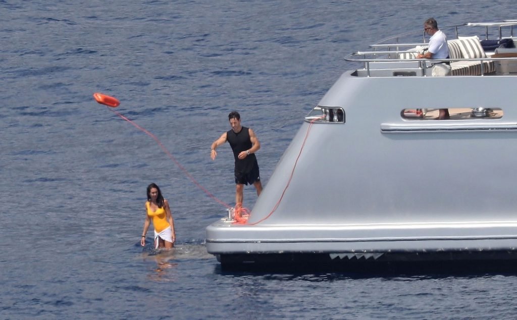 Pier Silvio Berlusconi et la famille profitant de leurs vacances à bord d’un yacht de luxe à Portofino, 22/07/2019.