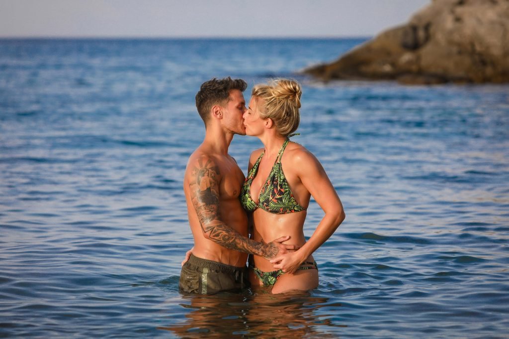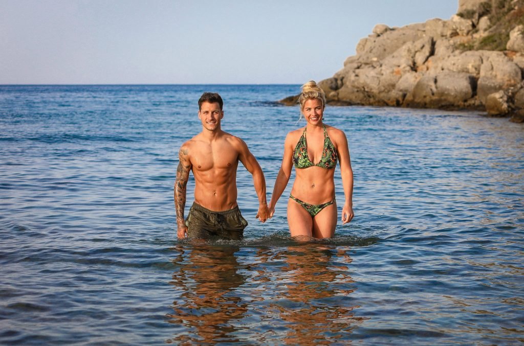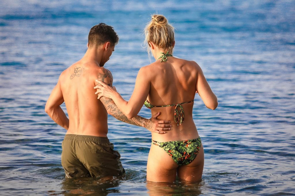 Gemma Atkinson a été vue en bikini avec Gorka Marquez sur la plage de Karma Minoan en Crète, Grèce (juillet 2018). Gemma Louise Atkinson est une célèbre mannequin et actrice britannique de 33 ans (Emmerdale Farm).