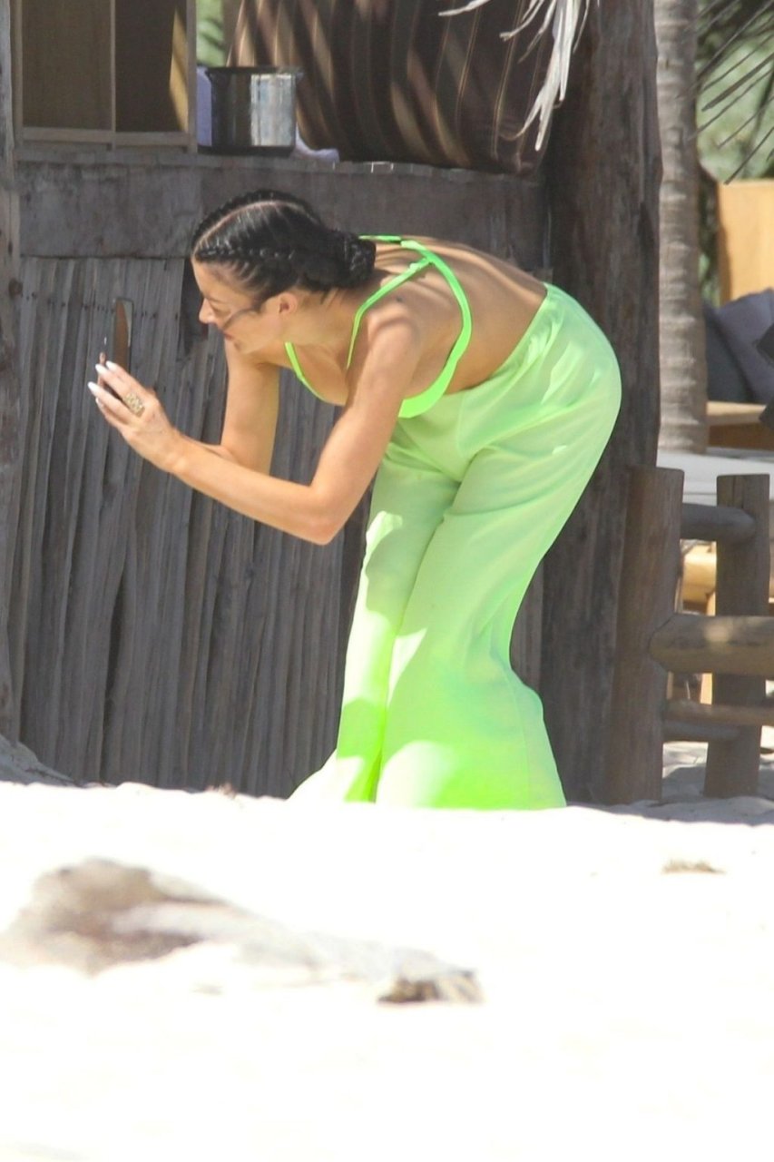 Gemma Lee Farrell, la première Playmate de Playboy originaire de Nouvelle-Zélande, profite d’une belle journée à Tulum avec des amis, le 27/02/2019. Gemma rencontre un âne de plage et passe du temps avec cette adorable créature. Gemma porte un bikini vert néon pendant ses vacances.