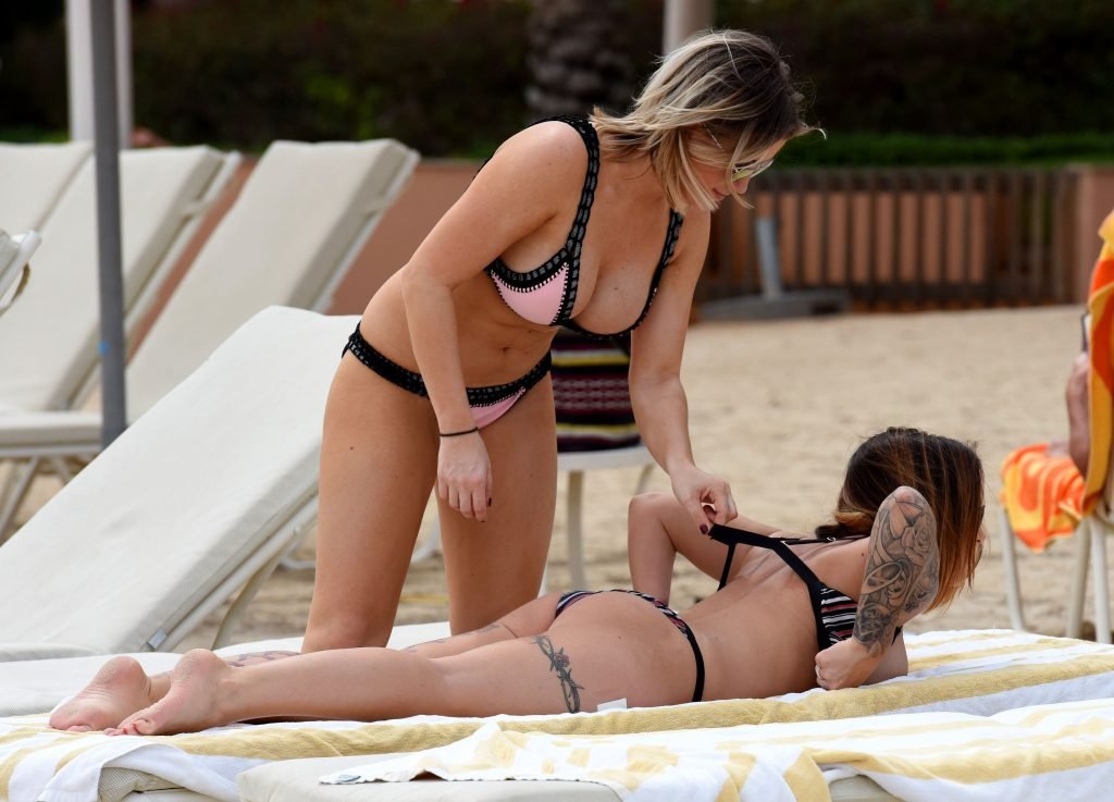 Gemma Massey prend un bain de soleil topless sur la plage à Los Angeles, 25/04/2017. Gemma Massey est un mannequin britannique et actrice porno. Âge : 32 ans.