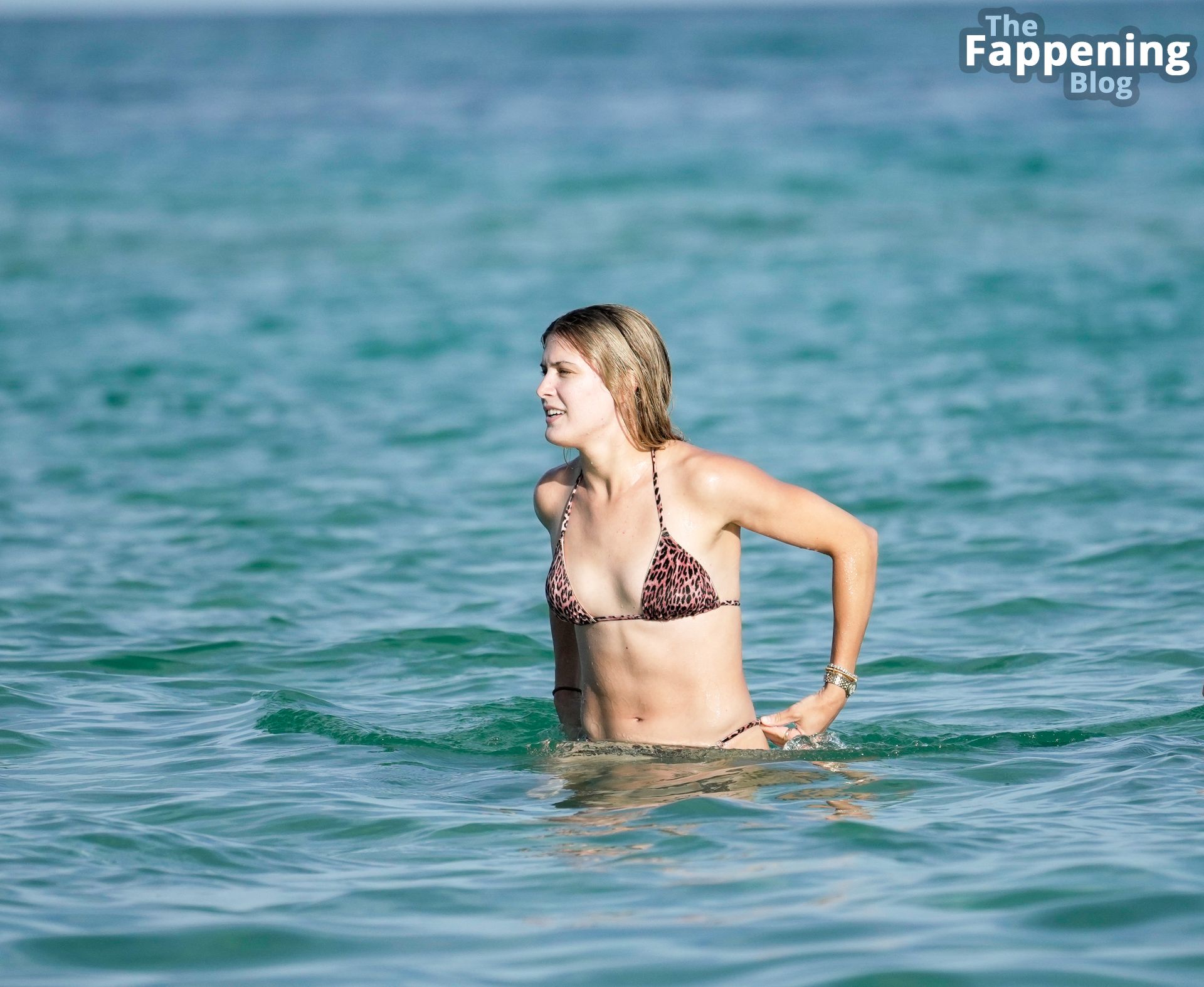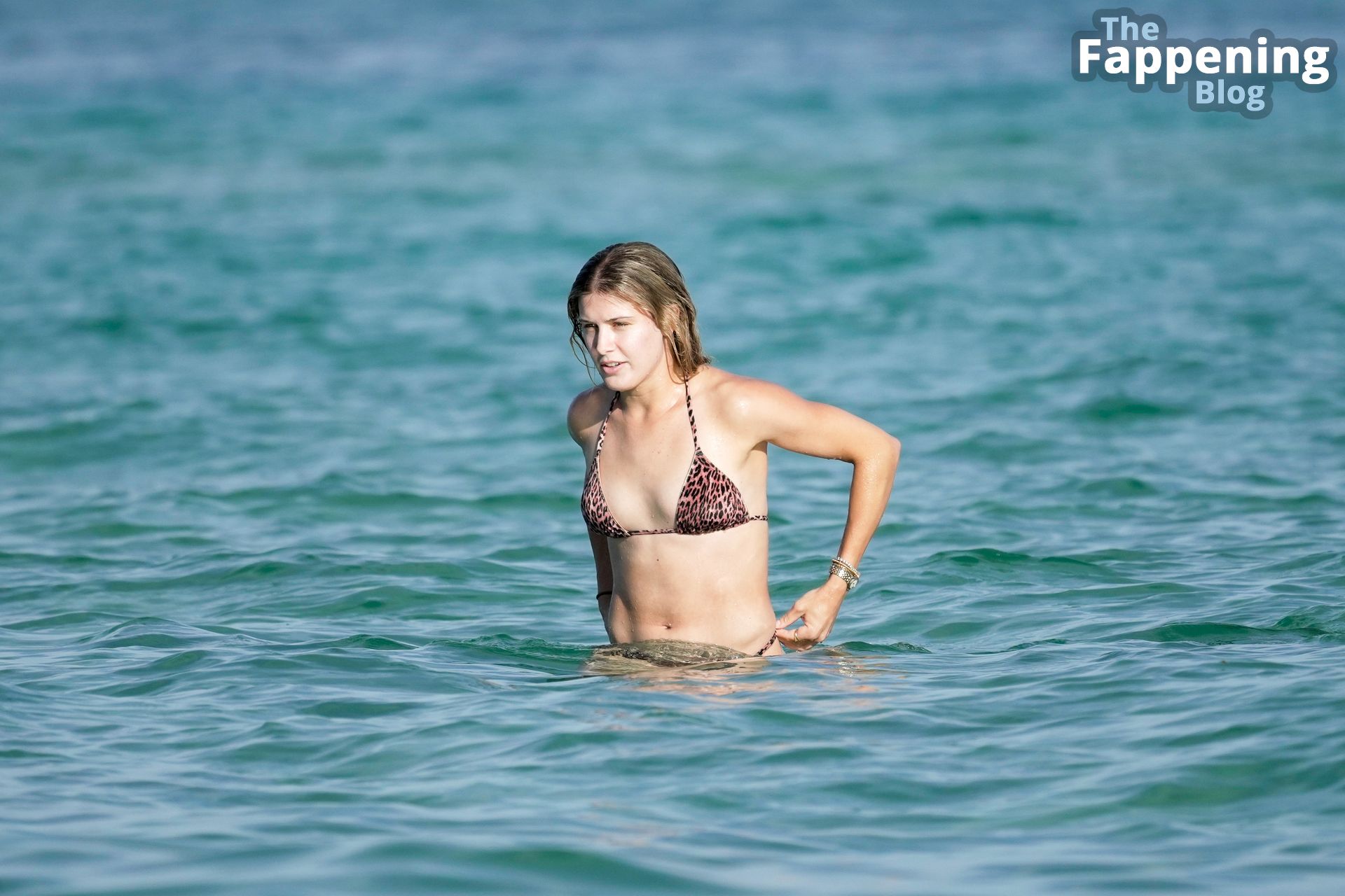La star du tennis et mannequin du Sports Illustrated Swimsuit Eugenie ‘Genie’ Bouchard porte un bikini à imprimé animal à la plage de Miami Beach, le 22/01/2023. Genie se détend à Miami après sa défaite à l’Open d’Australie.