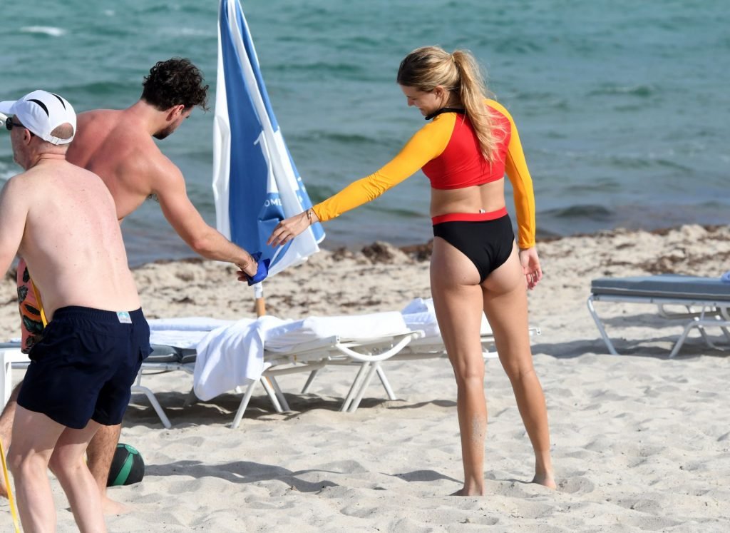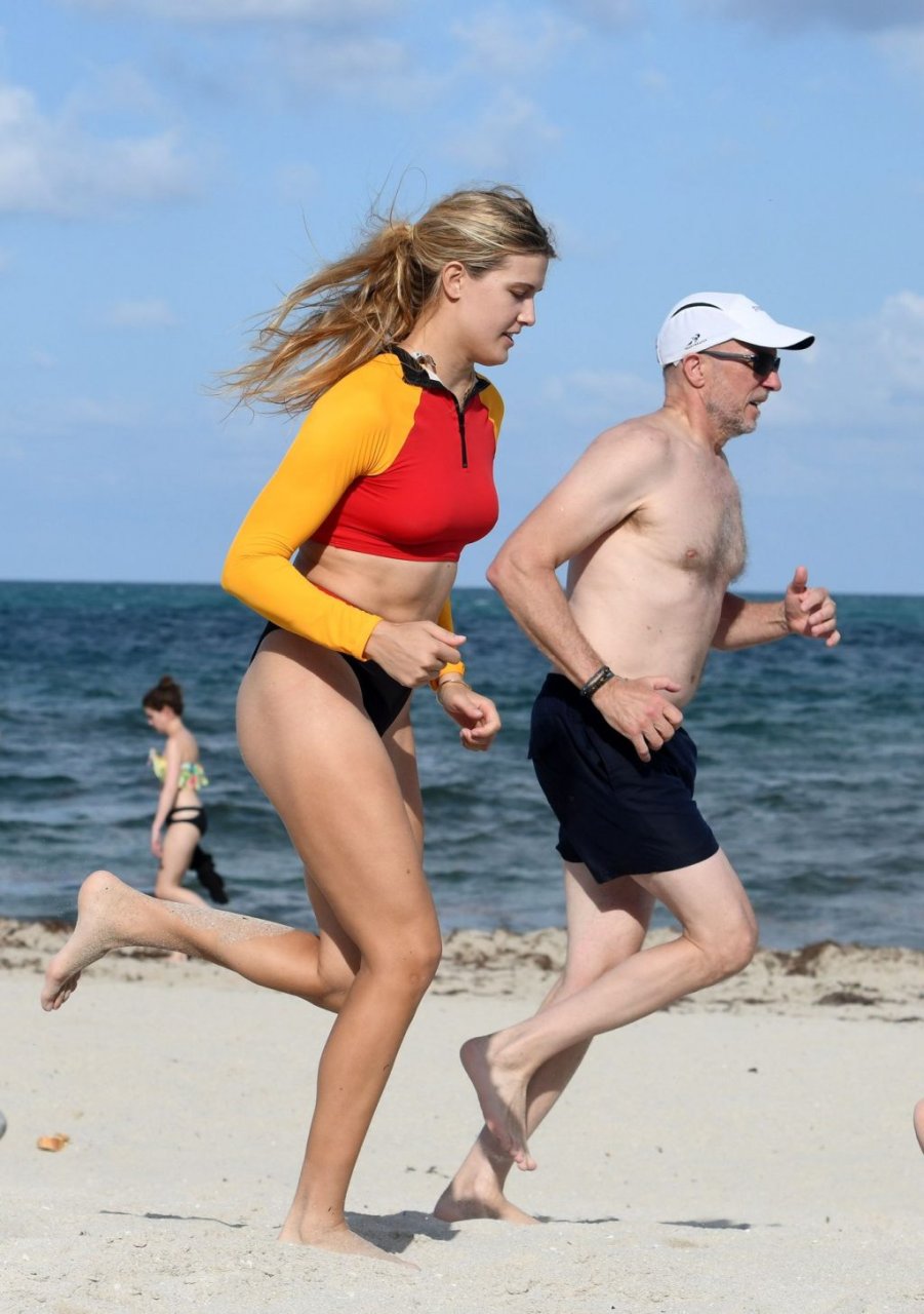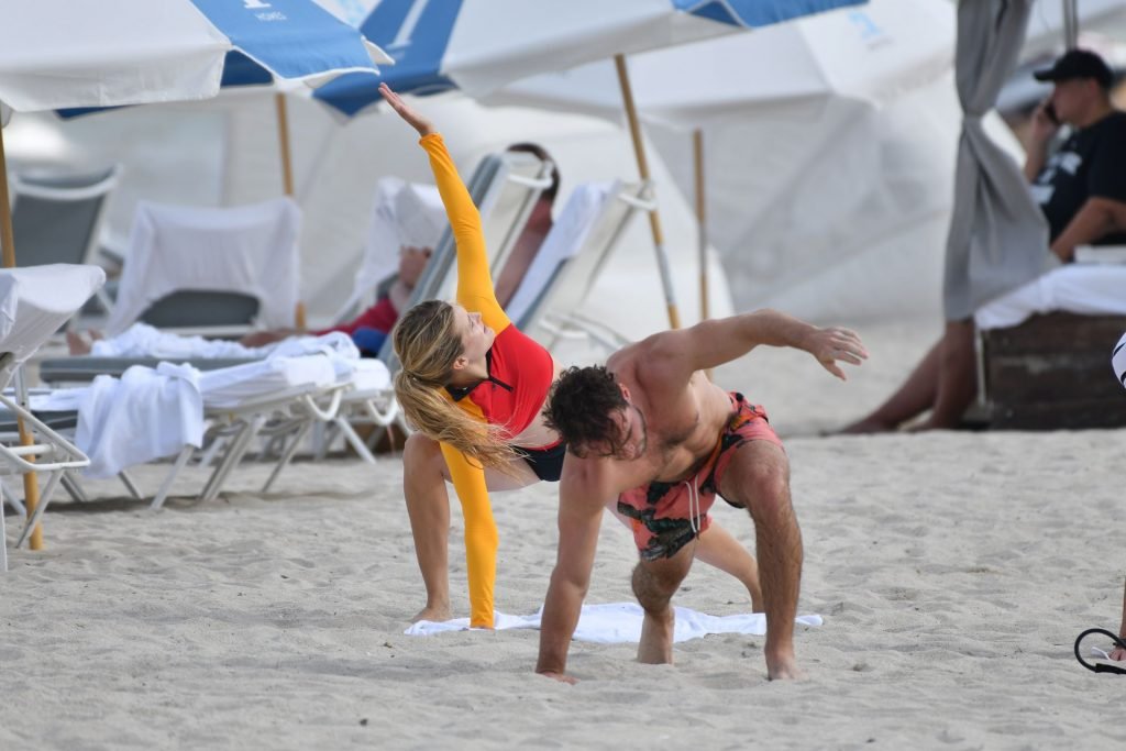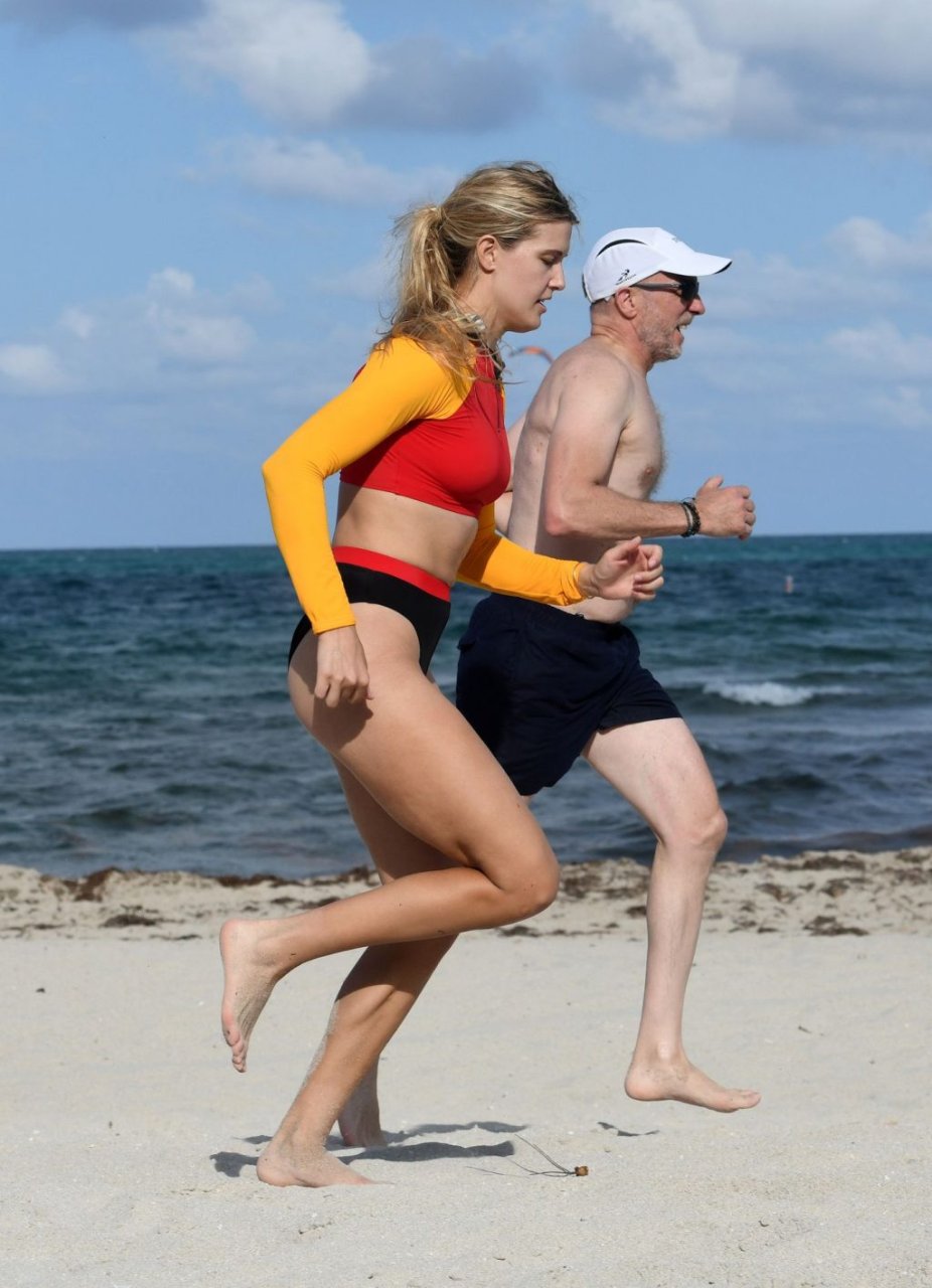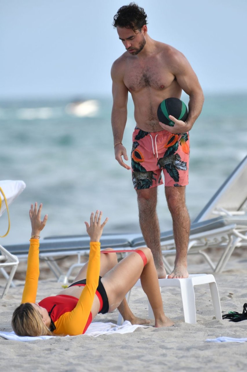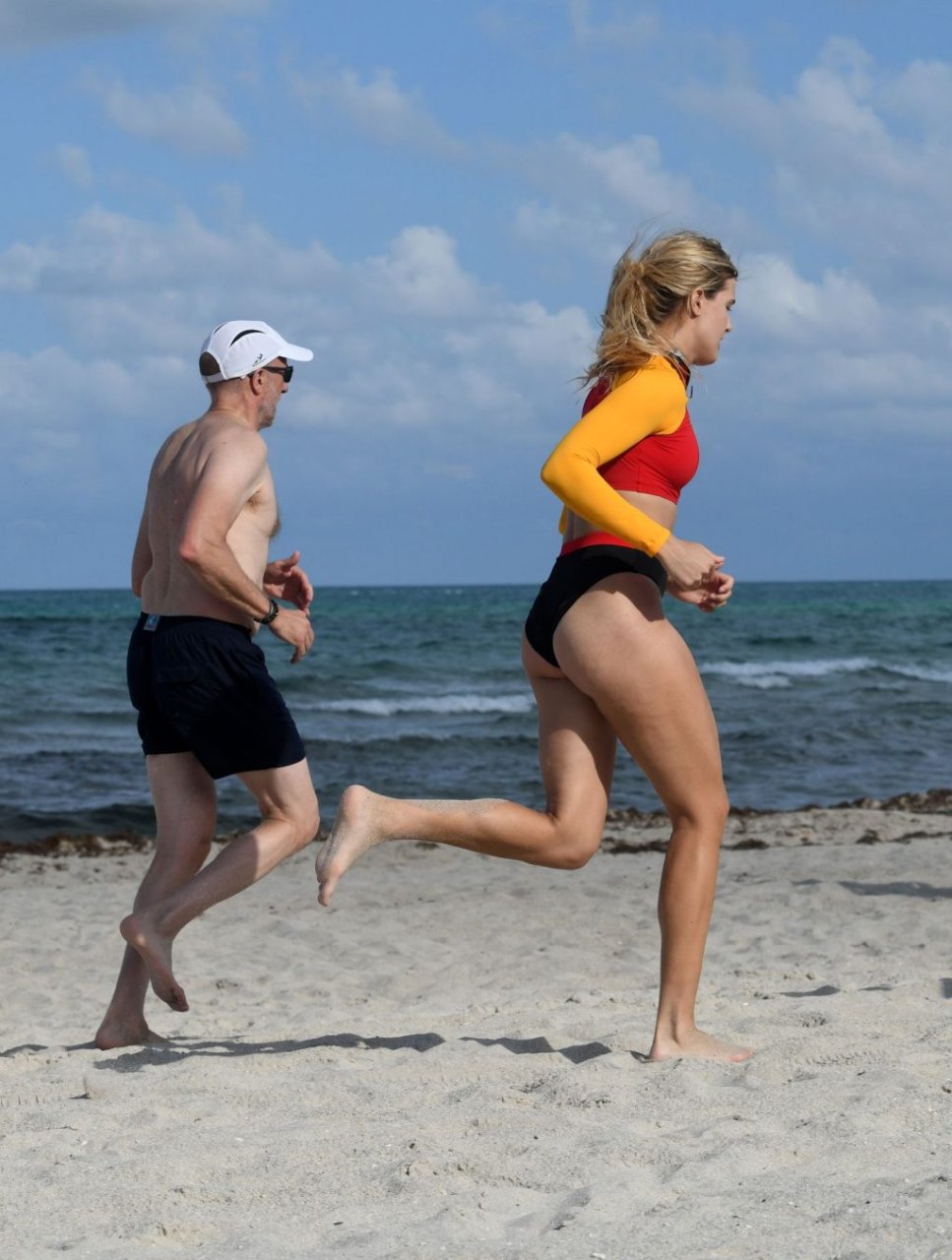 Eugenie Bouchard est mise à l’épreuve par son entraîneur personnel musclé alors qu’elle effectue un entraînement intense sur la plage avec son père Mike – Miami, 18/05/2019. La joueuse de tennis canadienne portait un haut de bikini à manches longues et un bas de bikini assorti, mettant en valeur sa silhouette incroyable alors qu’elle réalisait un entraînement varié avec des bandes de résistance et un ballon, son père Mike participant à l’action.
