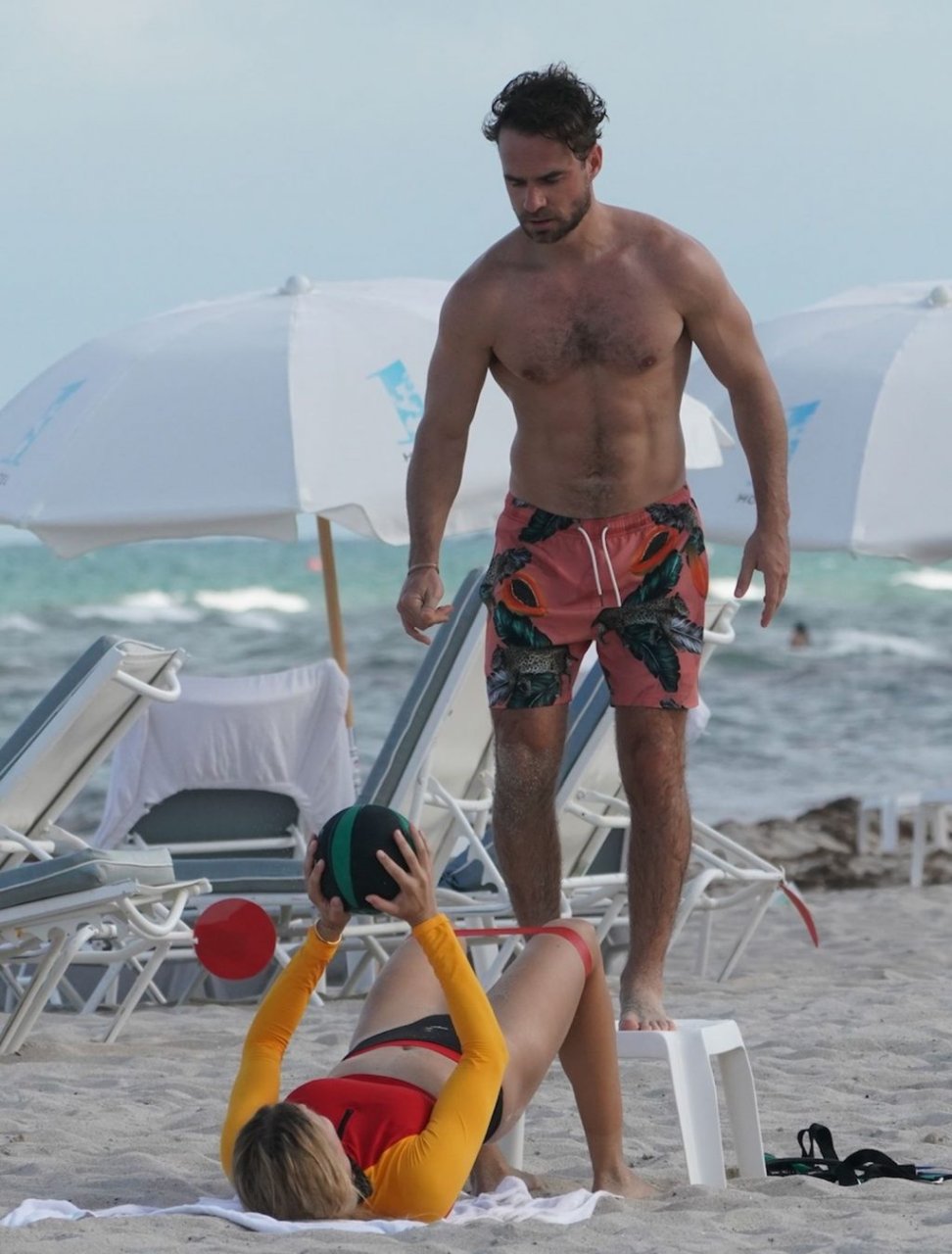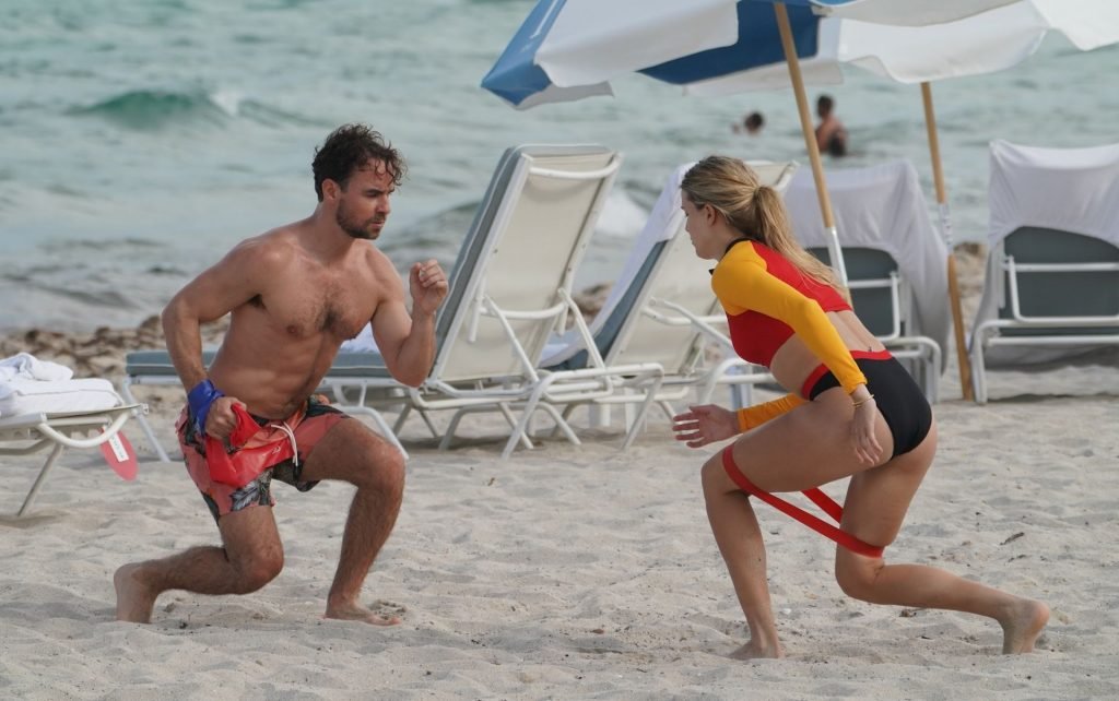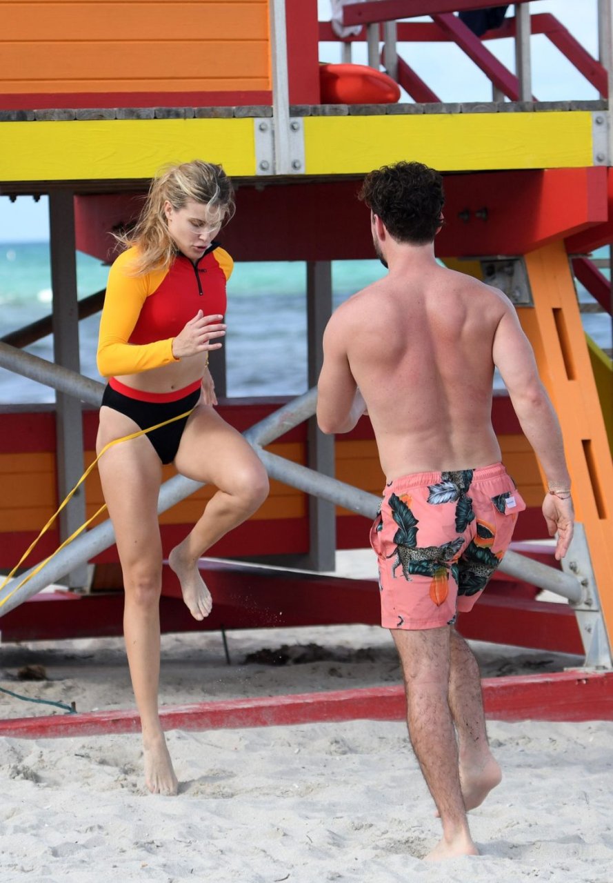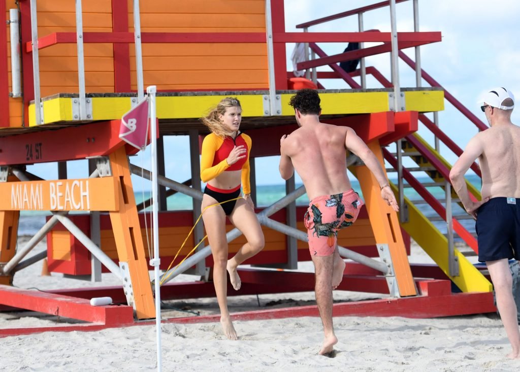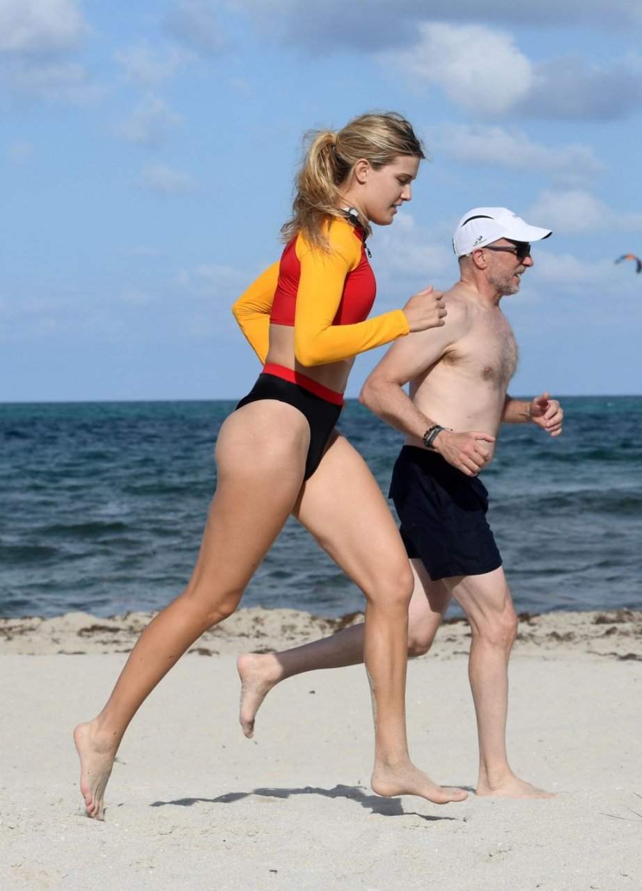 Eugenie Bouchard est mise à l’épreuve par son entraîneur personnel musclé alors qu’elle effectue un entraînement intense sur la plage avec son père Mike – Miami, 18/05/2019. La joueuse de tennis canadienne portait un haut de bikini à manches longues et un bas de bikini assorti, mettant en valeur sa silhouette incroyable alors qu’elle réalisait un entraînement varié avec des bandes de résistance et un ballon, son père Mike participant à l’action.