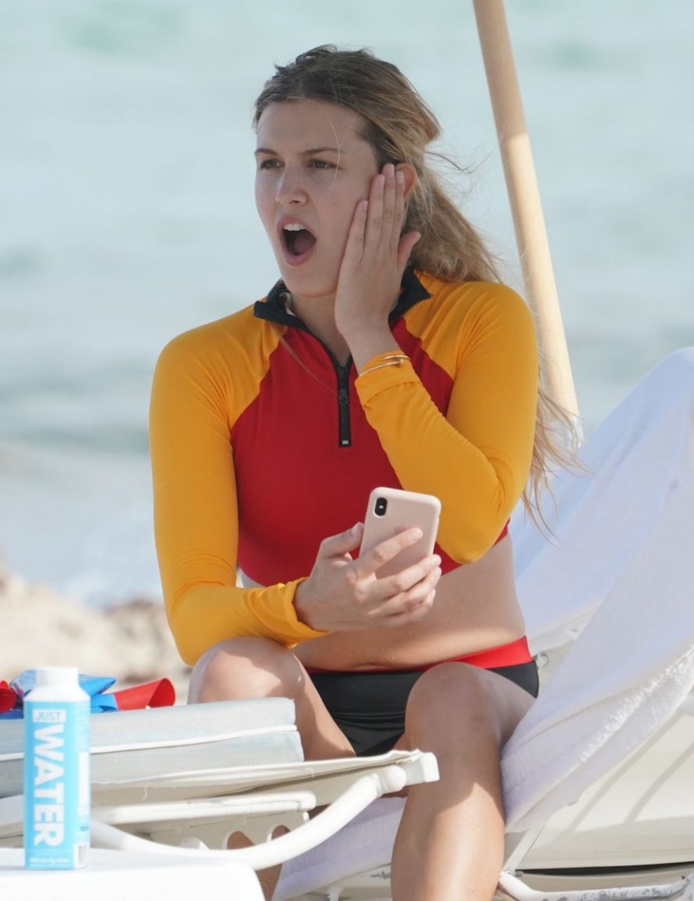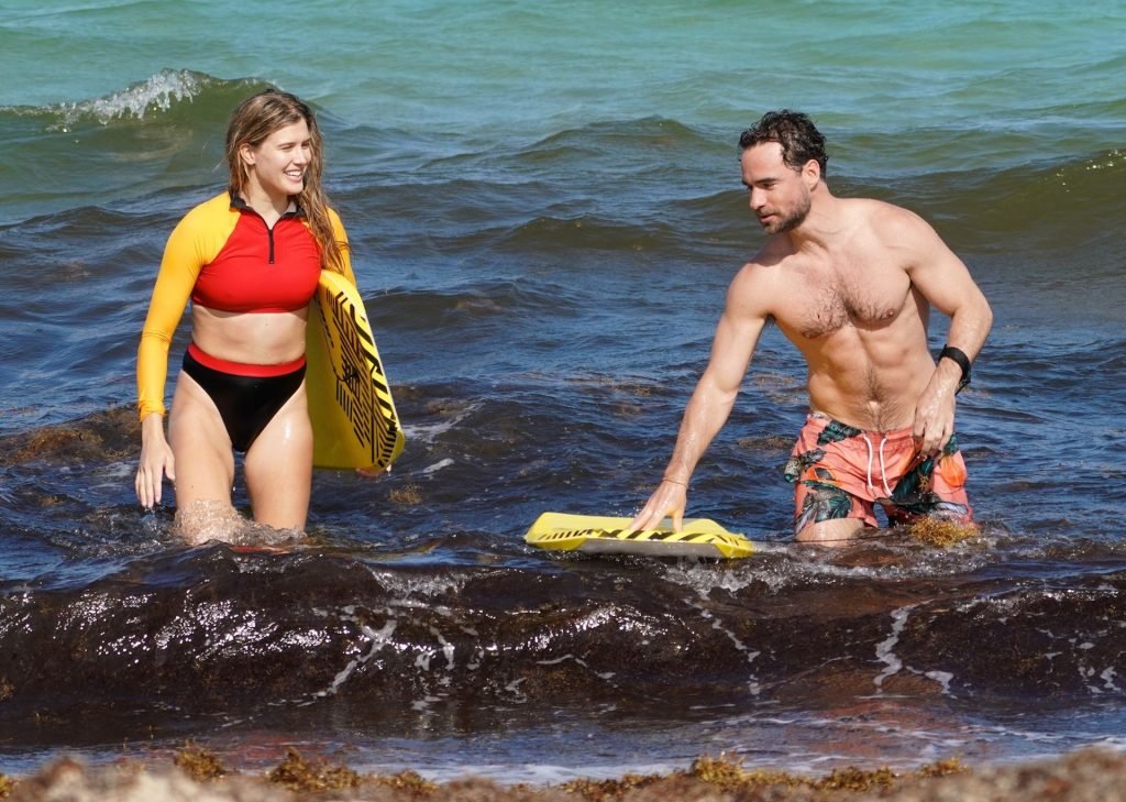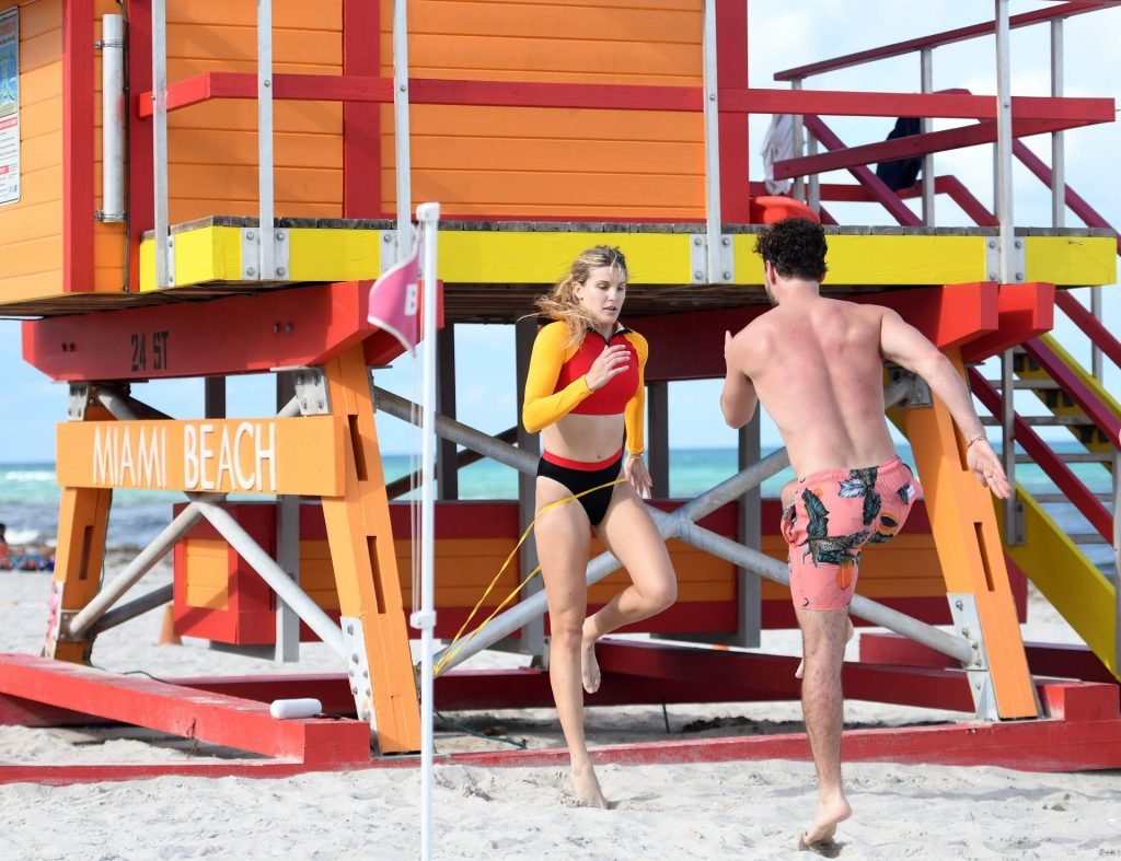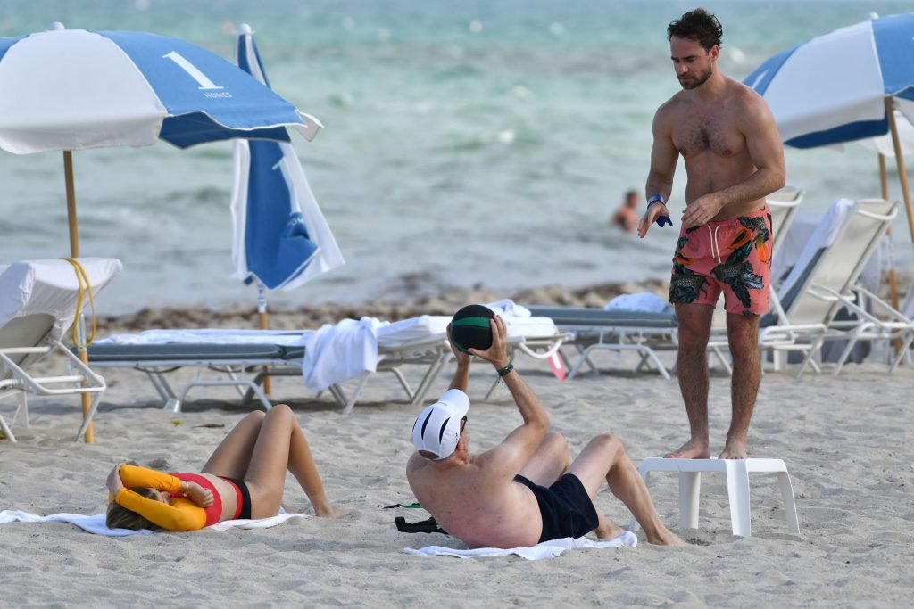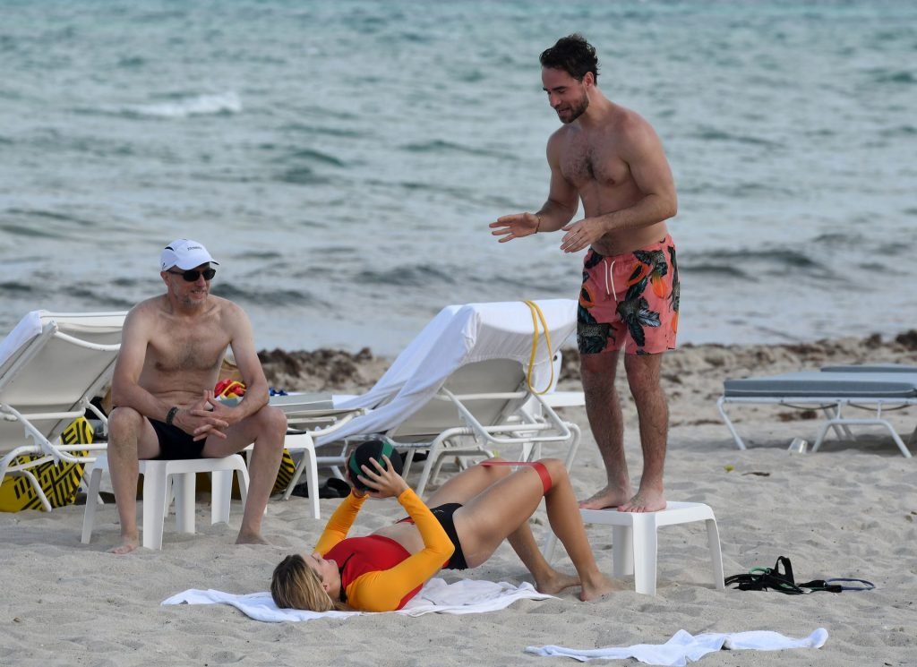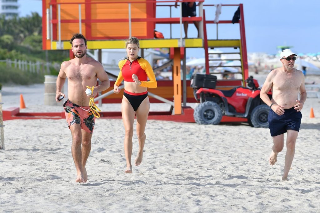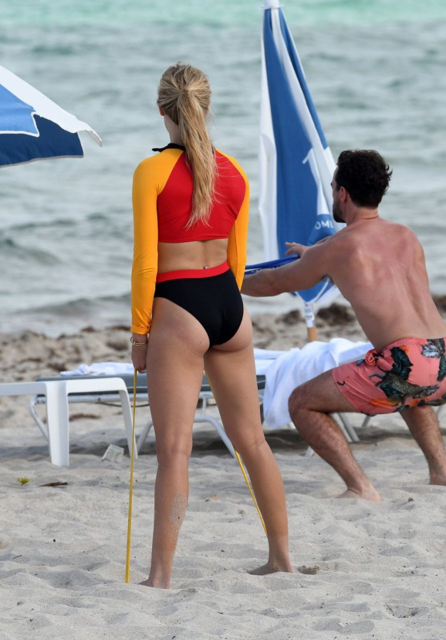 Eugenie Bouchard est mise à l’épreuve par son entraîneur personnel musclé alors qu’elle effectue un entraînement intense sur la plage avec son père Mike – Miami, 18/05/2019. La joueuse de tennis canadienne portait un haut de bikini à manches longues et un bas de bikini assorti, mettant en valeur sa silhouette incroyable alors qu’elle réalisait un entraînement varié avec des bandes de résistance et un ballon, son père Mike participant à l’action.