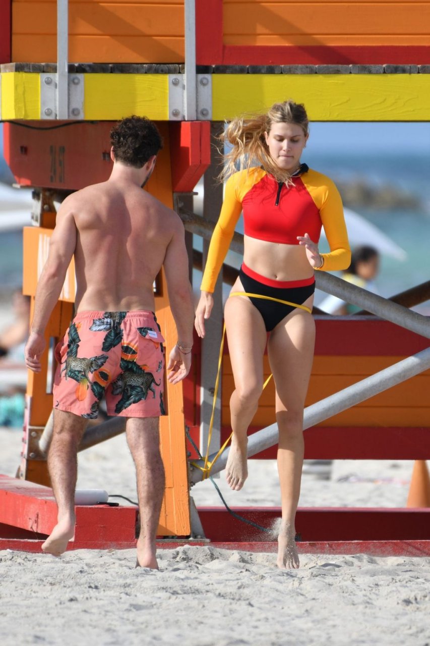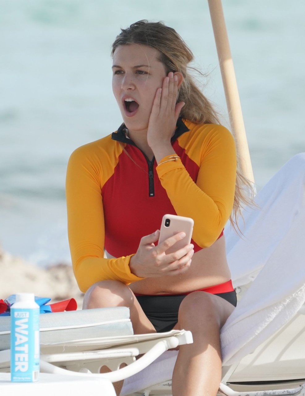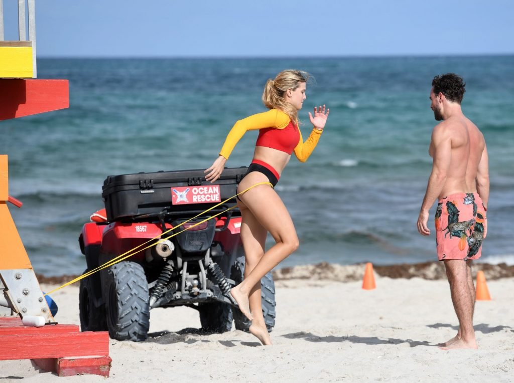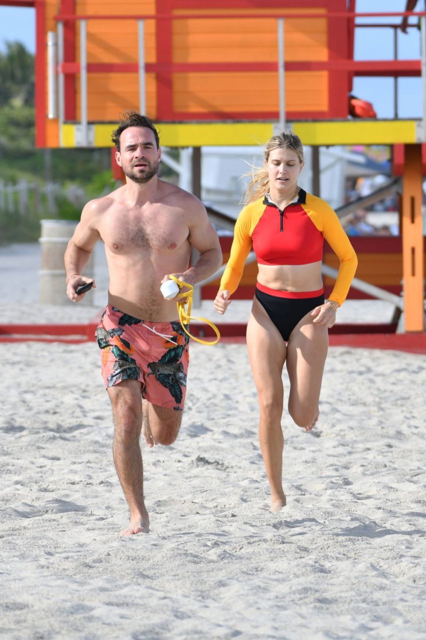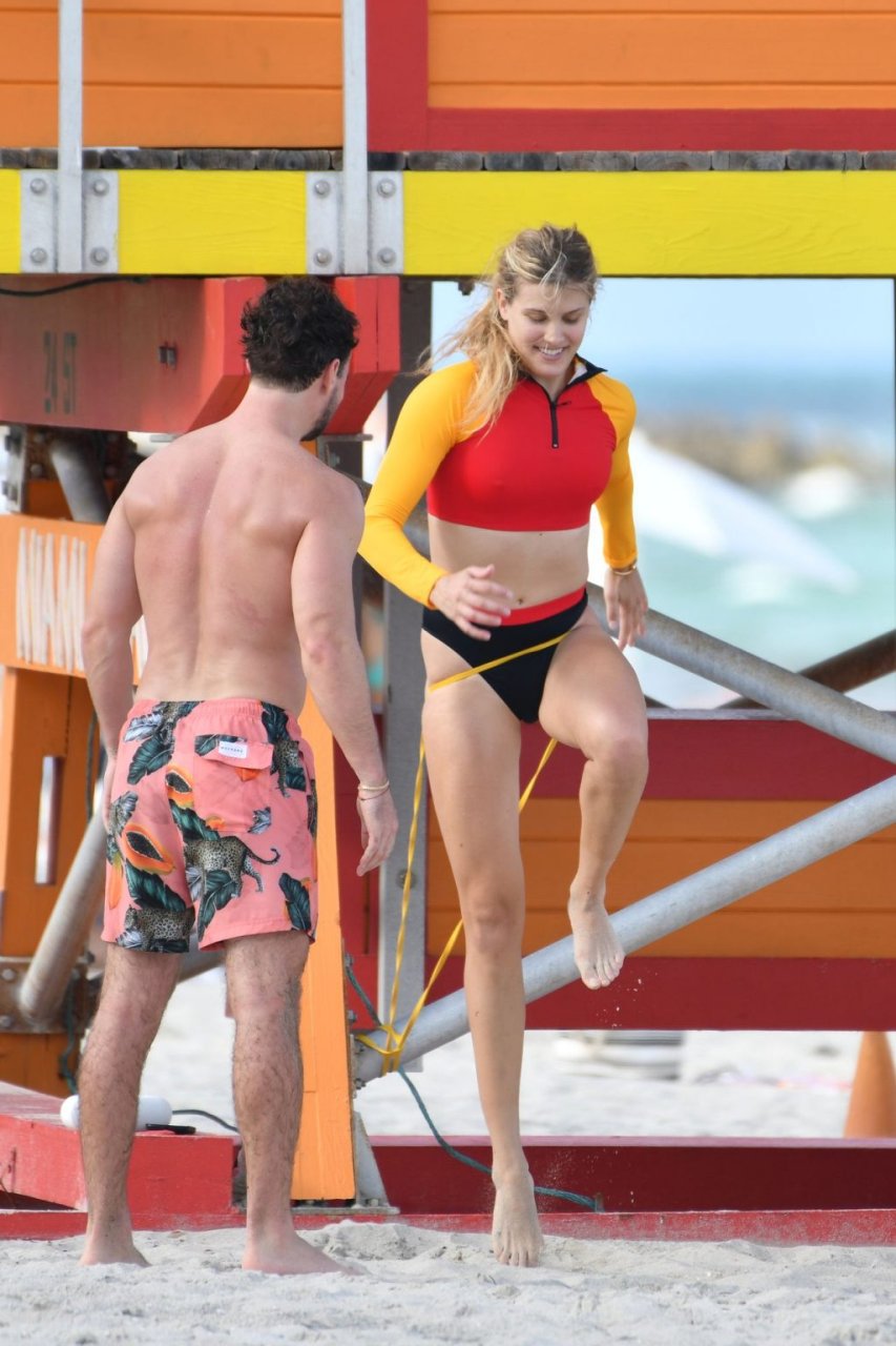 Eugenie Bouchard est mise à l’épreuve par son entraîneur personnel musclé alors qu’elle effectue un entraînement intense sur la plage avec son père Mike – Miami, 18/05/2019. La joueuse de tennis canadienne portait un haut de bikini à manches longues et un bas de bikini assorti, mettant en valeur sa silhouette incroyable alors qu’elle réalisait un entraînement varié avec des bandes de résistance et un ballon, son père Mike participant à l’action.