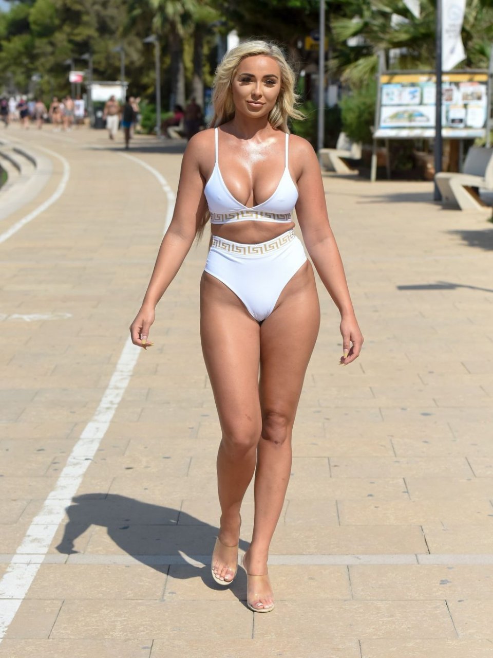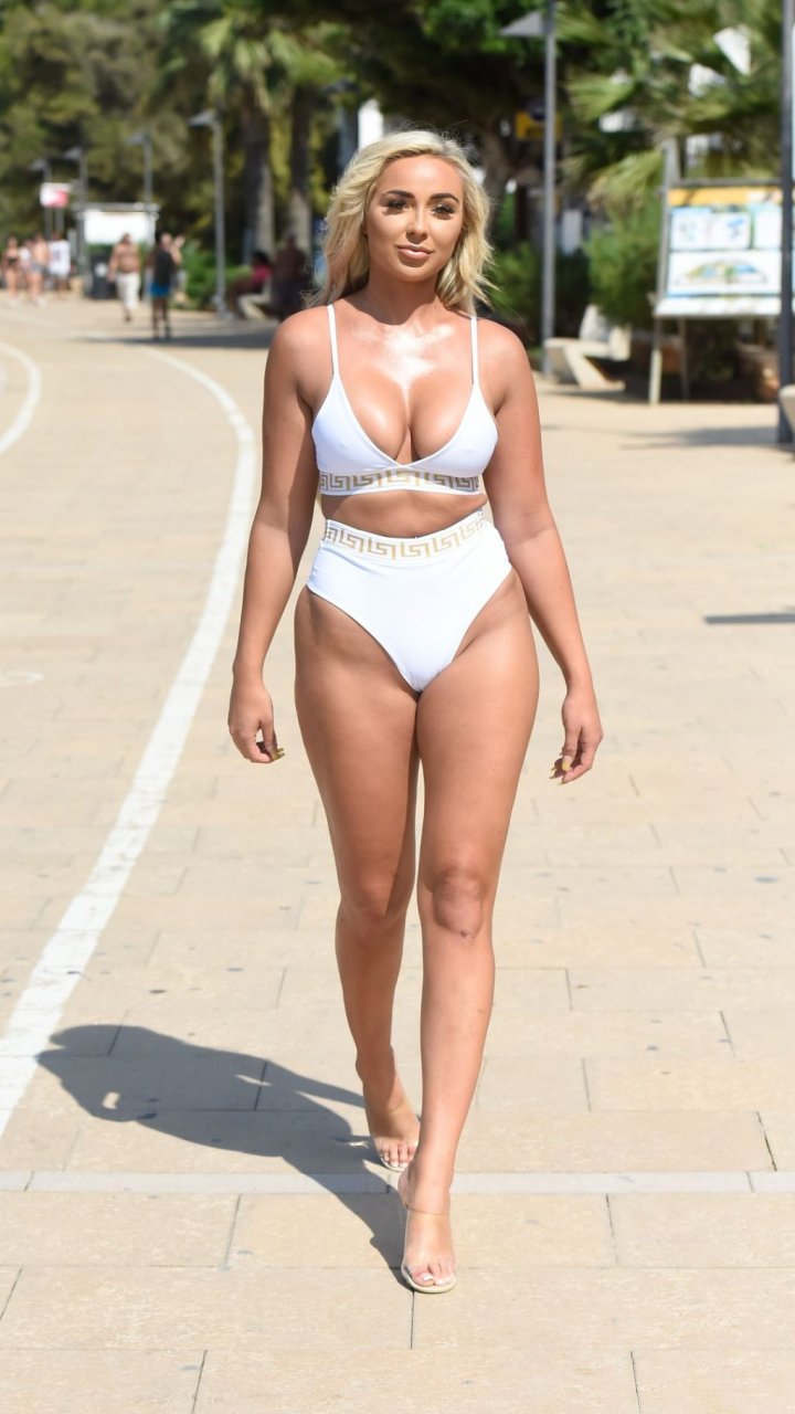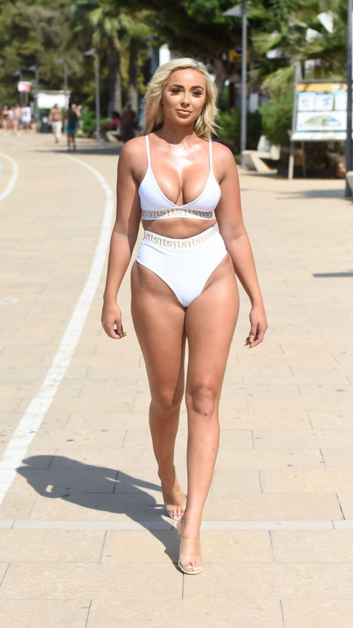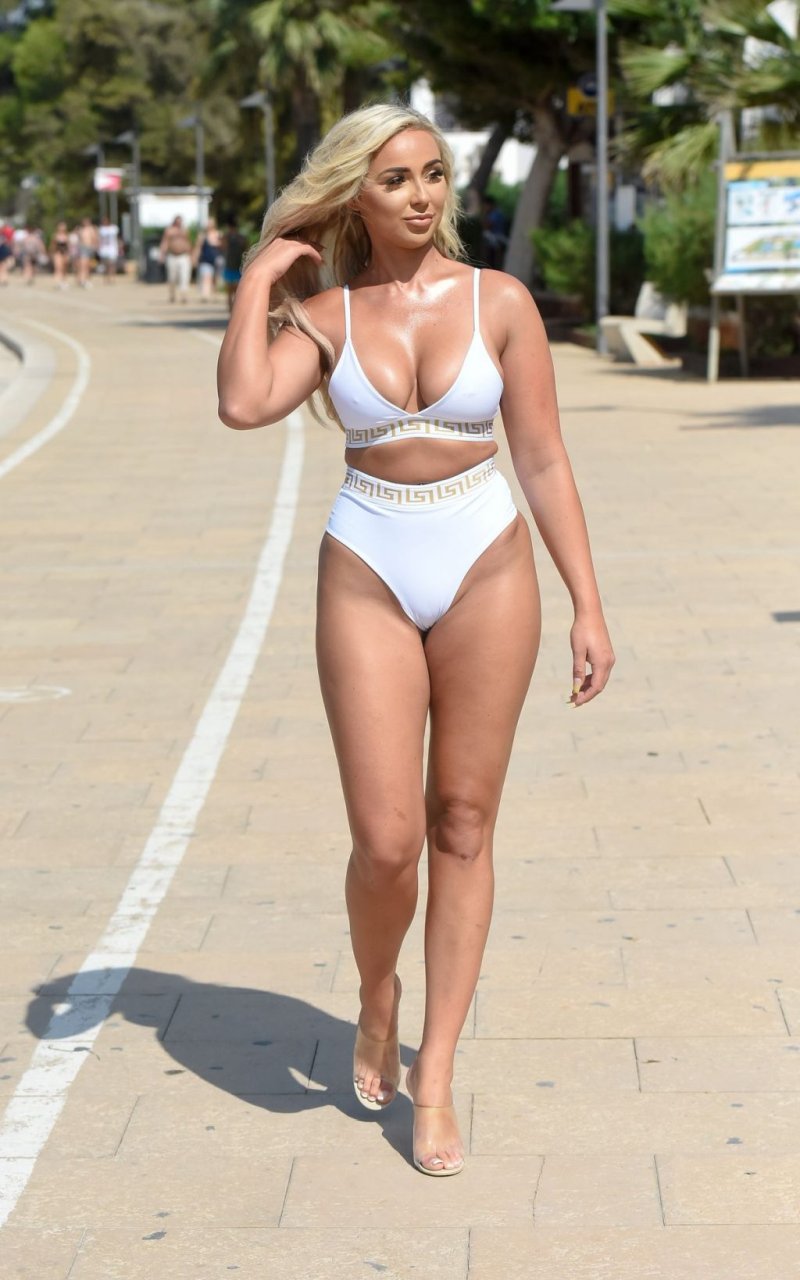 La star de “Survival of the Fittest” Georgia Cole sort après avoir fait la fête avec l’ex de Georgia Steel, Sam Bird. Photographiée ici lors de son 27e anniversaire en bikini blanc alors qu’elle arrive à O Beach Ibiza, le 18/09/2019.