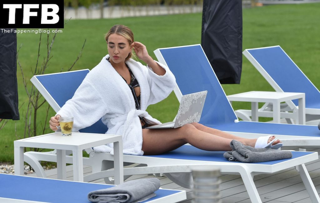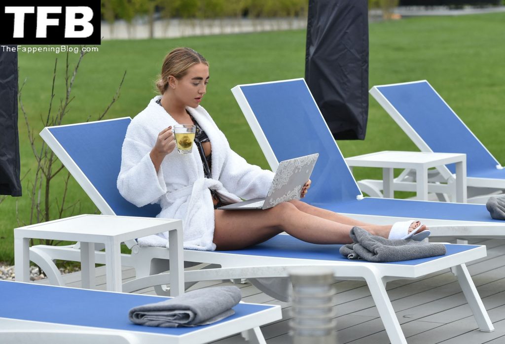 “Love Island” star Georgia Harrison est vue en train de profiter d’une journée au spa Glass House Retreat dans l’Essex, 10/05/2021.