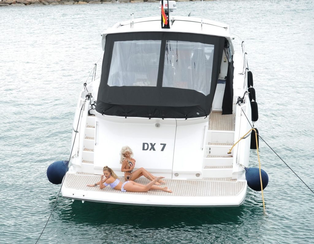 Les mannequins glamour anglaises et anciennes stars de la télé-réalité ‘Love Island’, Georgia Harrison et Hannah Elizabeth, ont été aperçues portant des bikinis sexy lors d’une séance photo sur un bateau en Espagne, le 23/08/2017.
