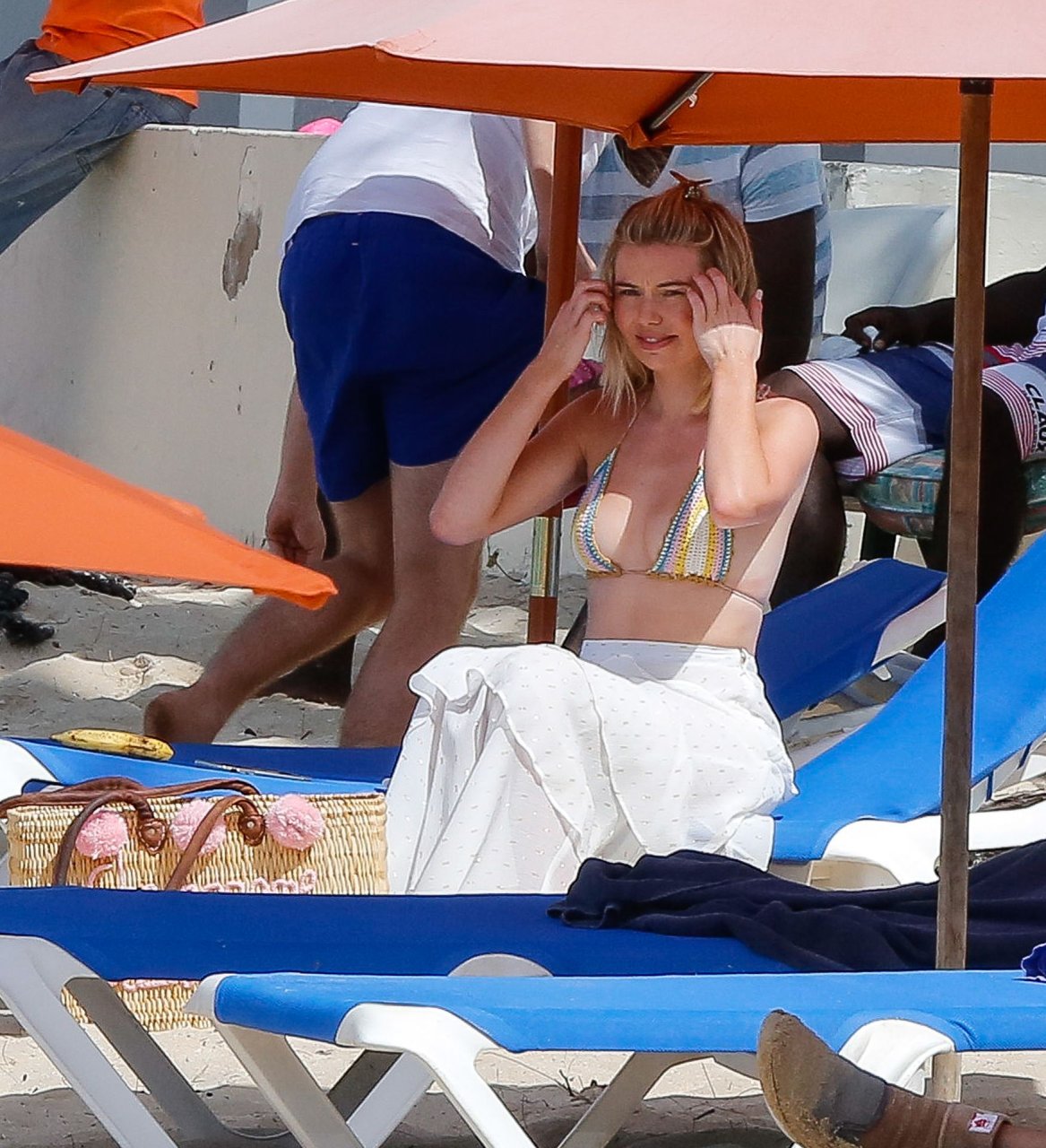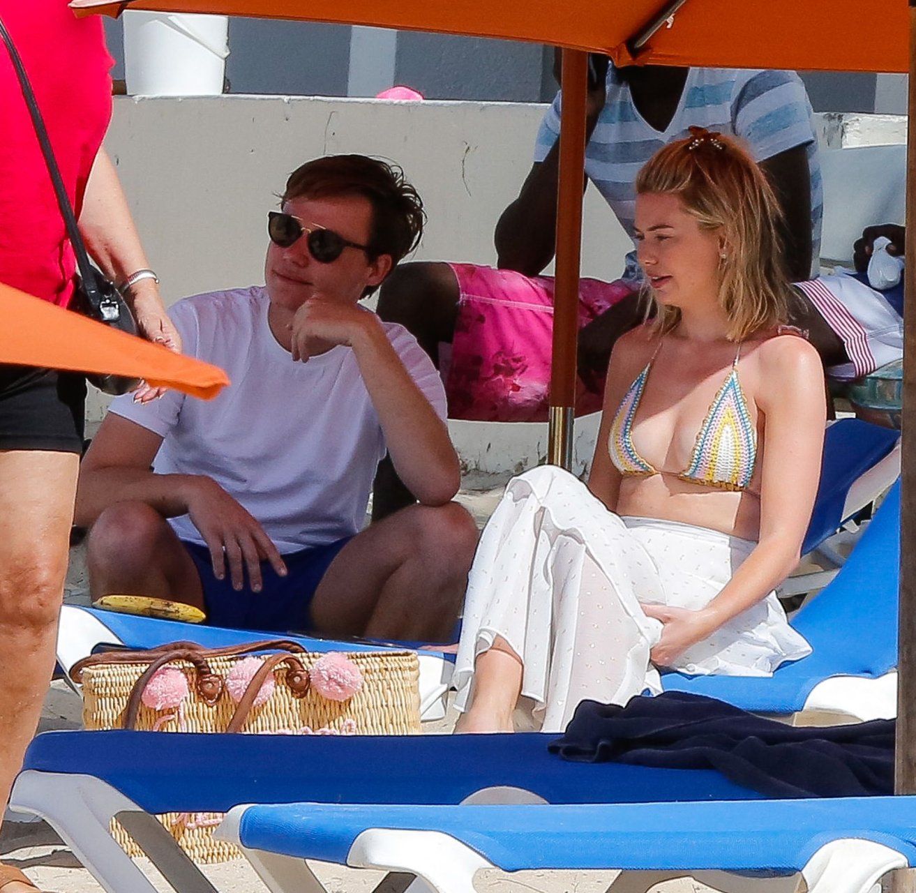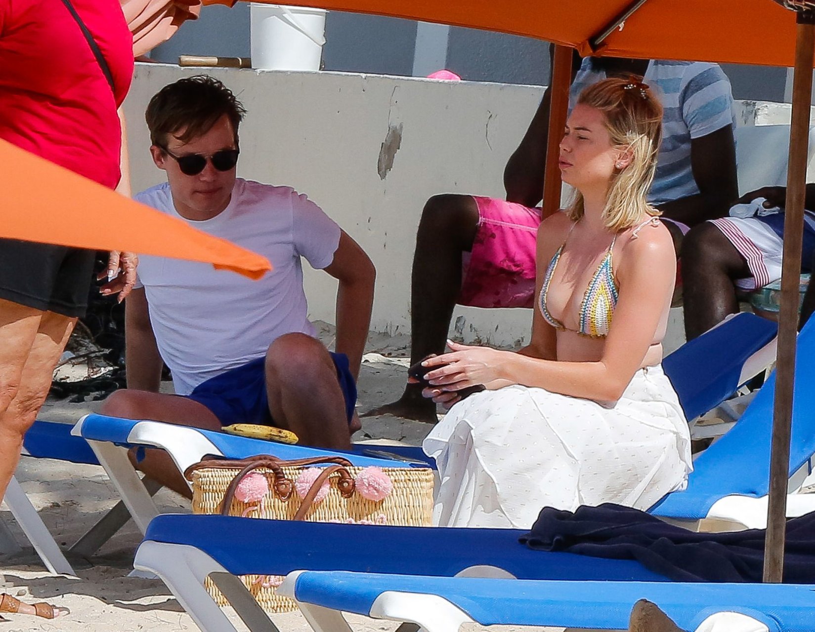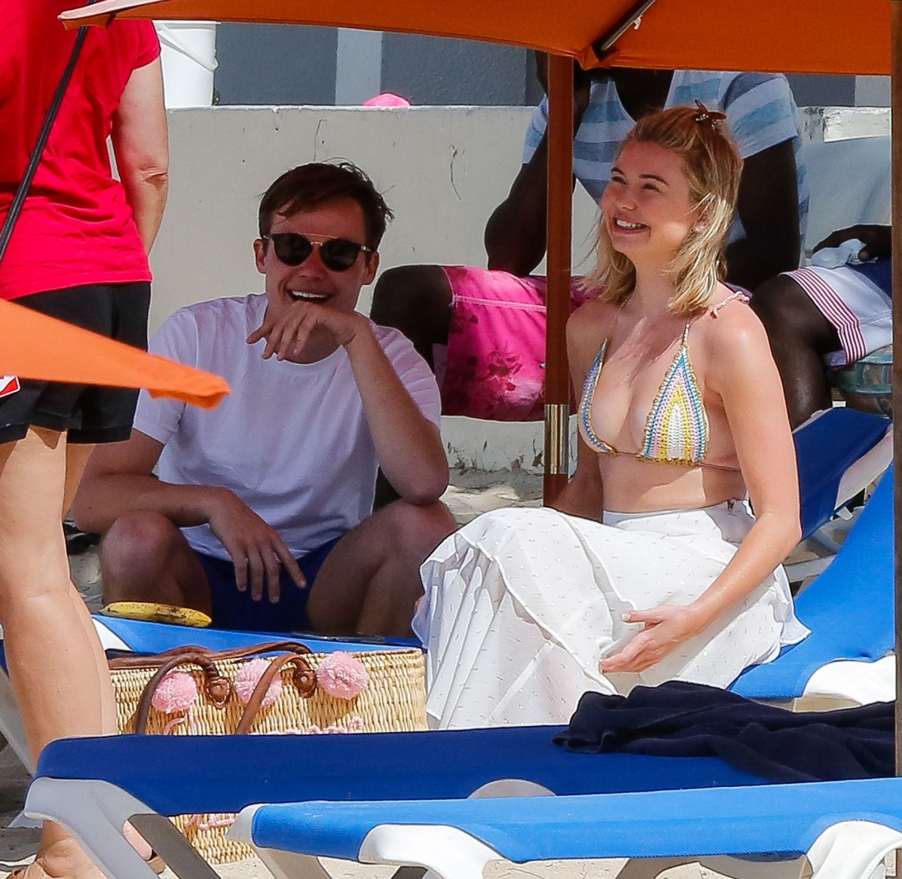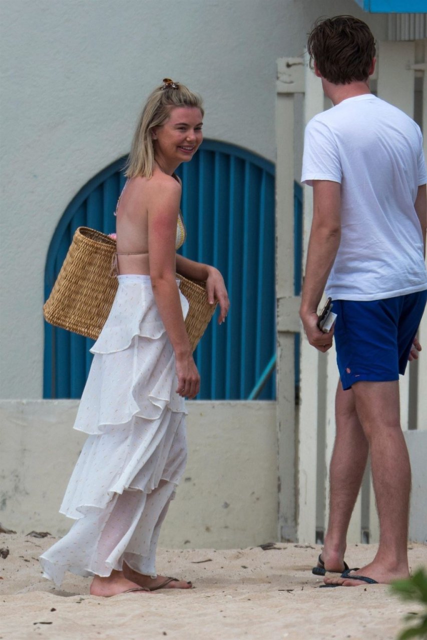 Blonde sexy Georgia “Toff” Toffolo, Reine de la Jungle, est aperçue sur la plage en haut de bikini et jupe fluide lors de ses vacances à la Barbade, 01/11/2019.