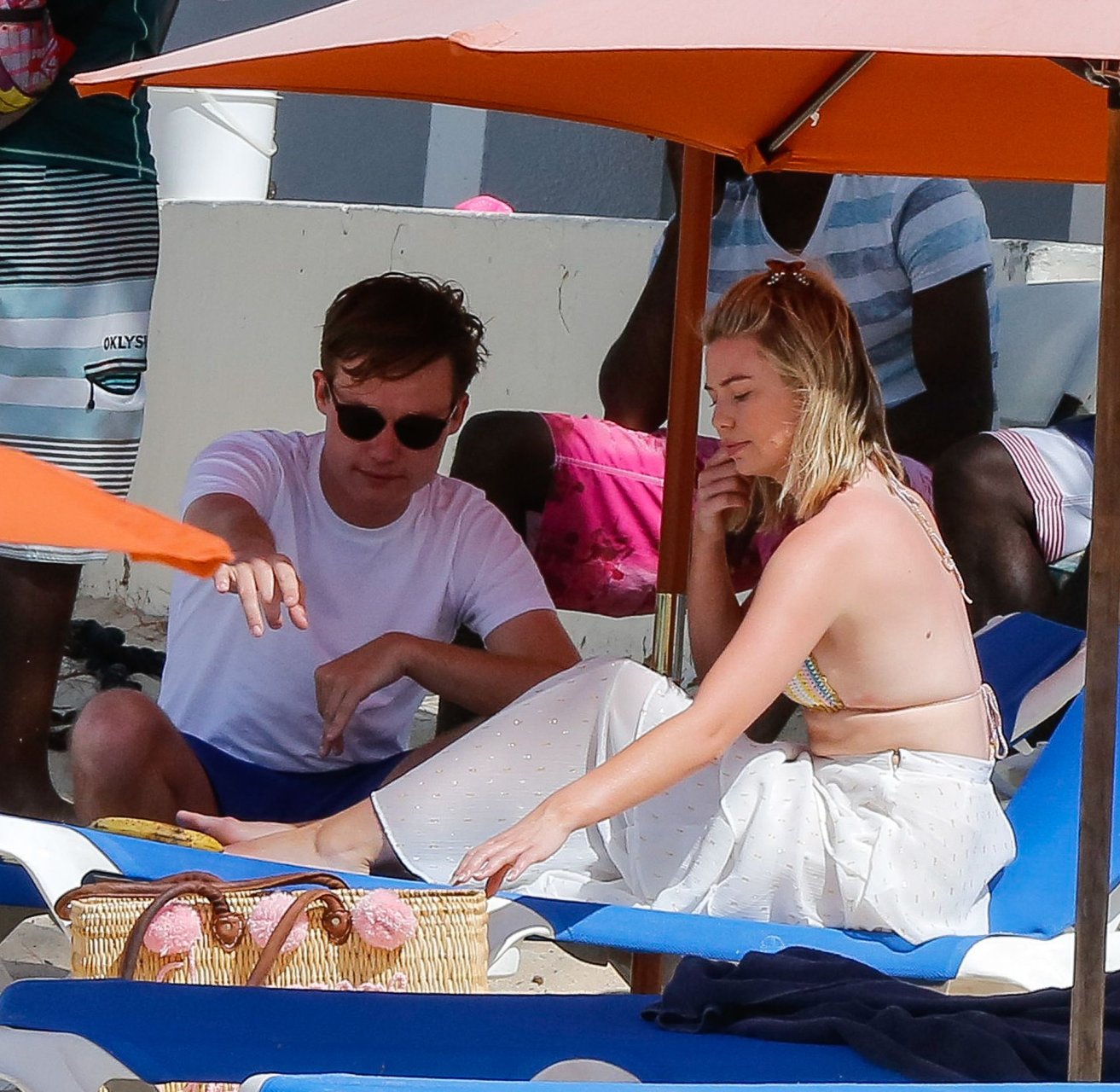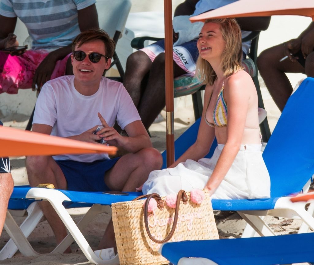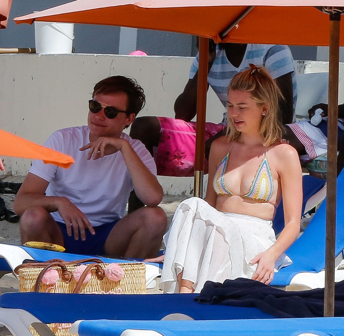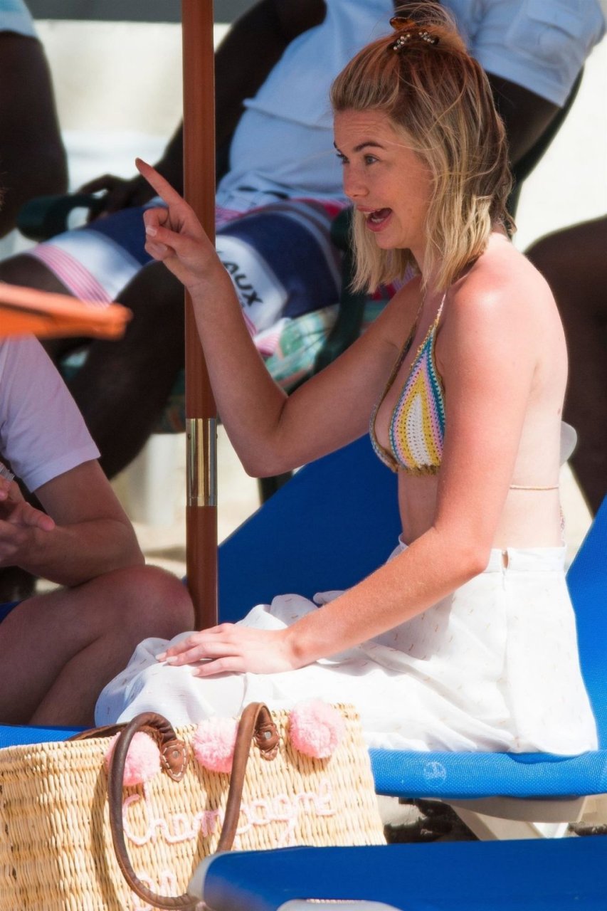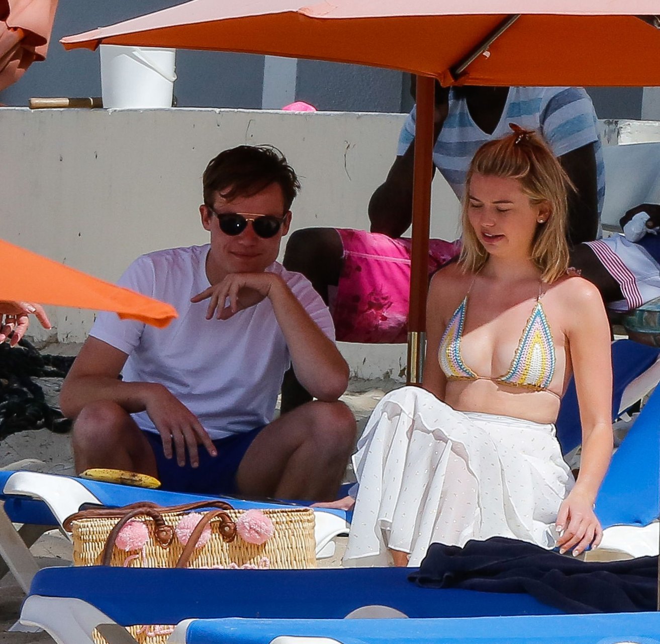 Blonde sexy Georgia “Toff” Toffolo, Reine de la Jungle, est aperçue sur la plage en haut de bikini et jupe fluide lors de ses vacances à la Barbade, 01/11/2019.