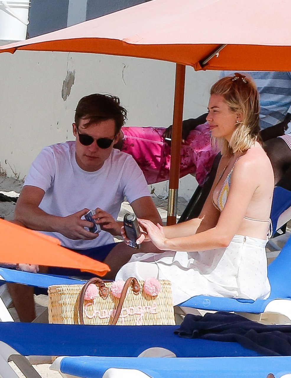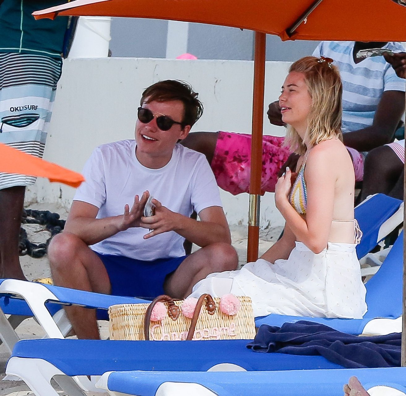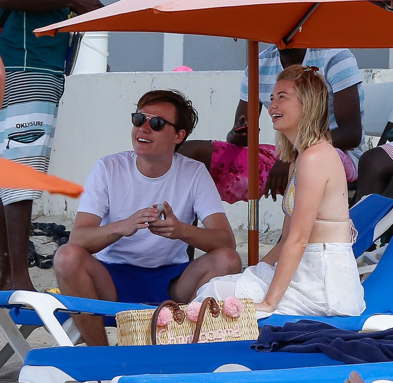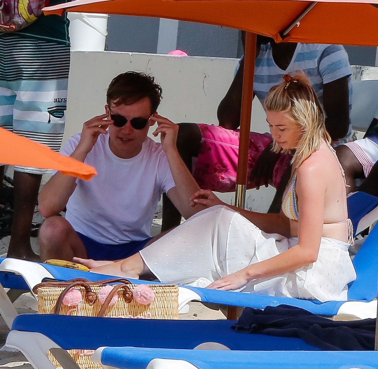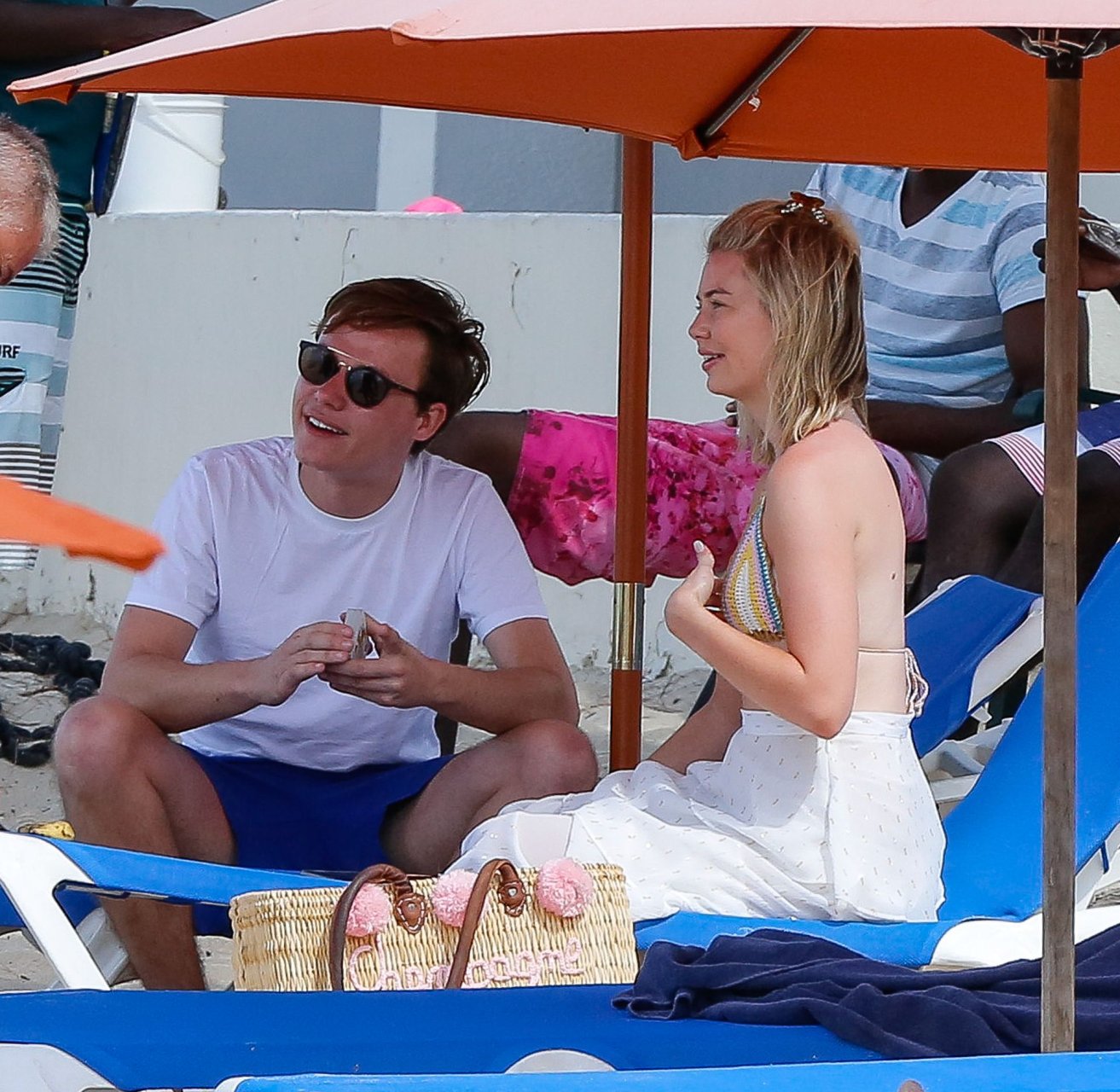 Blonde sexy Georgia “Toff” Toffolo, Reine de la Jungle, est aperçue sur la plage en haut de bikini et jupe fluide lors de ses vacances à la Barbade, 01/11/2019.