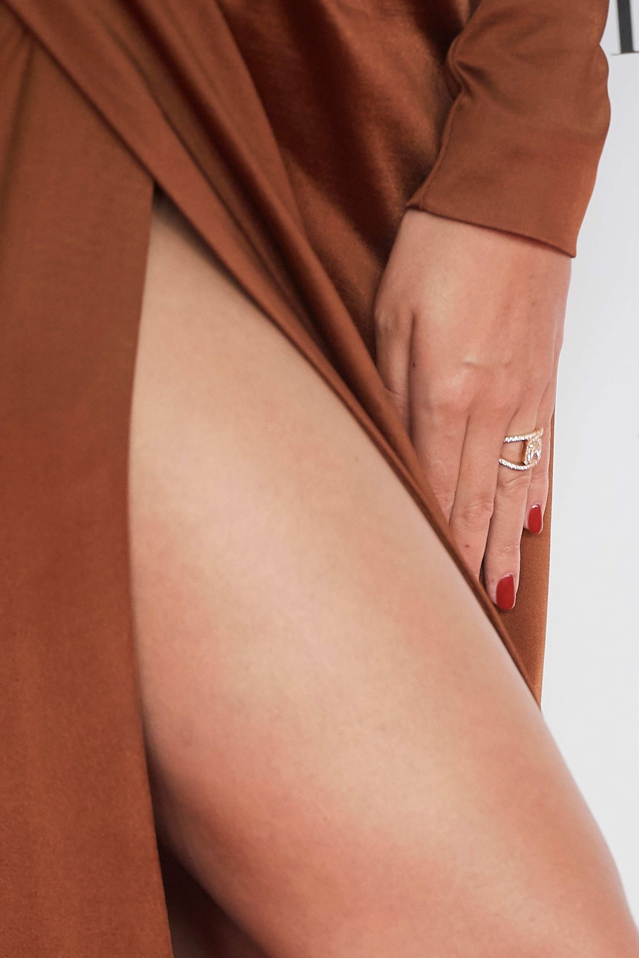 Georgina Rodriguez a été vue lors du Gala de charité ELLE 2019 pour collecter des fonds contre le cancer à l’hôtel Intercontinental de Madrid, en Espagne, le 30/05/2019. Le mannequin argentin de 25 ans a exhibé ses jambes sexy, un joli décolleté et une culotte noire en posant sur le tapis rouge dans une robe marron.