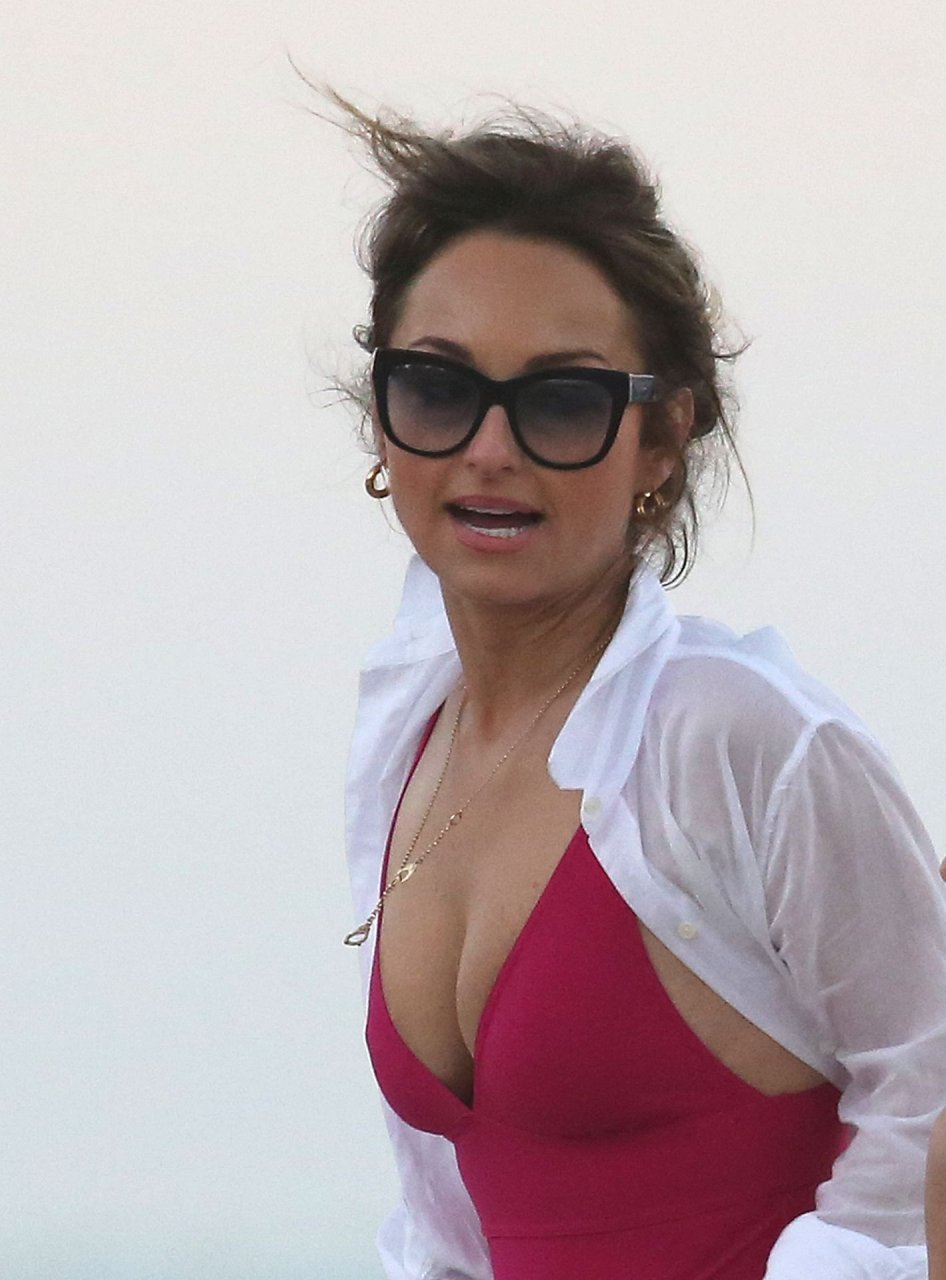 La chef Giada De Laurentiis porte un maillot de bain rose alors qu’elle se détend sur la plage à Miami, 20/02/2019.