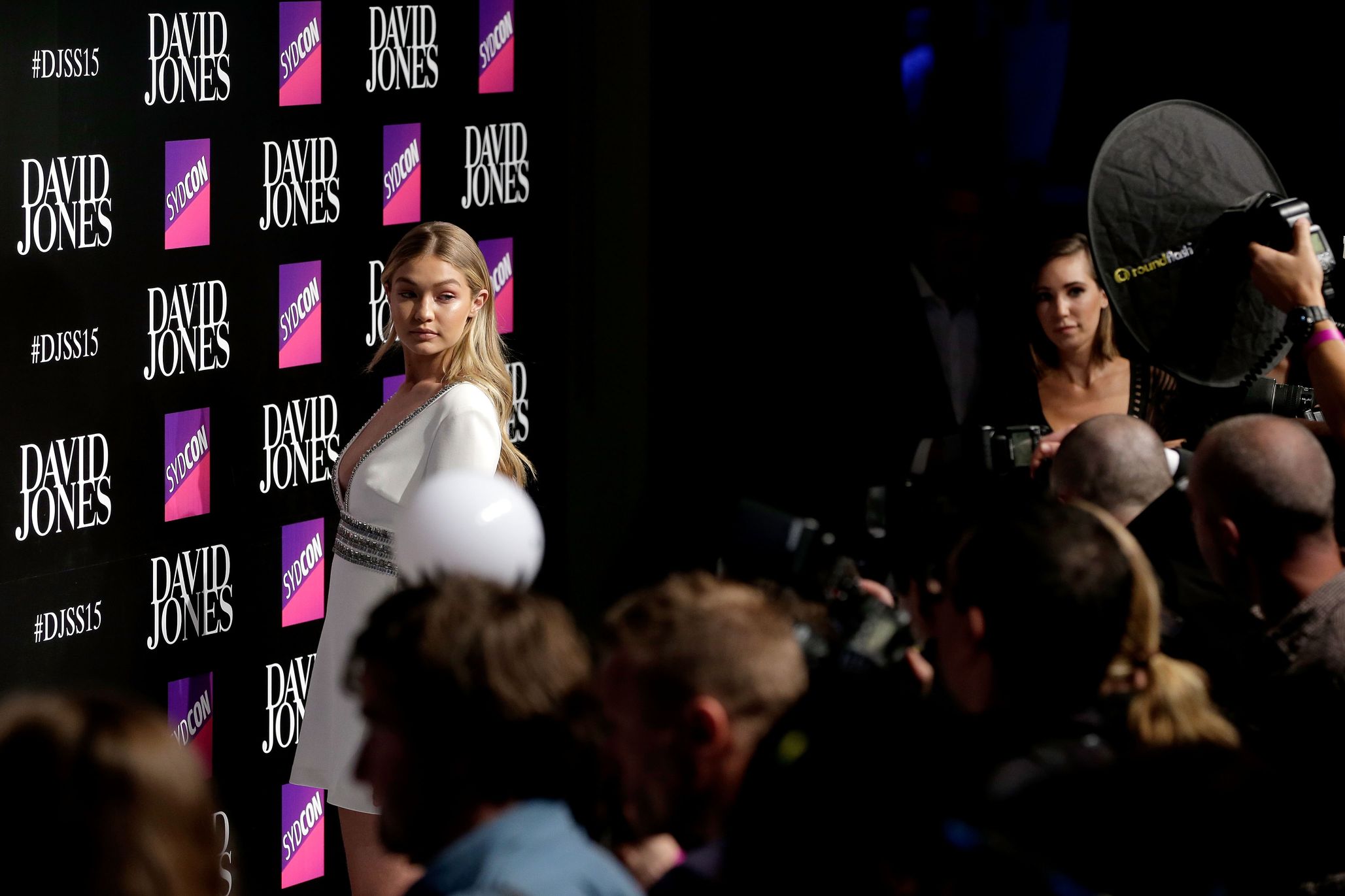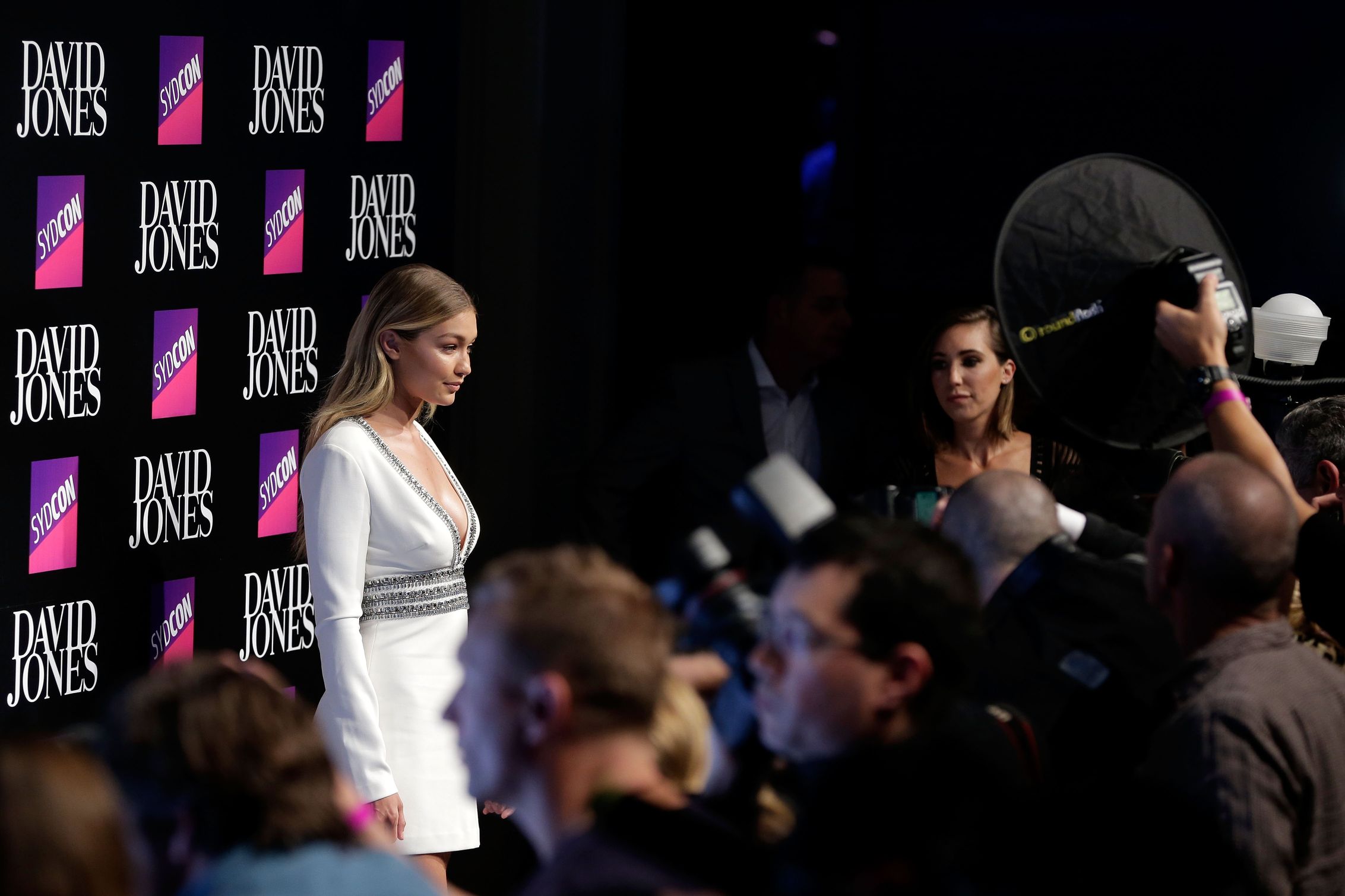 Nouvelles photos sexy de Gigi Hadid – Lancement de la mode David Jones Printemps Été 2015 à Sydney le 8/5/15. Super décolleté et petite vue sur la culotte. Gigi Hadid est un mannequin de mode américain et une personnalité de la télévision. Âge : 20
