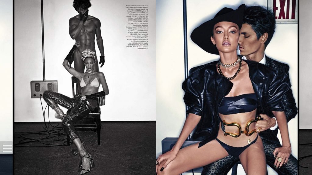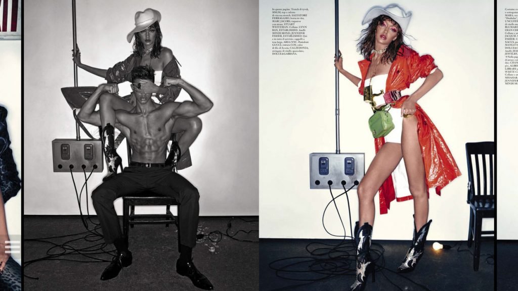 Gigi Hadid (23 ans) photographiée par Steven Klein pour Vogue Italia (mai 2018). Gigi s’est excusée d’être « trop noire » sur la couverture du magazine.
