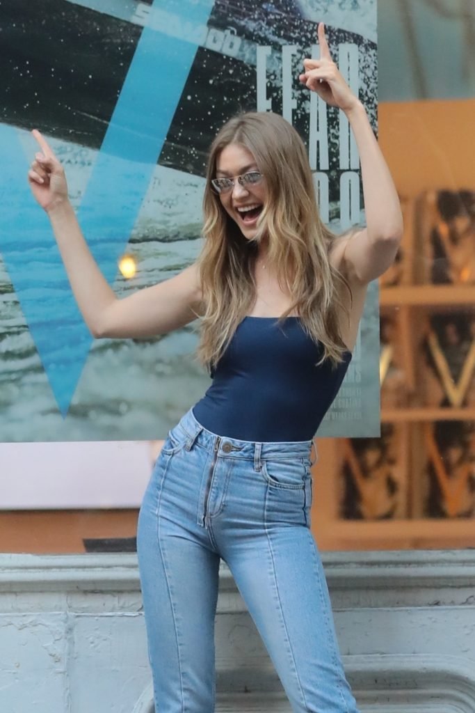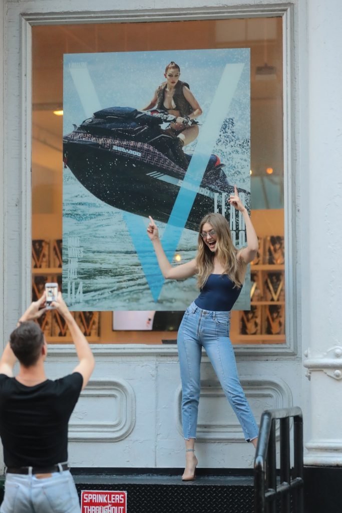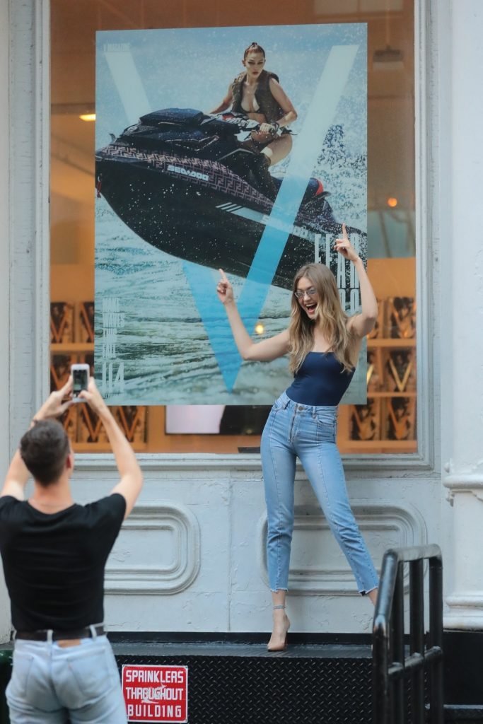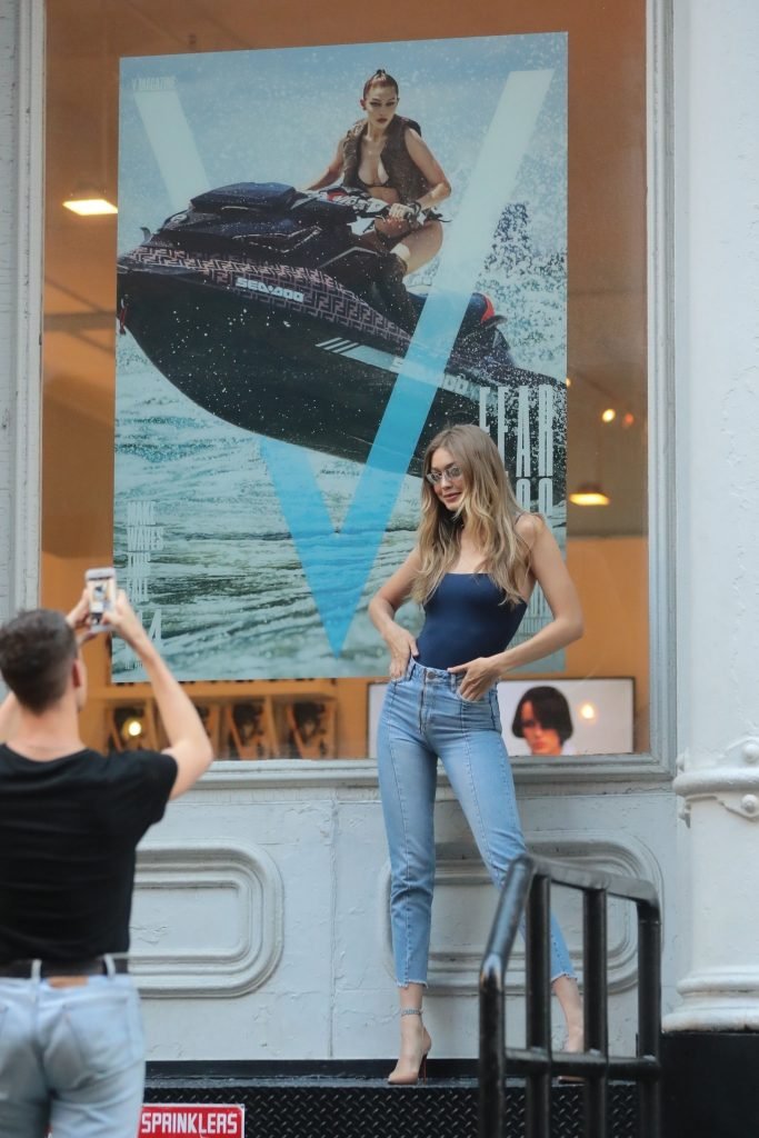 Model Gigi Hadid stops by the V Magazine offices in New York.