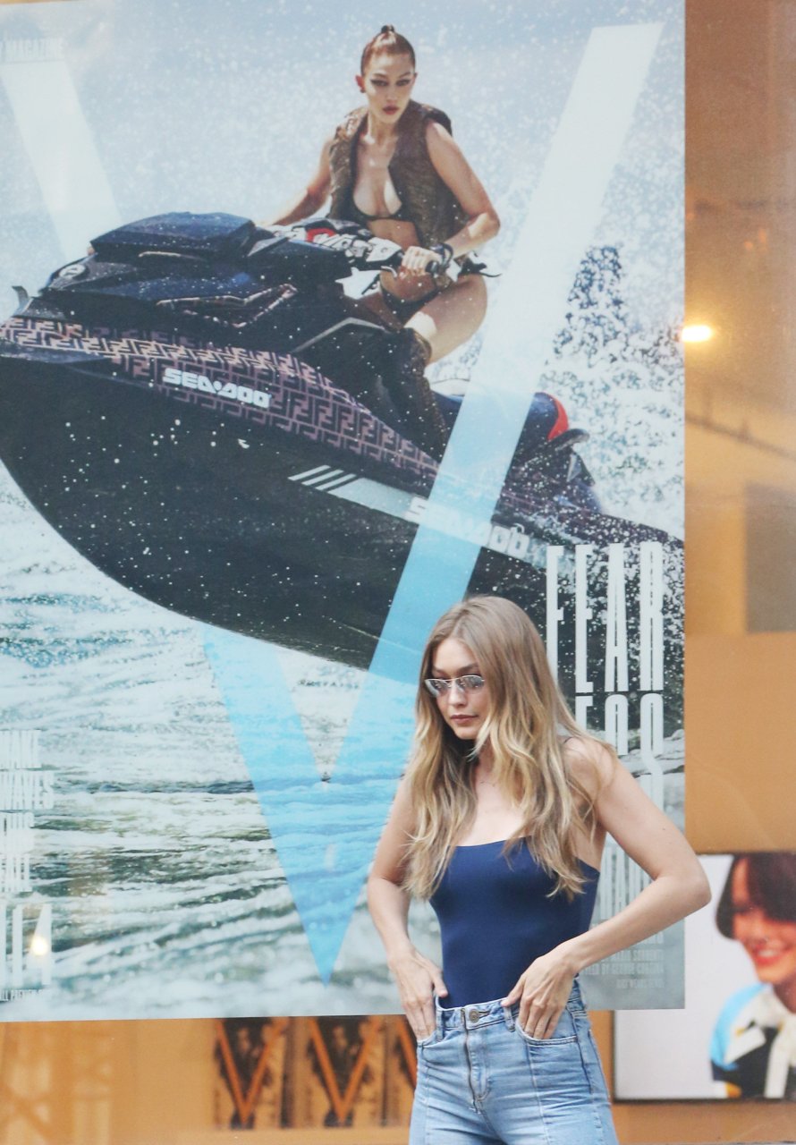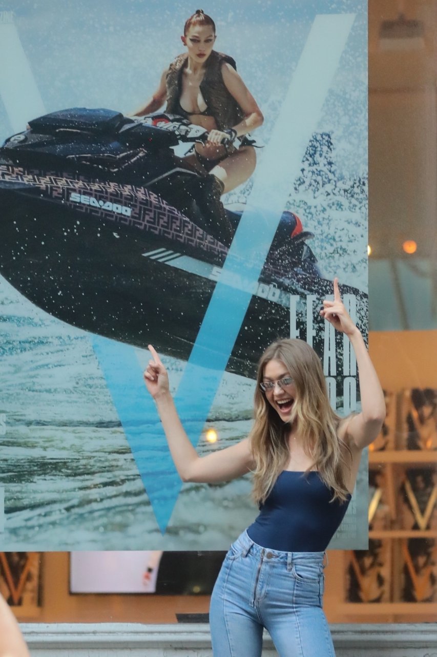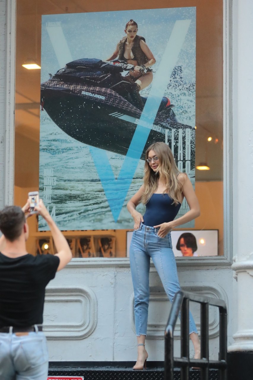 Model Gigi Hadid stops by the V Magazine offices in New York.