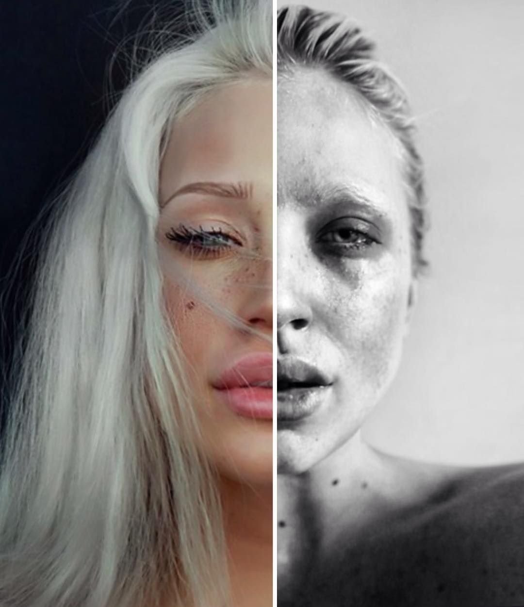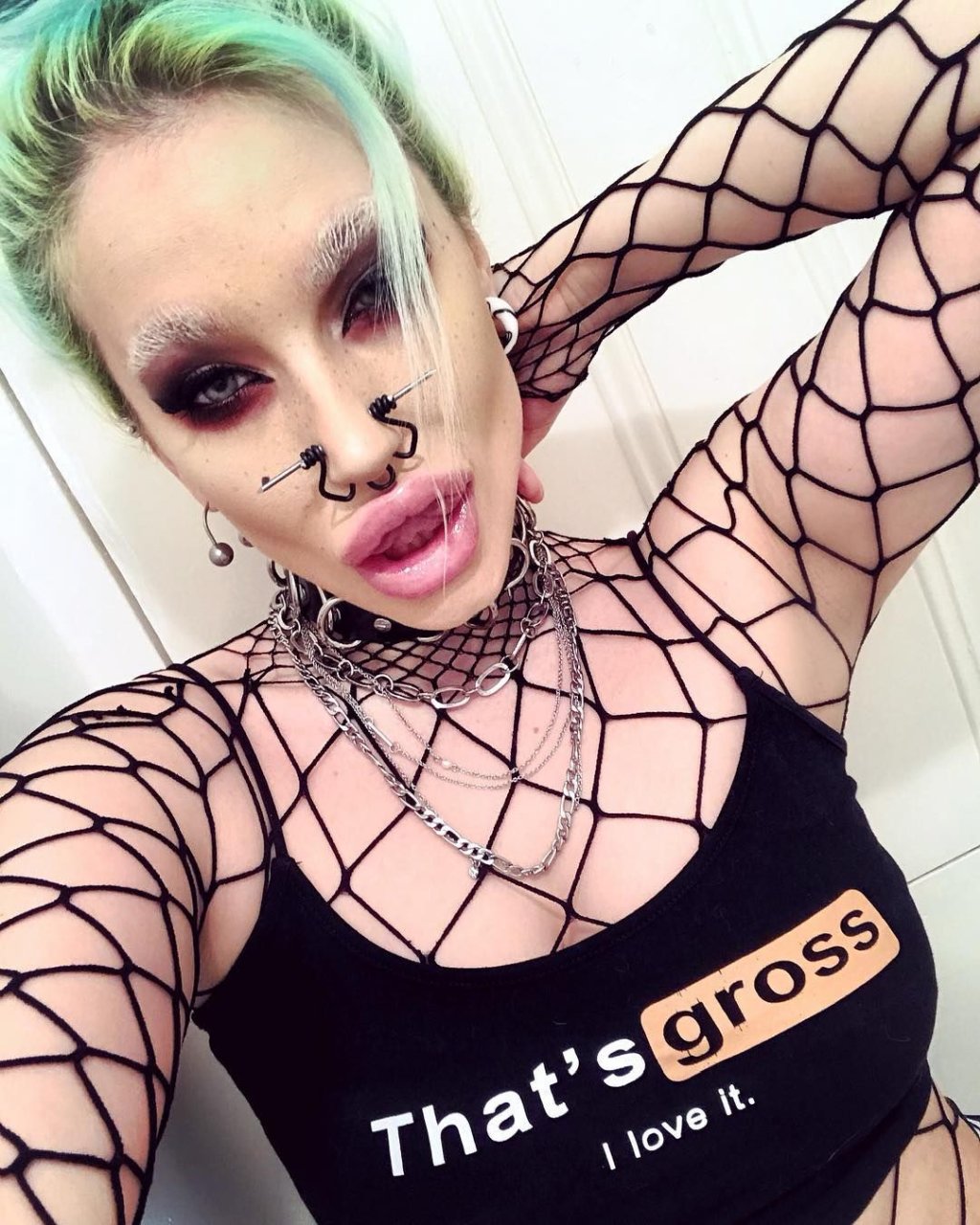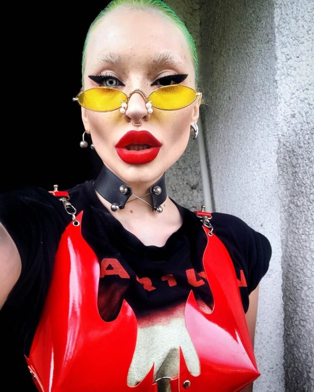 Gina est connue pour ses séances photo choquantes et provocantes. Cette femme mélange particulièrement beauté et déshonneur : tenues étranges, maquillage mystérieux, tatouages menaçants. Gina a un tatouage sur la langue. L’apparence de Gina Harrison est tout simplement incroyable. Elle a une forte poitrine, un fessier sexy et une taille incroyablement fine, et elle ne cache pas à ses fans le recours à la chirurgie esthétique.