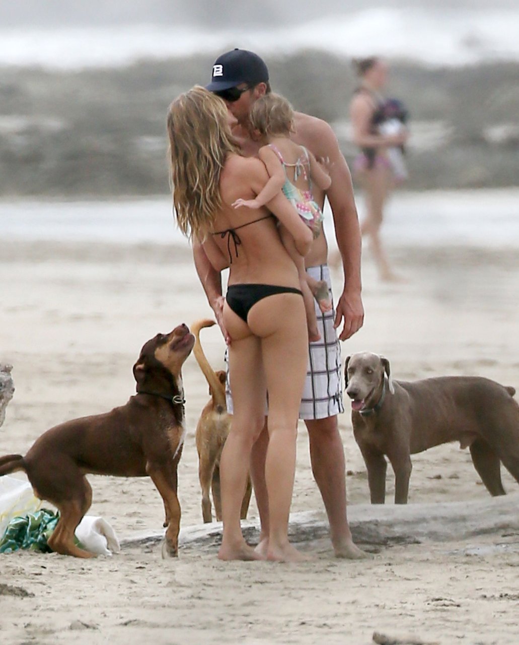 Gisele Bundchen et Tom Brady se rendent à la plage en famille au Costa Rica, le 18/03/2015. Gisele et sa famille semblaient passer un moment formidable.