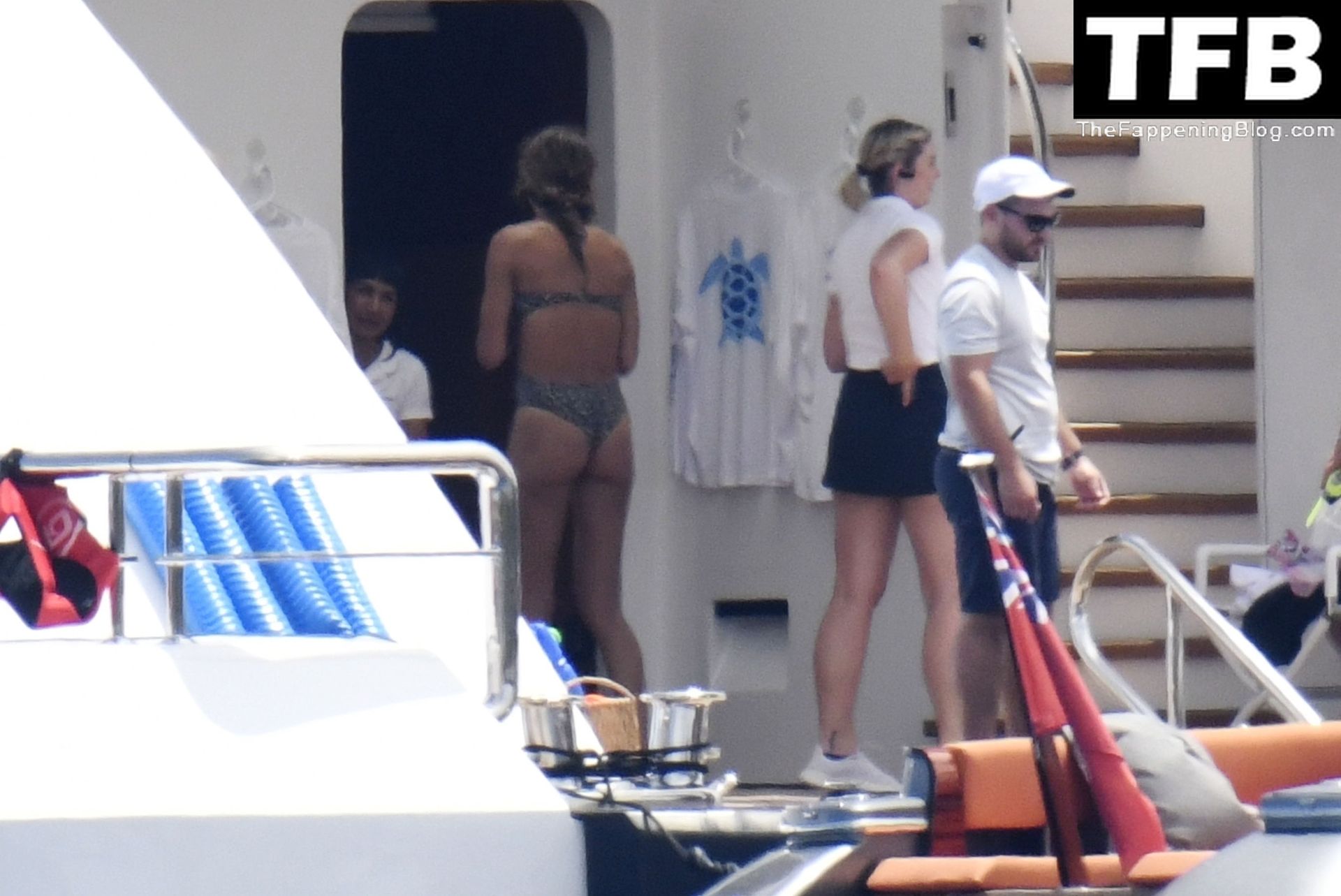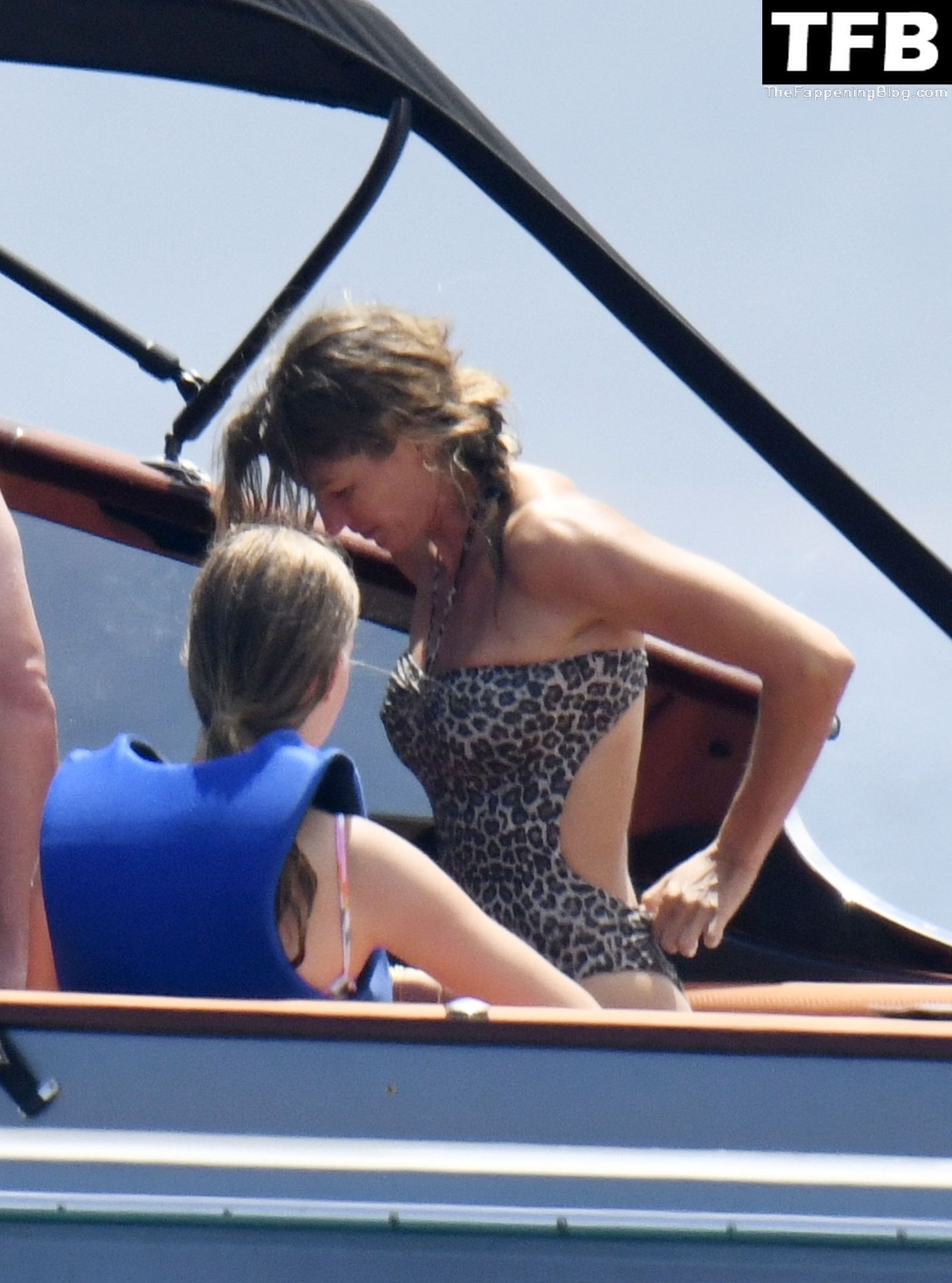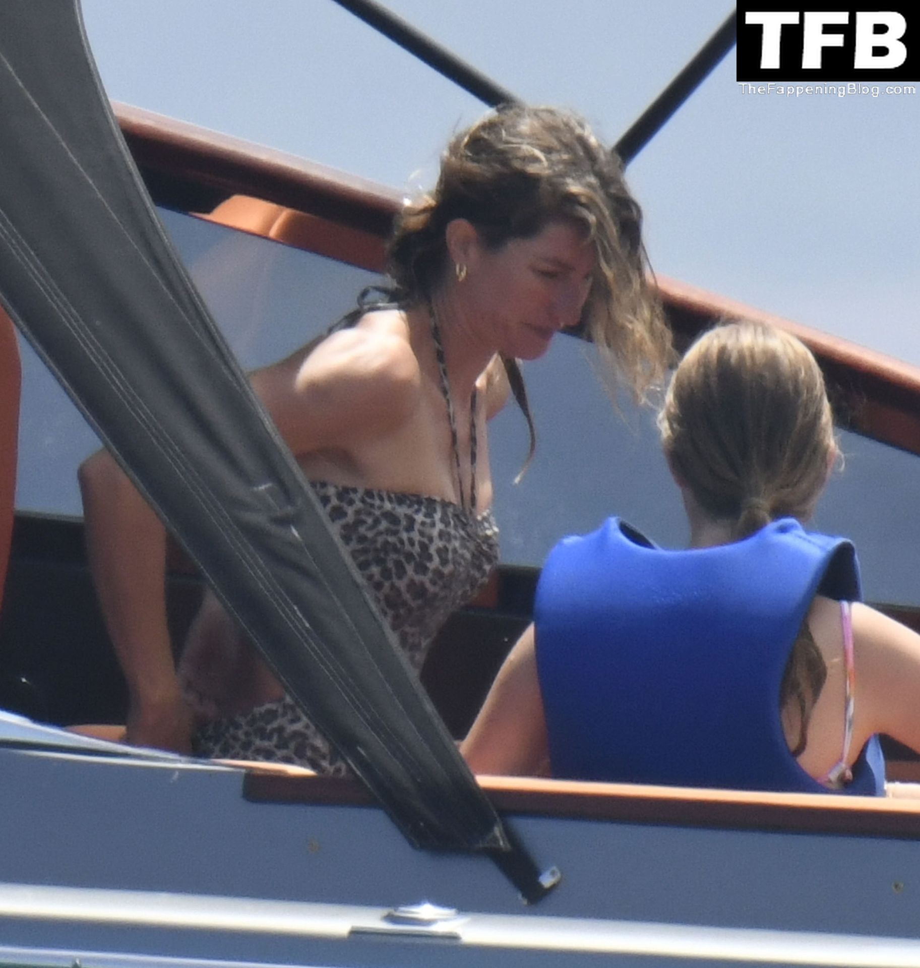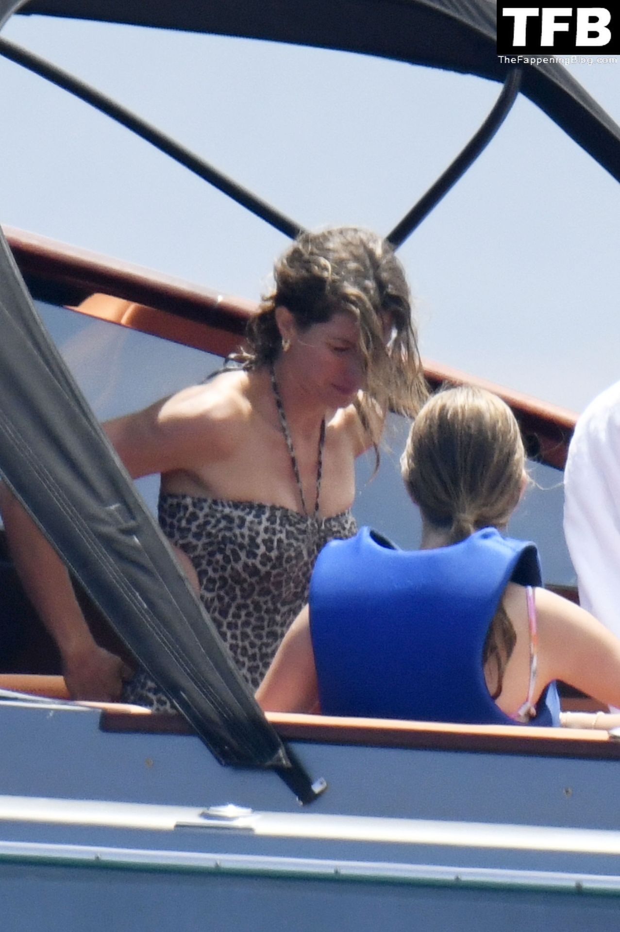 La supermodèle brésilienne Gisele Bundchen met en valeur sa silhouette dans un maillot de bain à imprimé animalier tandis qu’elle est photographiée avec son mari, le joueur de la NFL Tom Brady, profitant de leurs vacances d’été sur un yacht de luxe en Italie, 07/02/2022.