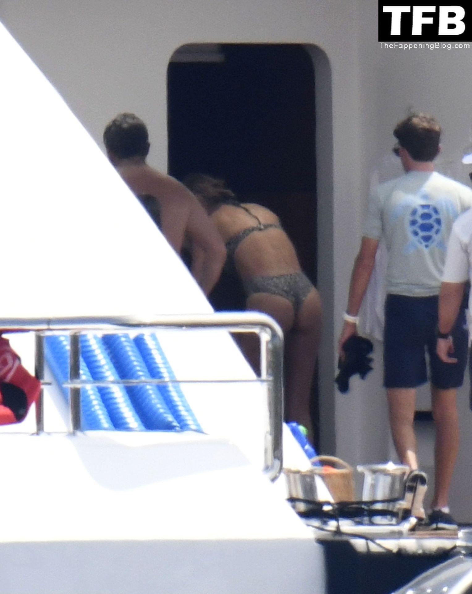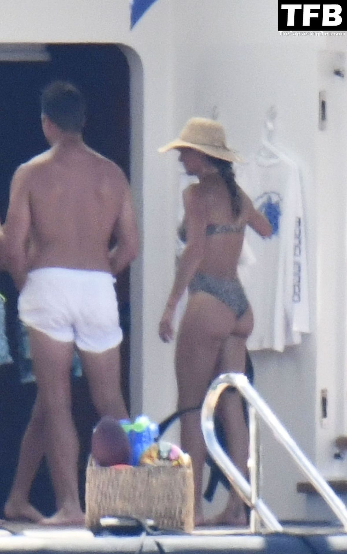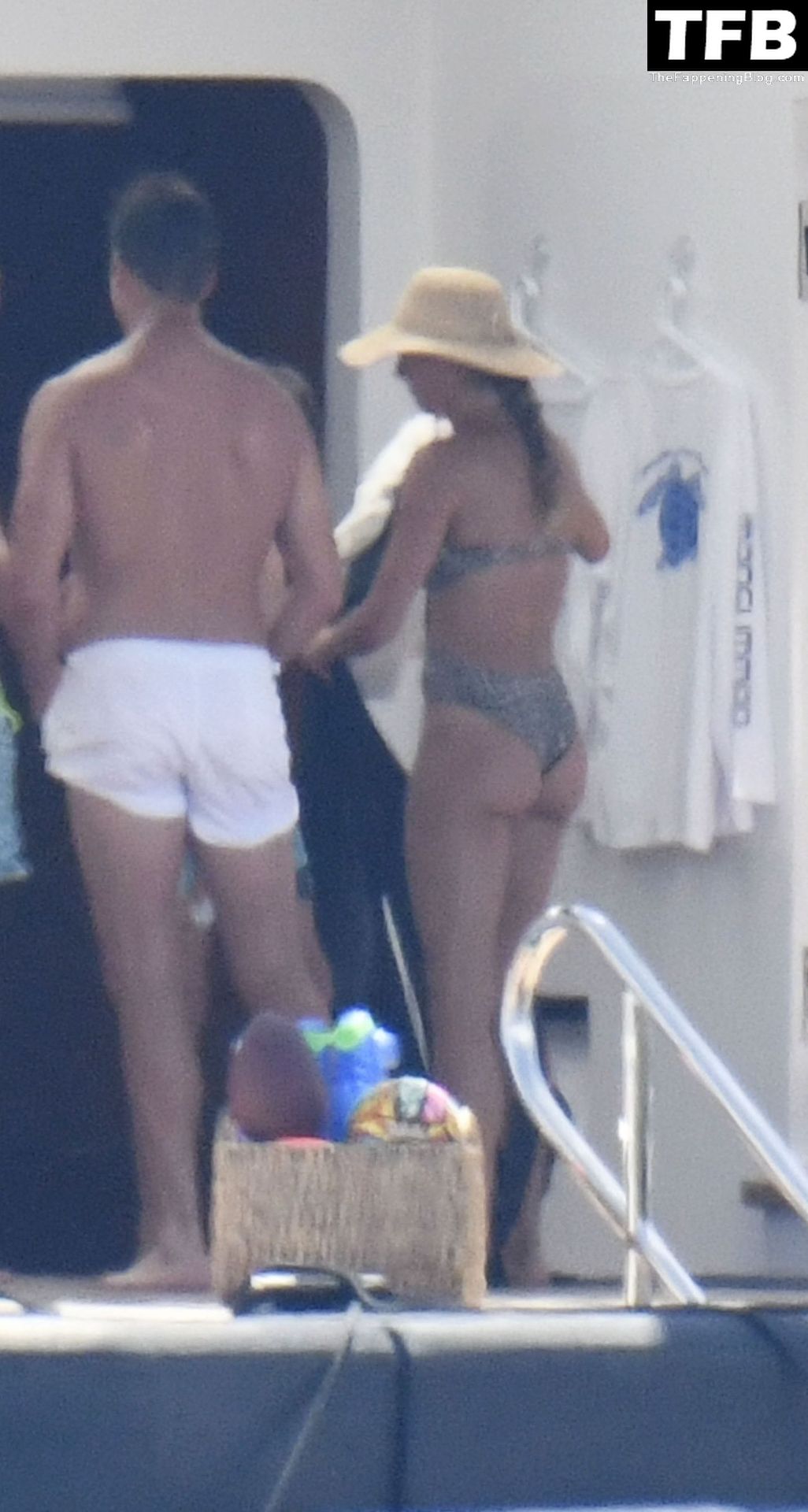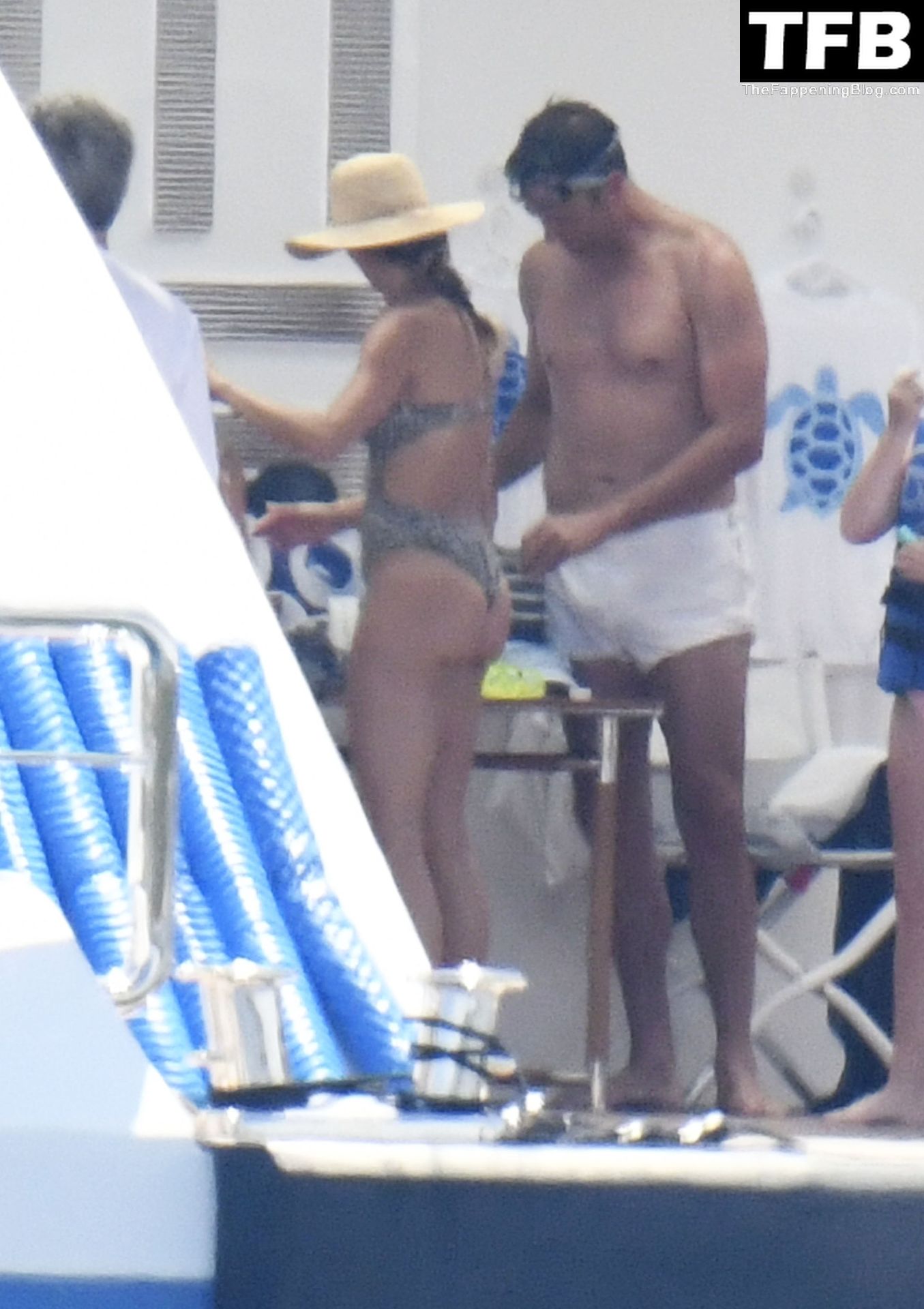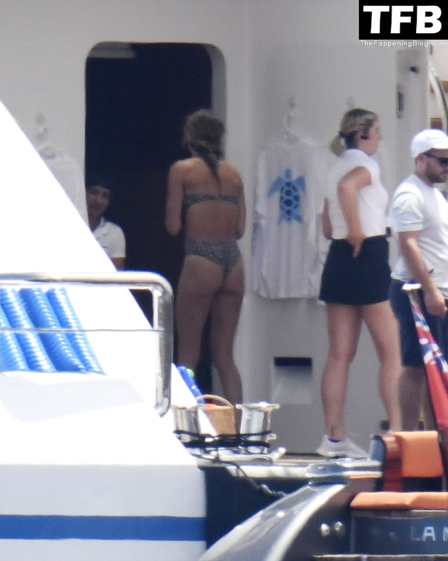 La supermodèle brésilienne Gisele Bundchen met en valeur sa silhouette dans un maillot de bain à imprimé animalier tandis qu’elle est photographiée avec son mari, le joueur de la NFL Tom Brady, profitant de leurs vacances d’été sur un yacht de luxe en Italie, 07/02/2022.