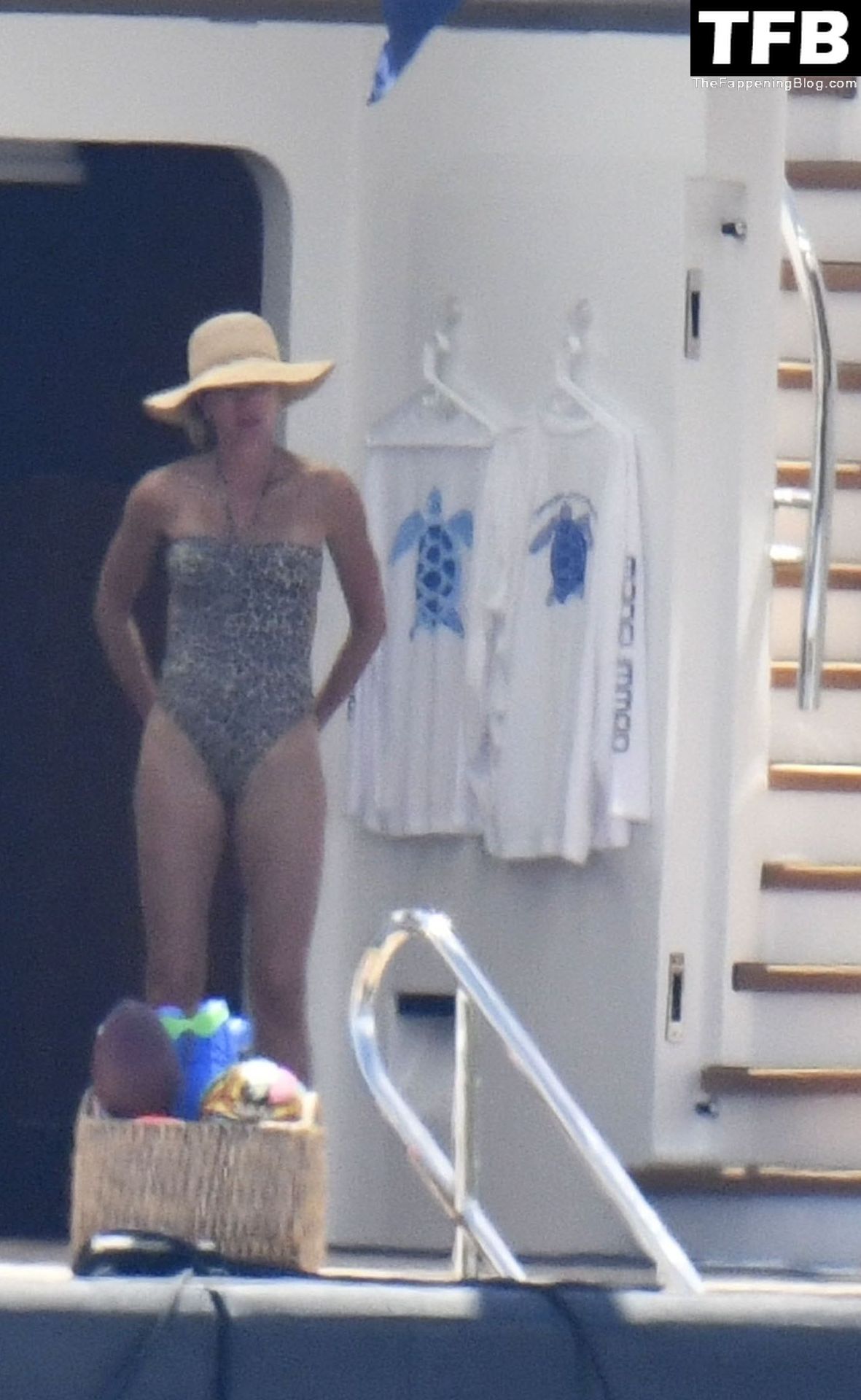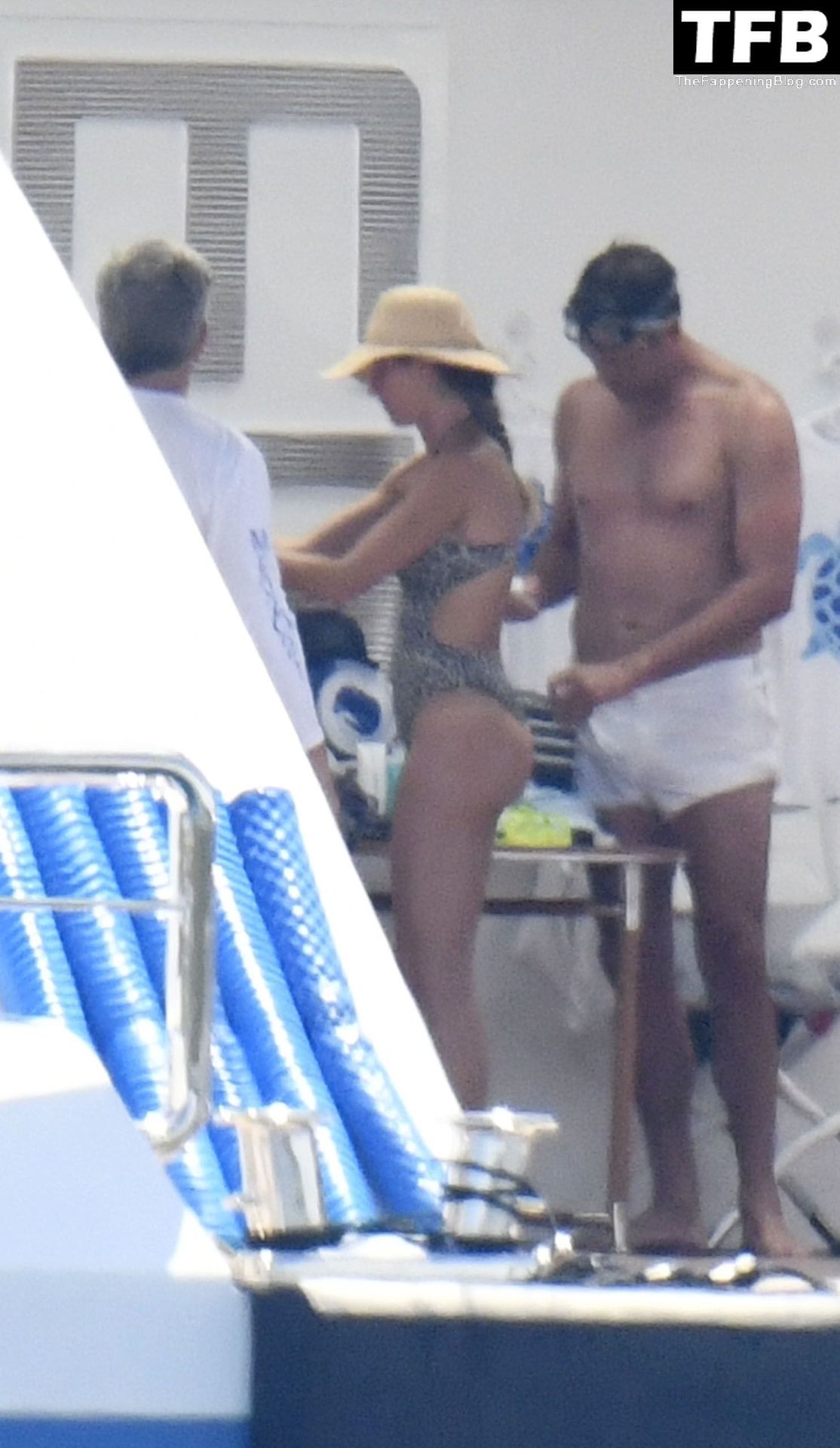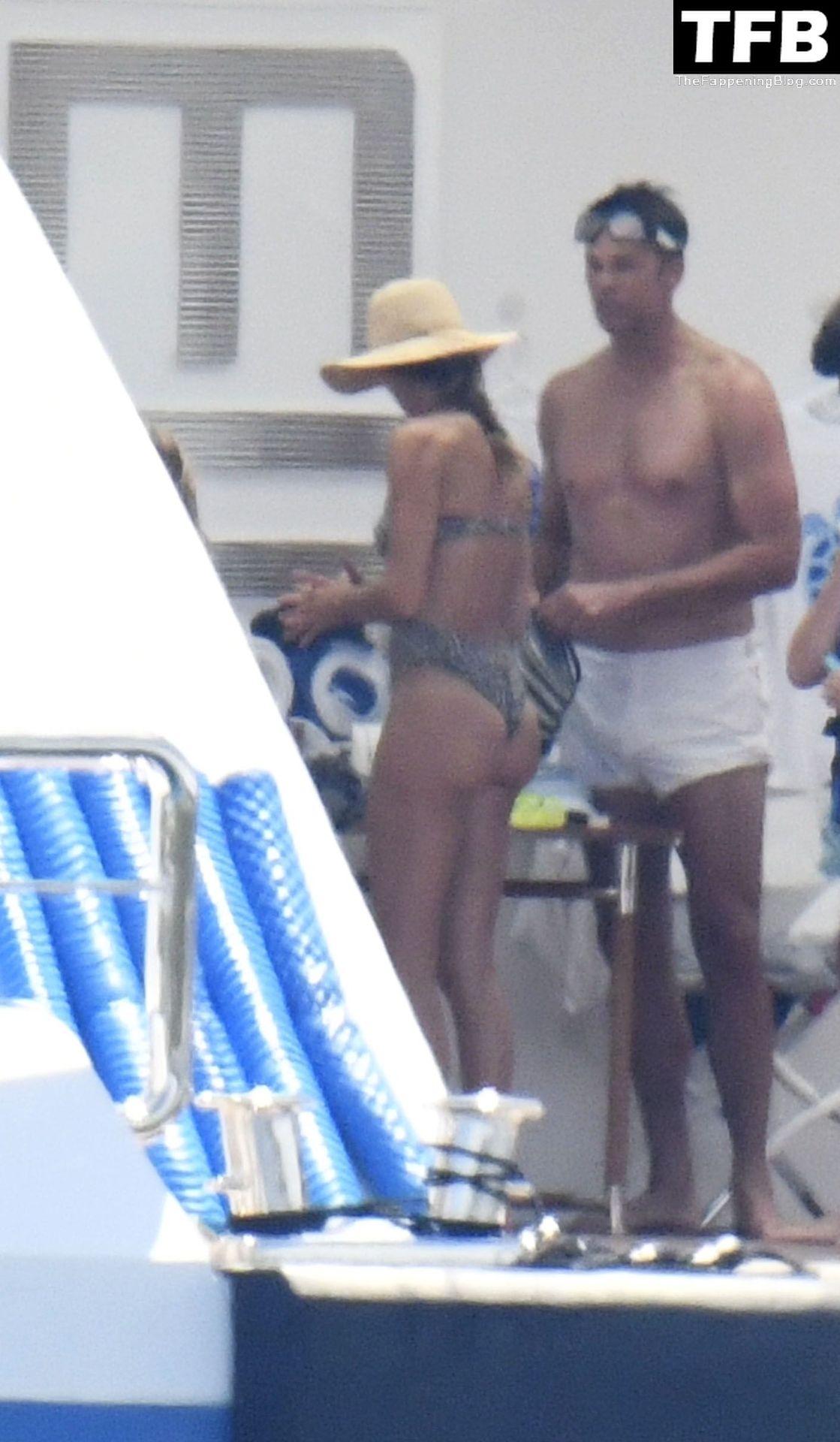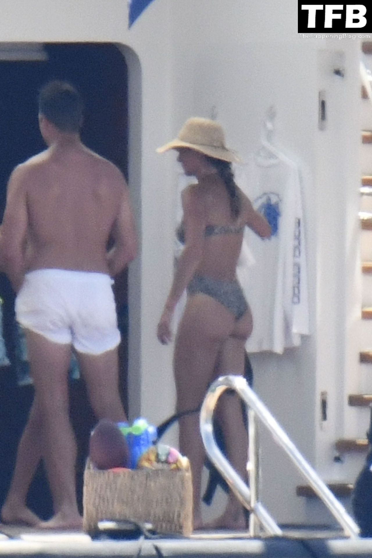 La supermodèle brésilienne Gisele Bundchen met en valeur sa silhouette dans un maillot de bain à imprimé animalier tandis qu’elle est photographiée avec son mari, le joueur de la NFL Tom Brady, profitant de leurs vacances d’été sur un yacht de luxe en Italie, 07/02/2022.